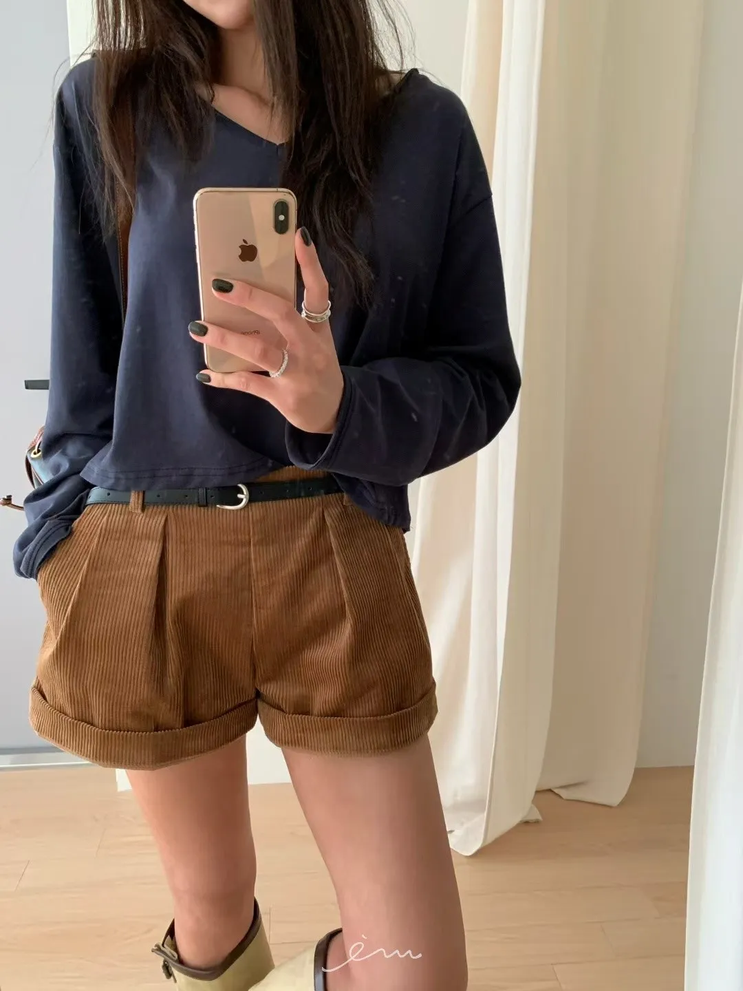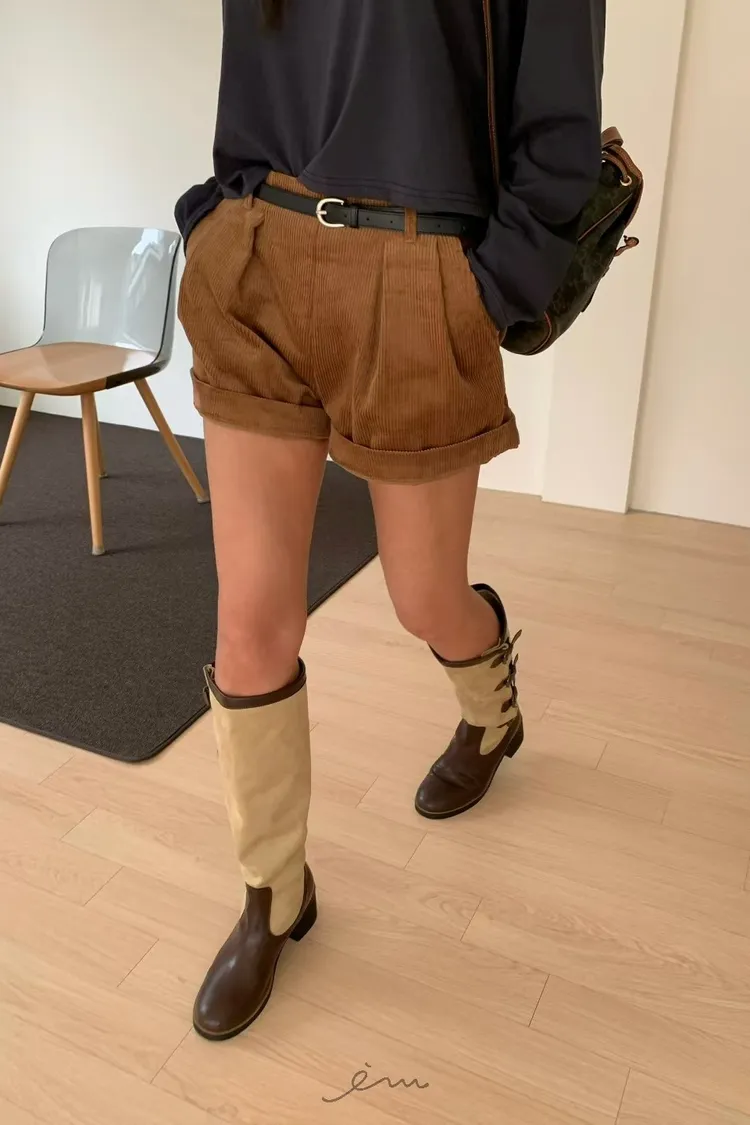 BE燈芯絨可反摺打摺短褲
