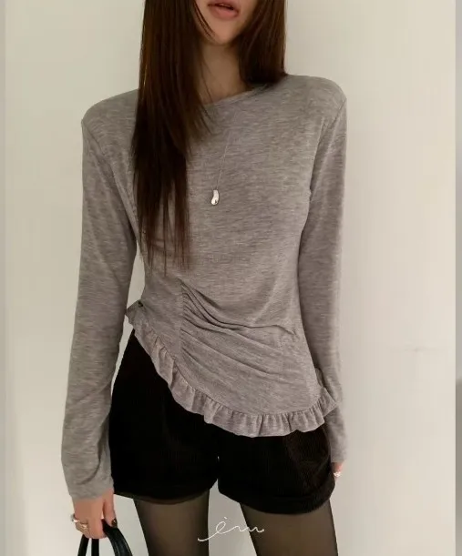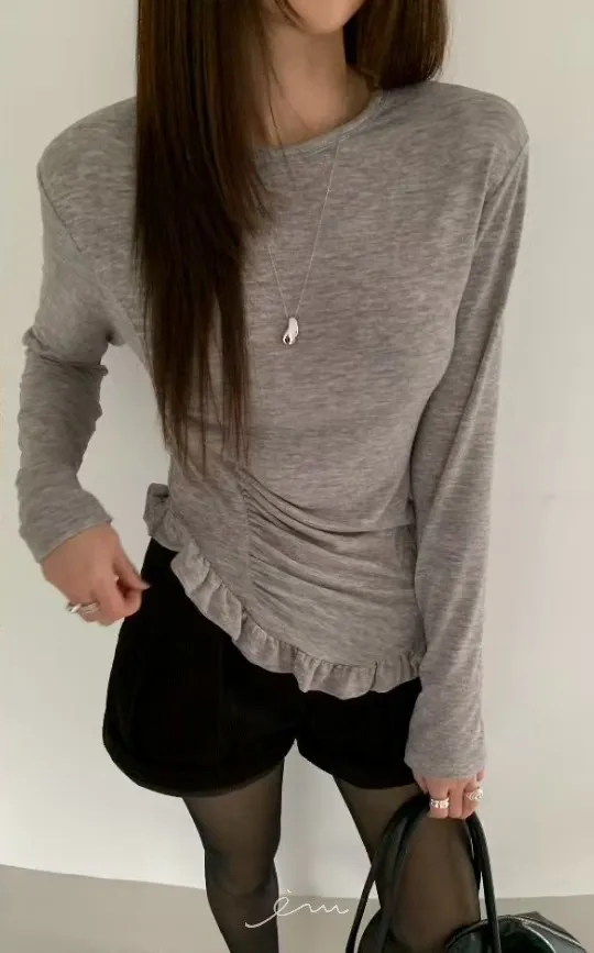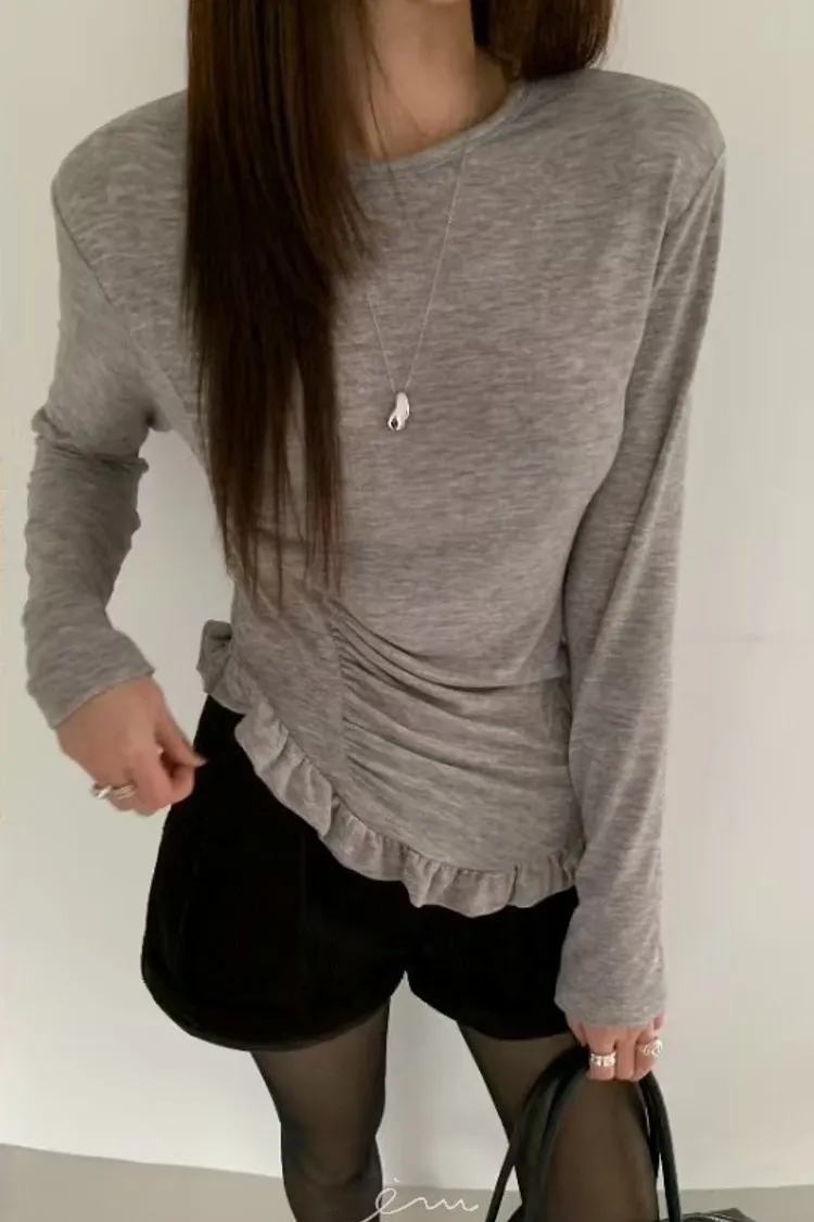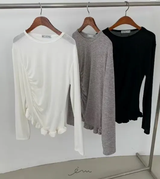 BE單邊抓皺下荷葉上衣