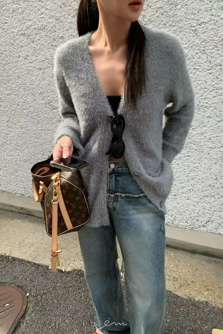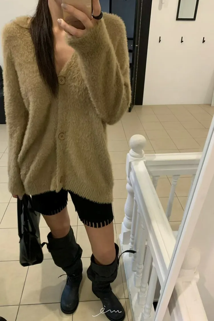BE鈕釦毛毛外套