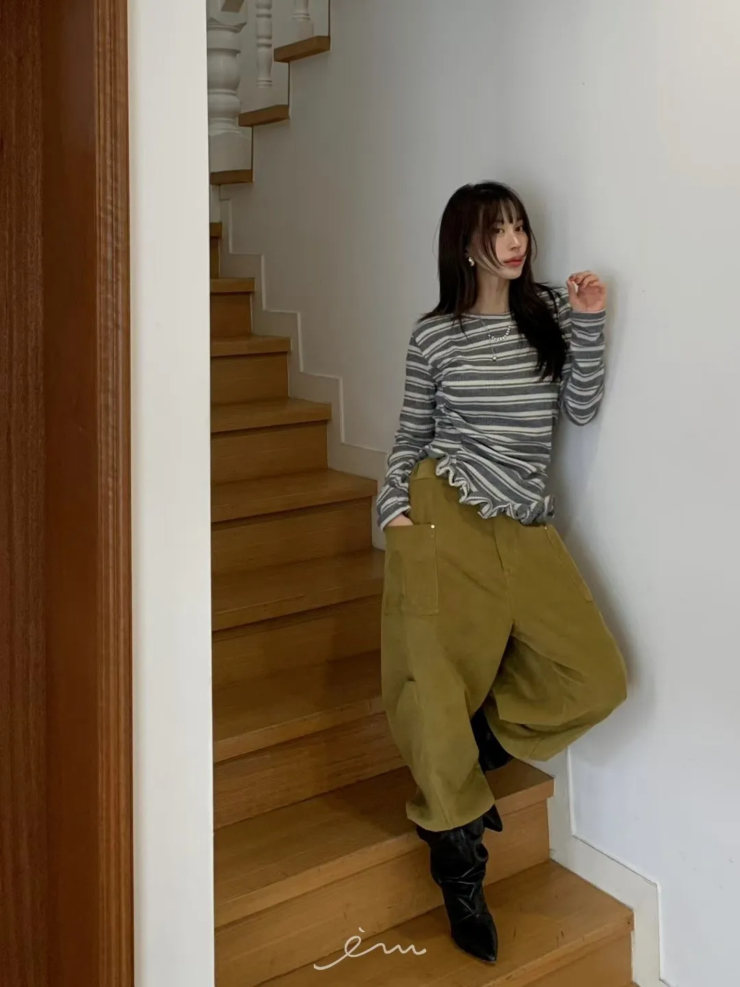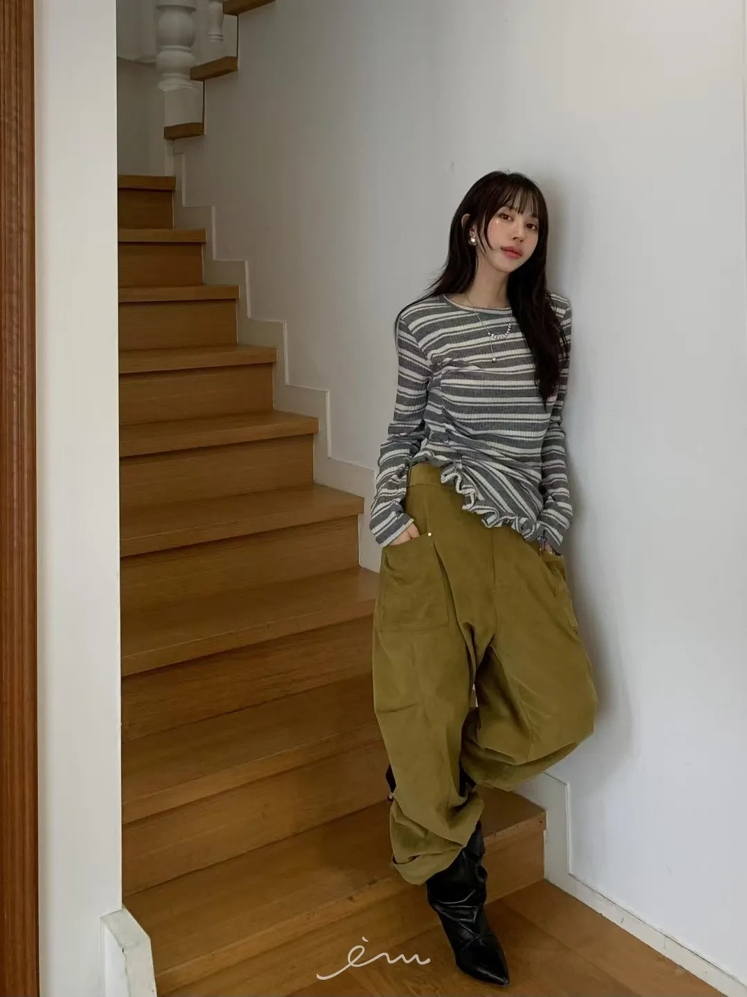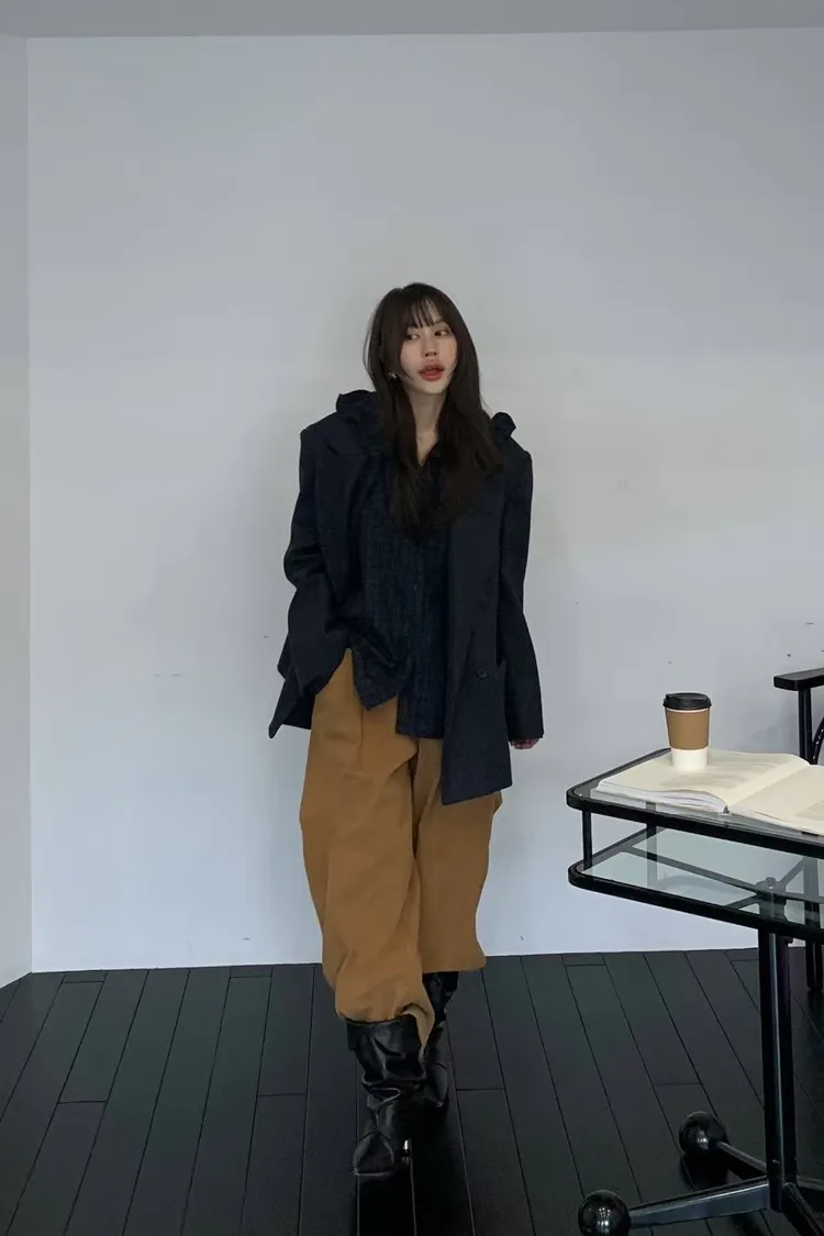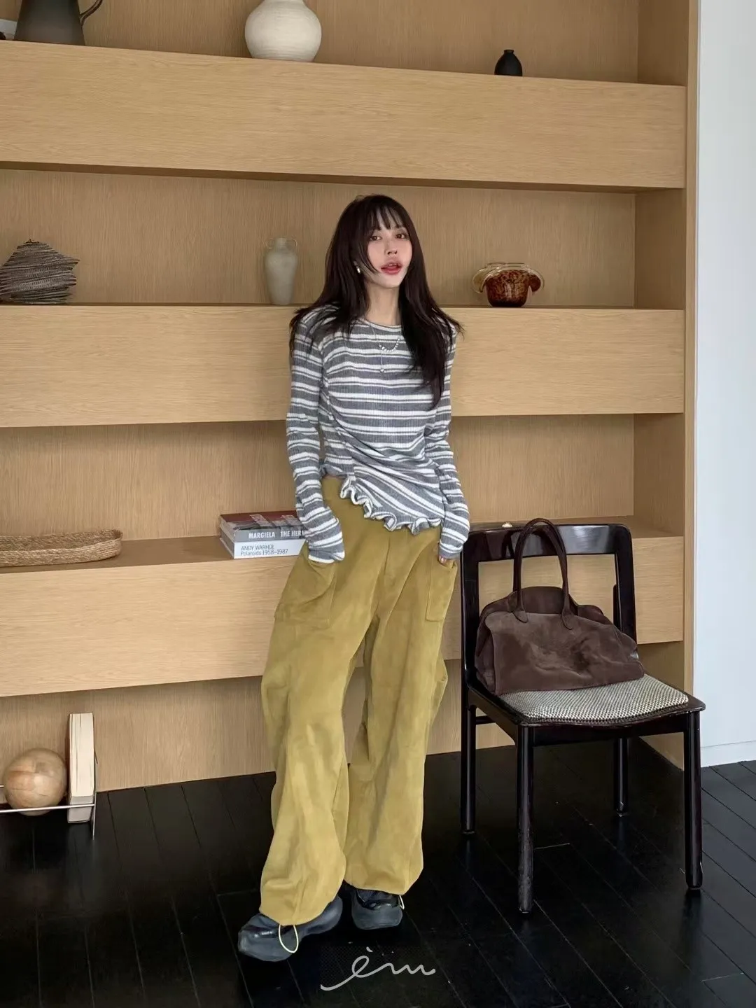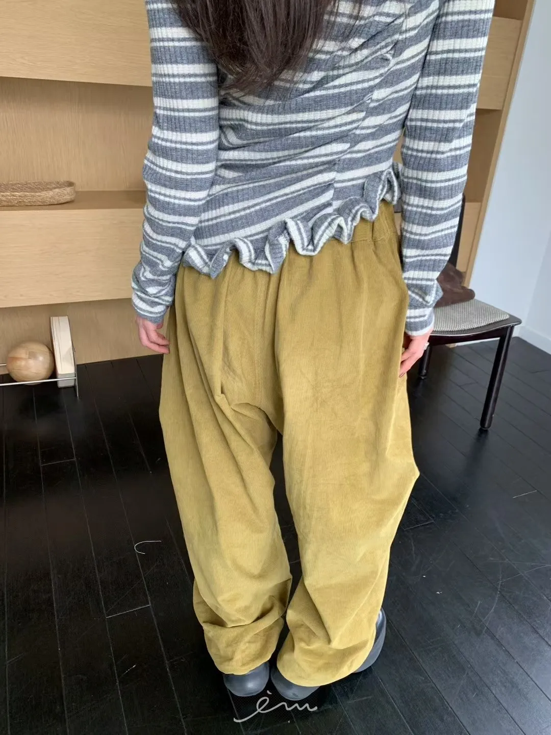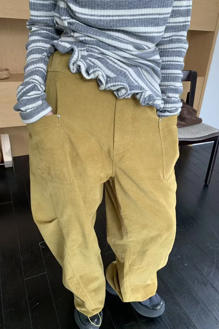 BER燈芯絨方型口袋側打摺長褲