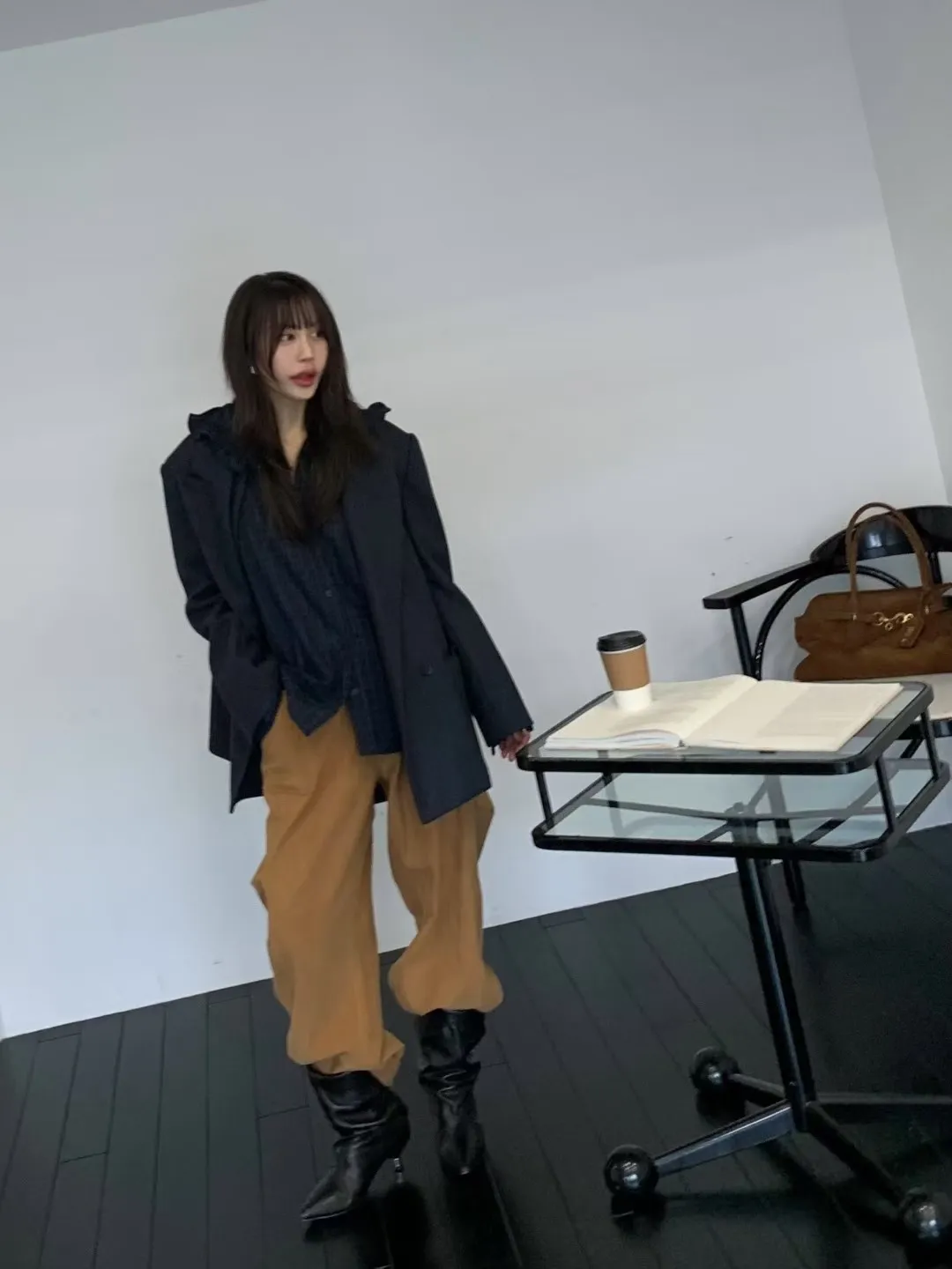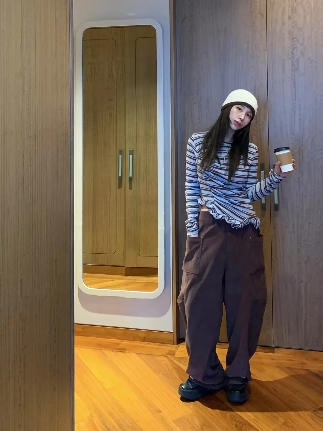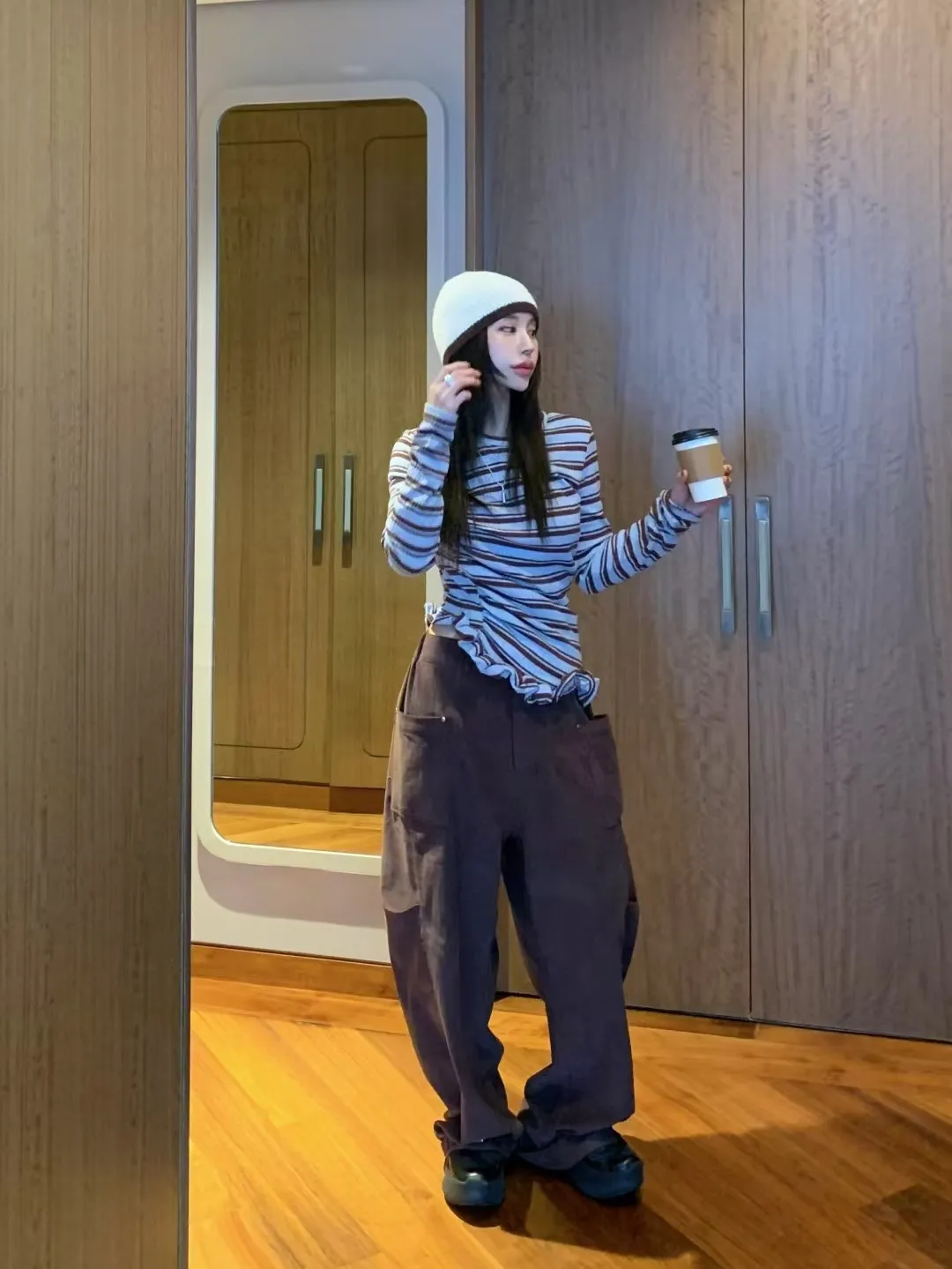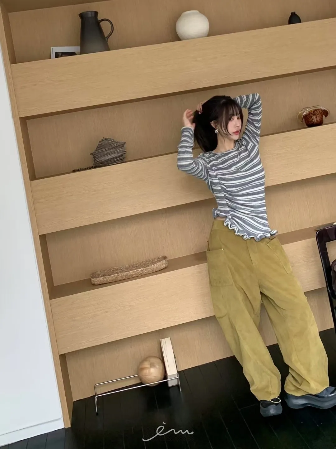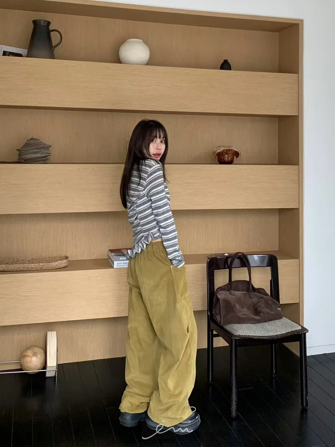 BER燈芯絨方型口袋側打摺長褲