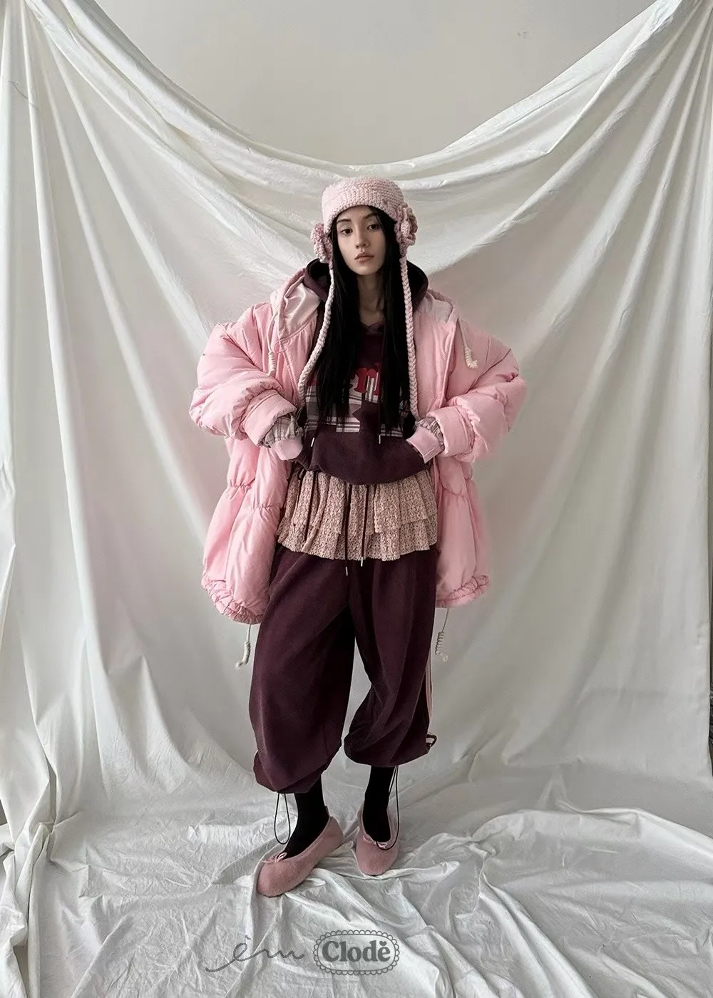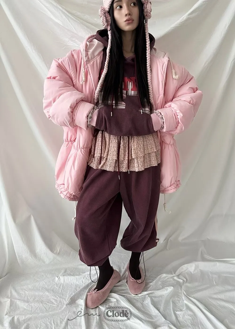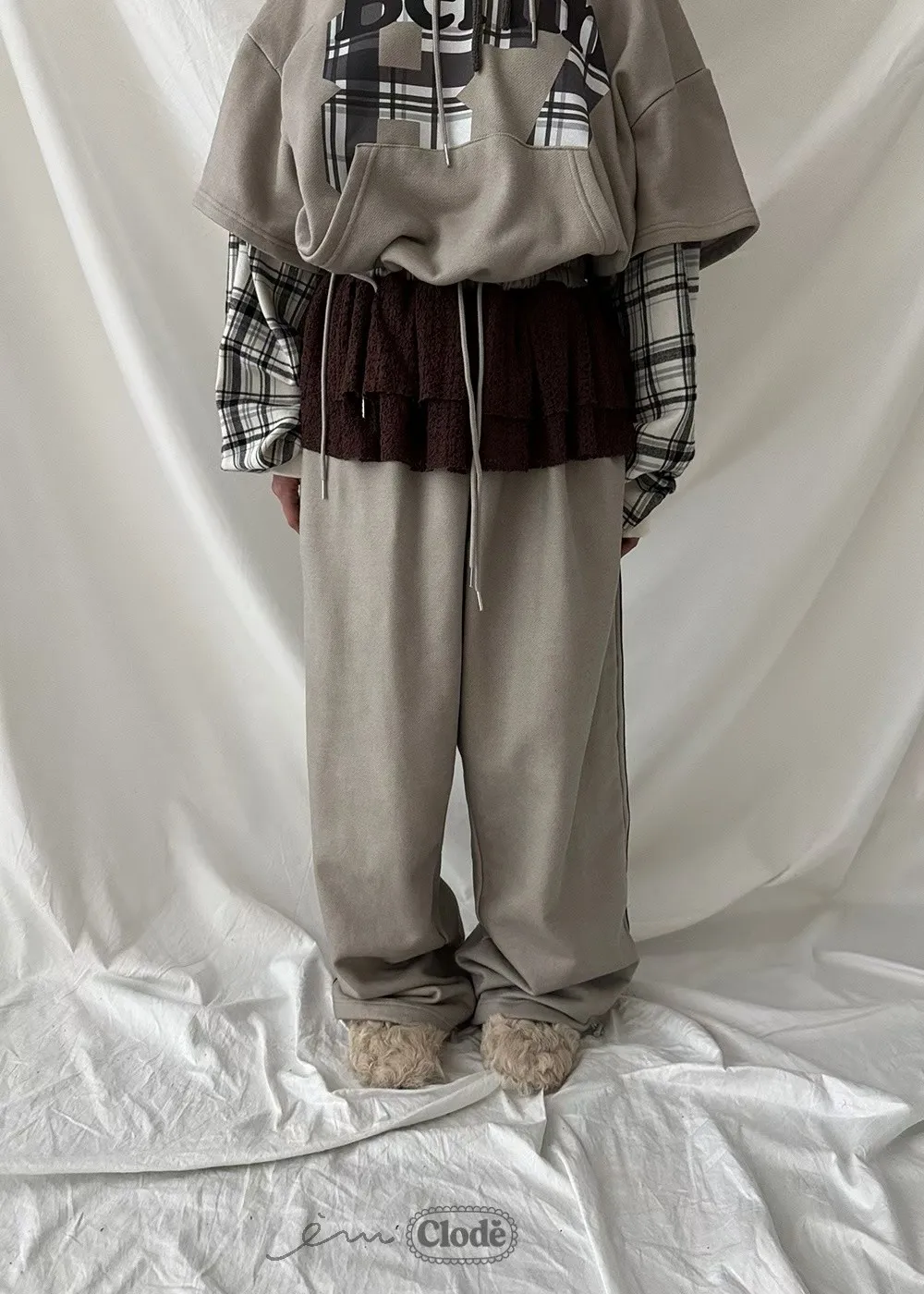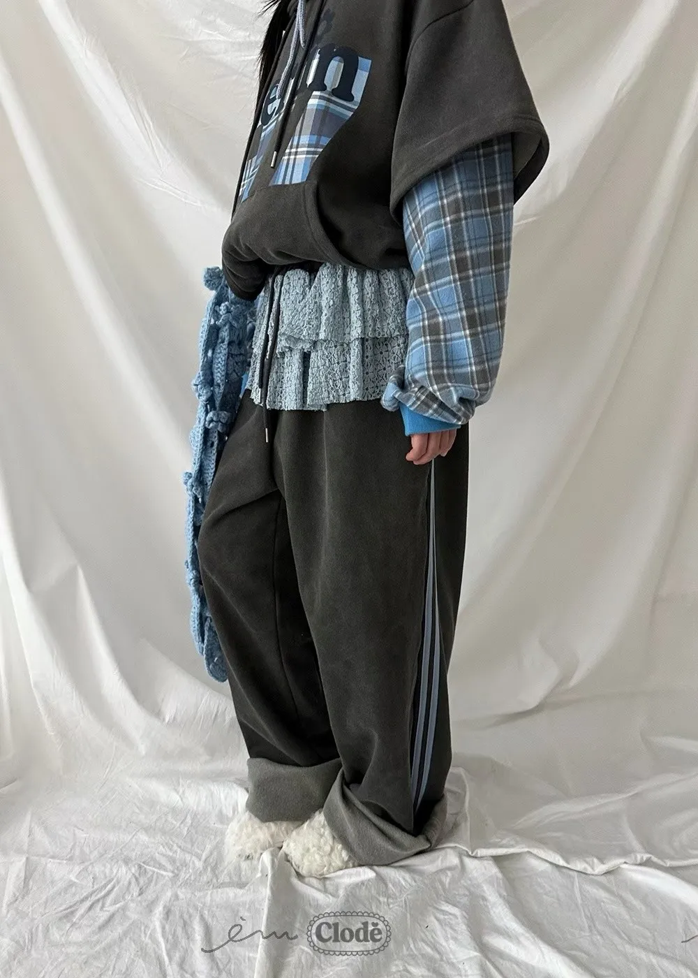 CL格紋印花假兩件下擺綁帶連帽上衣