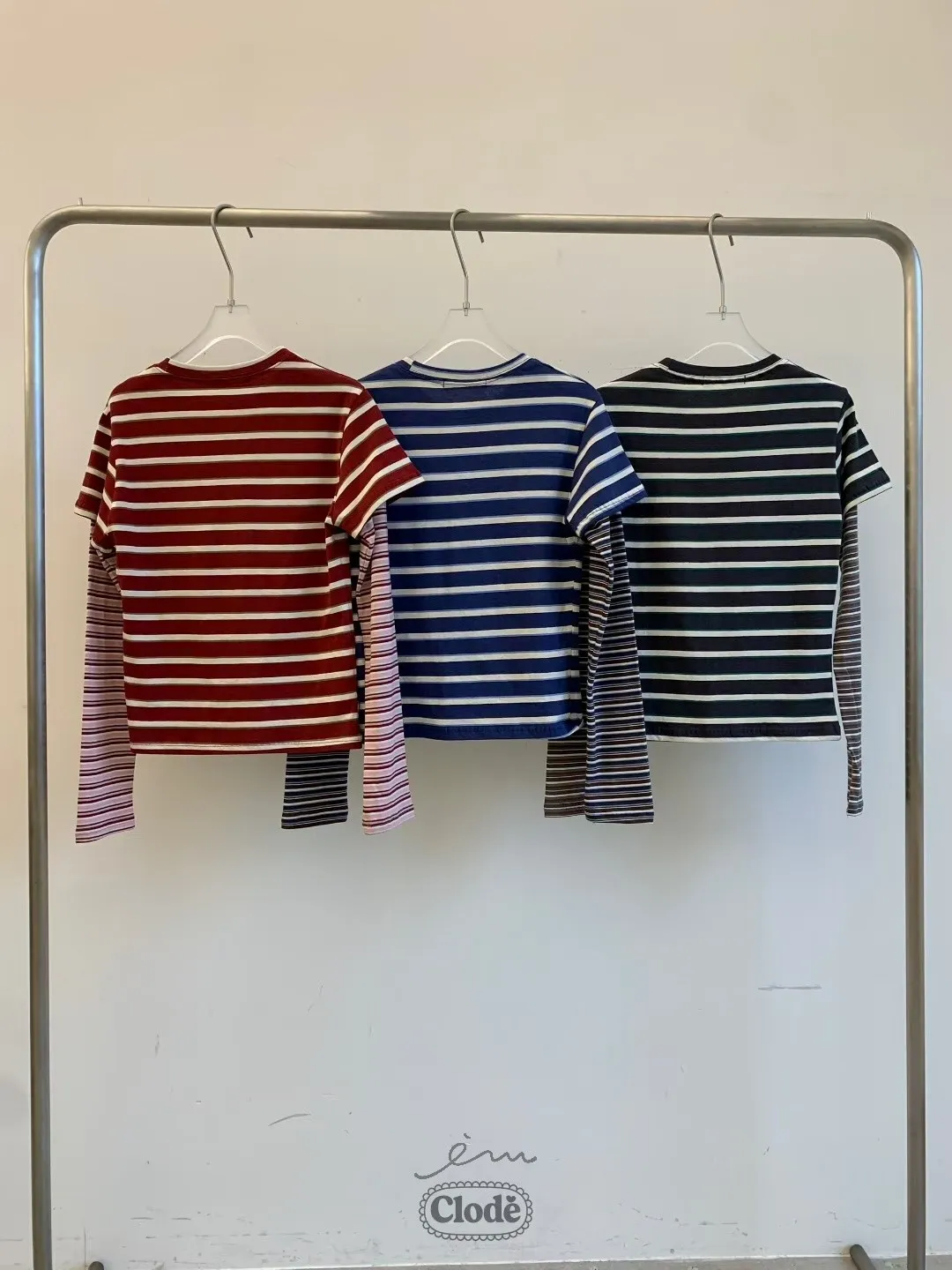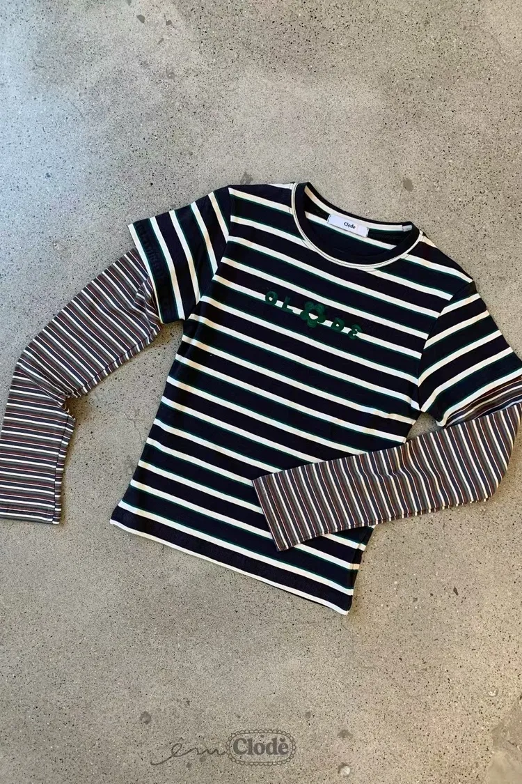 CL橫條紋假兩件上衣