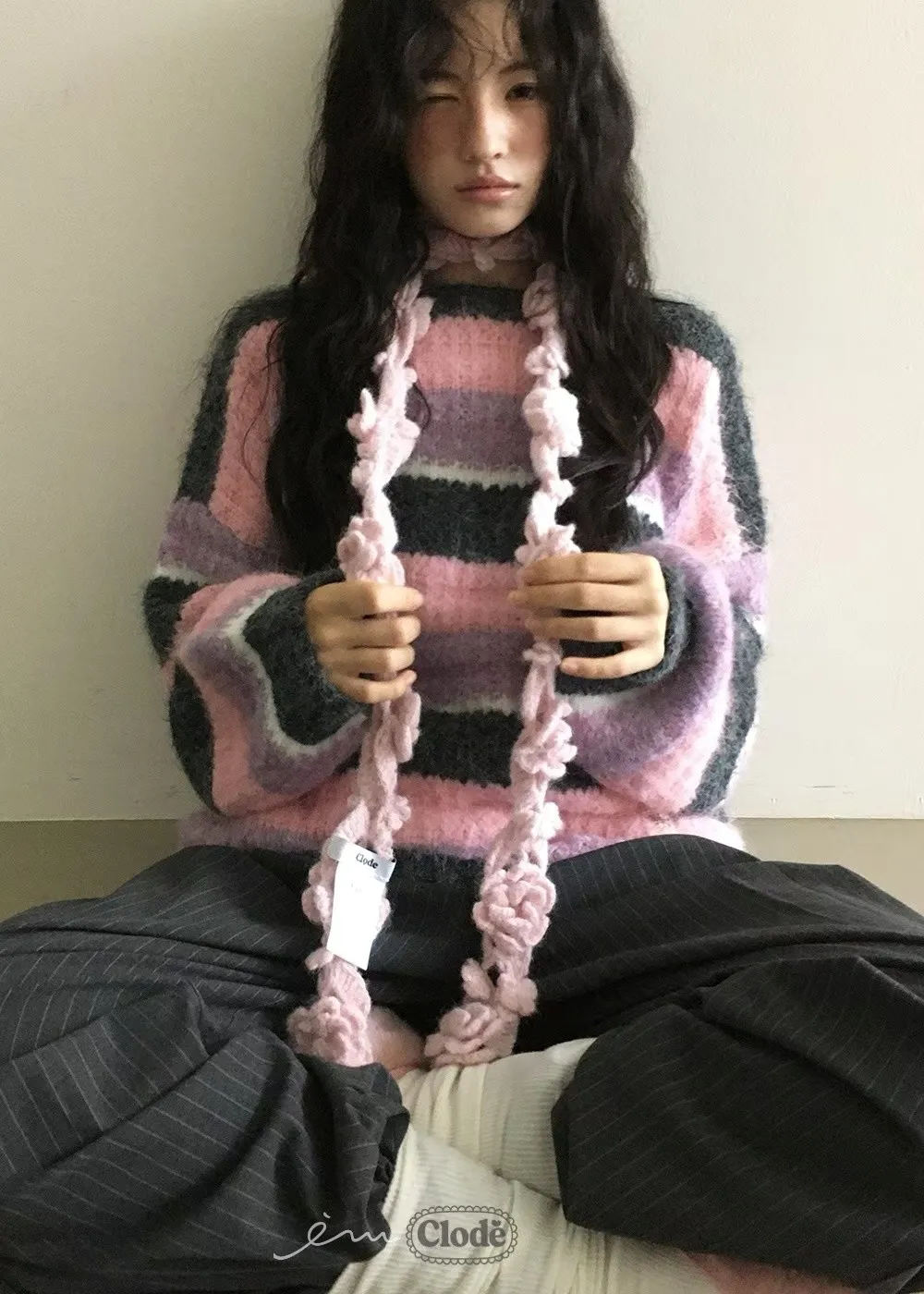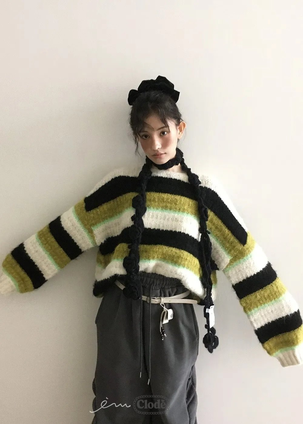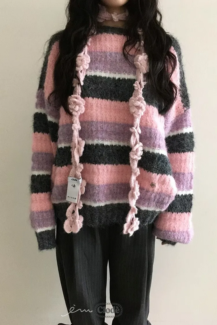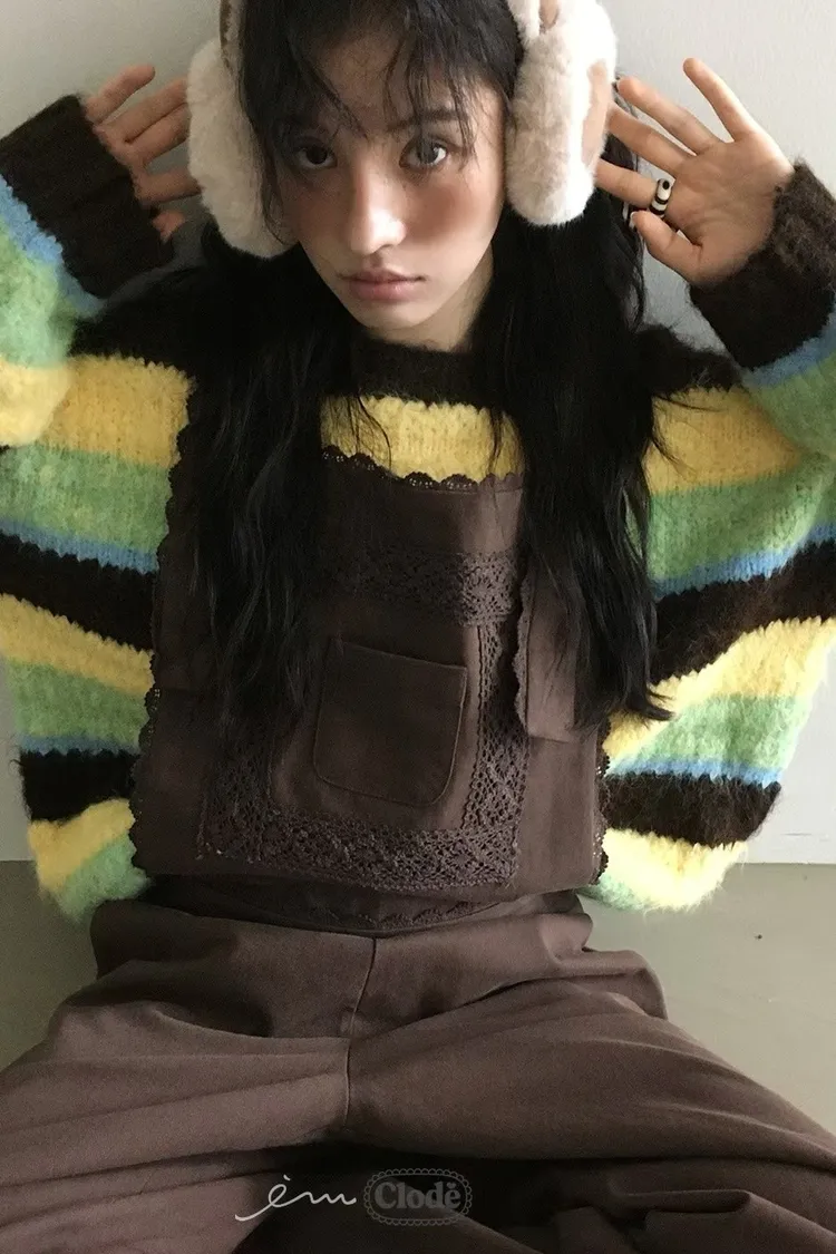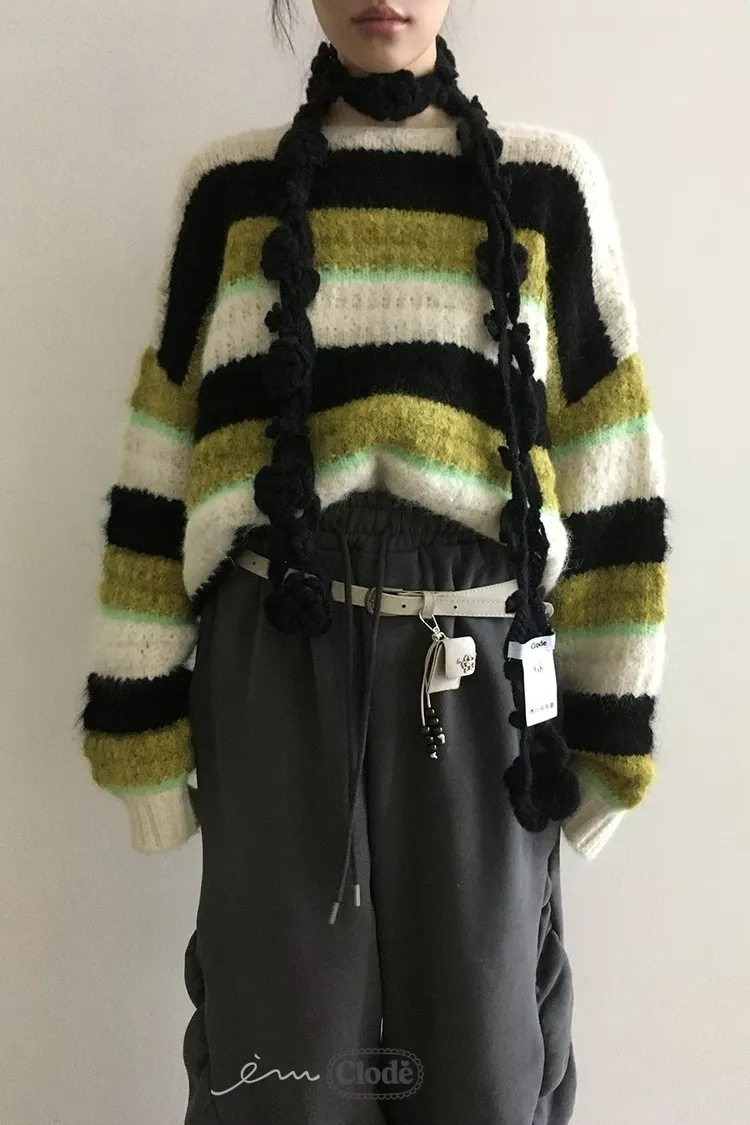 CL條紋撞色針織毛衣