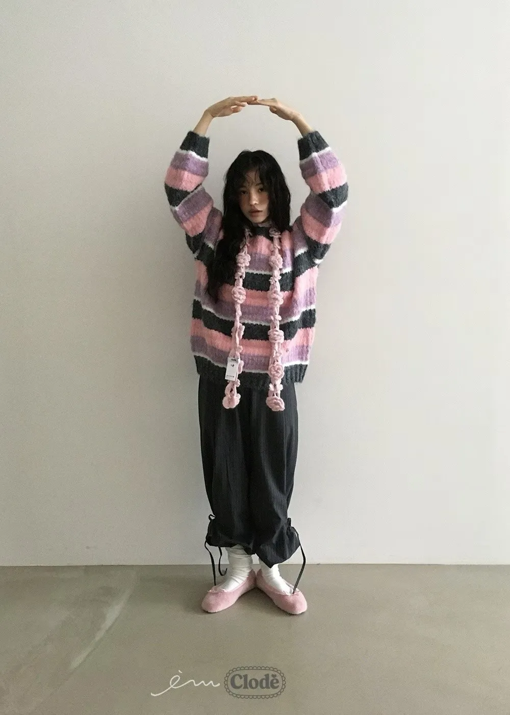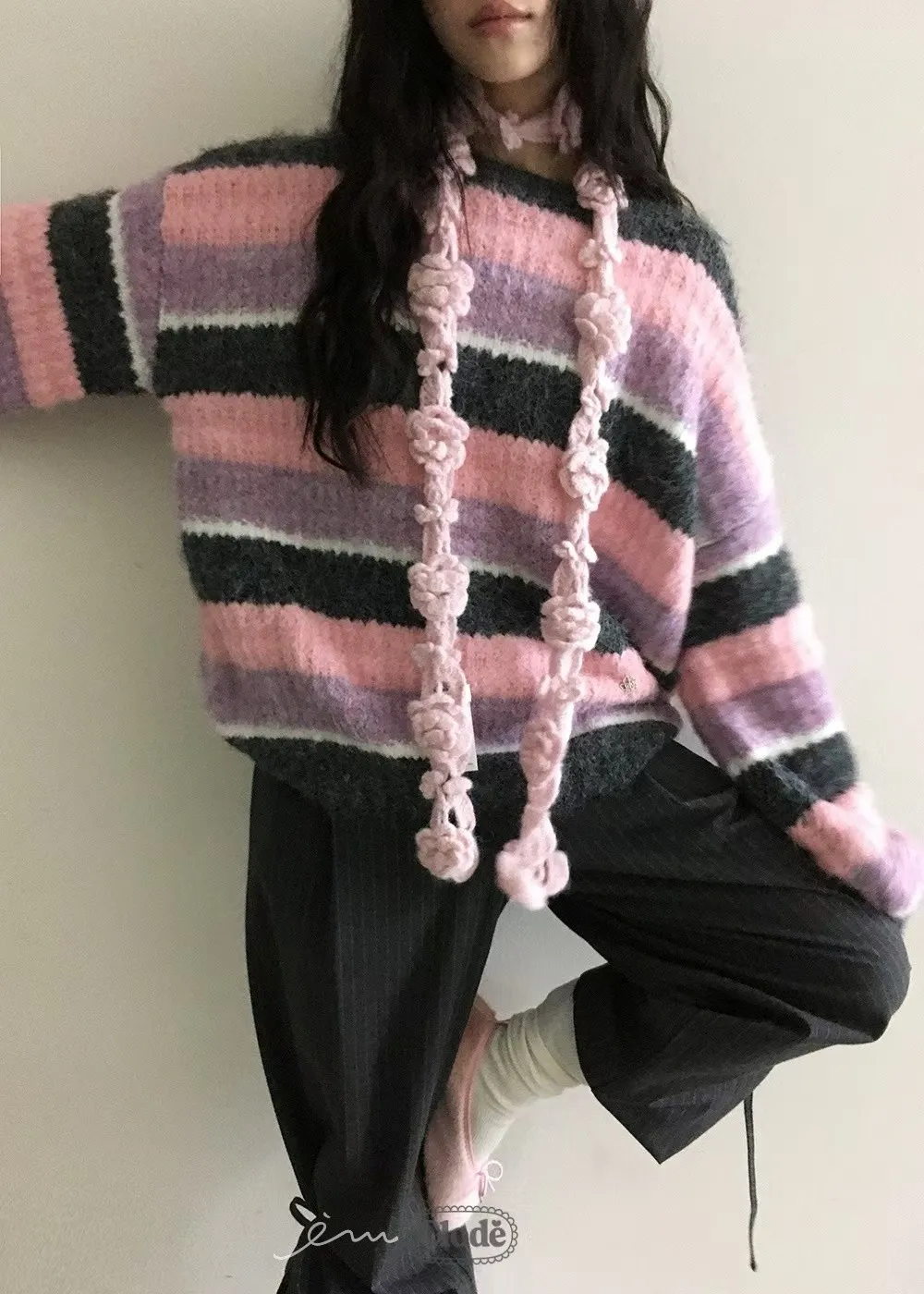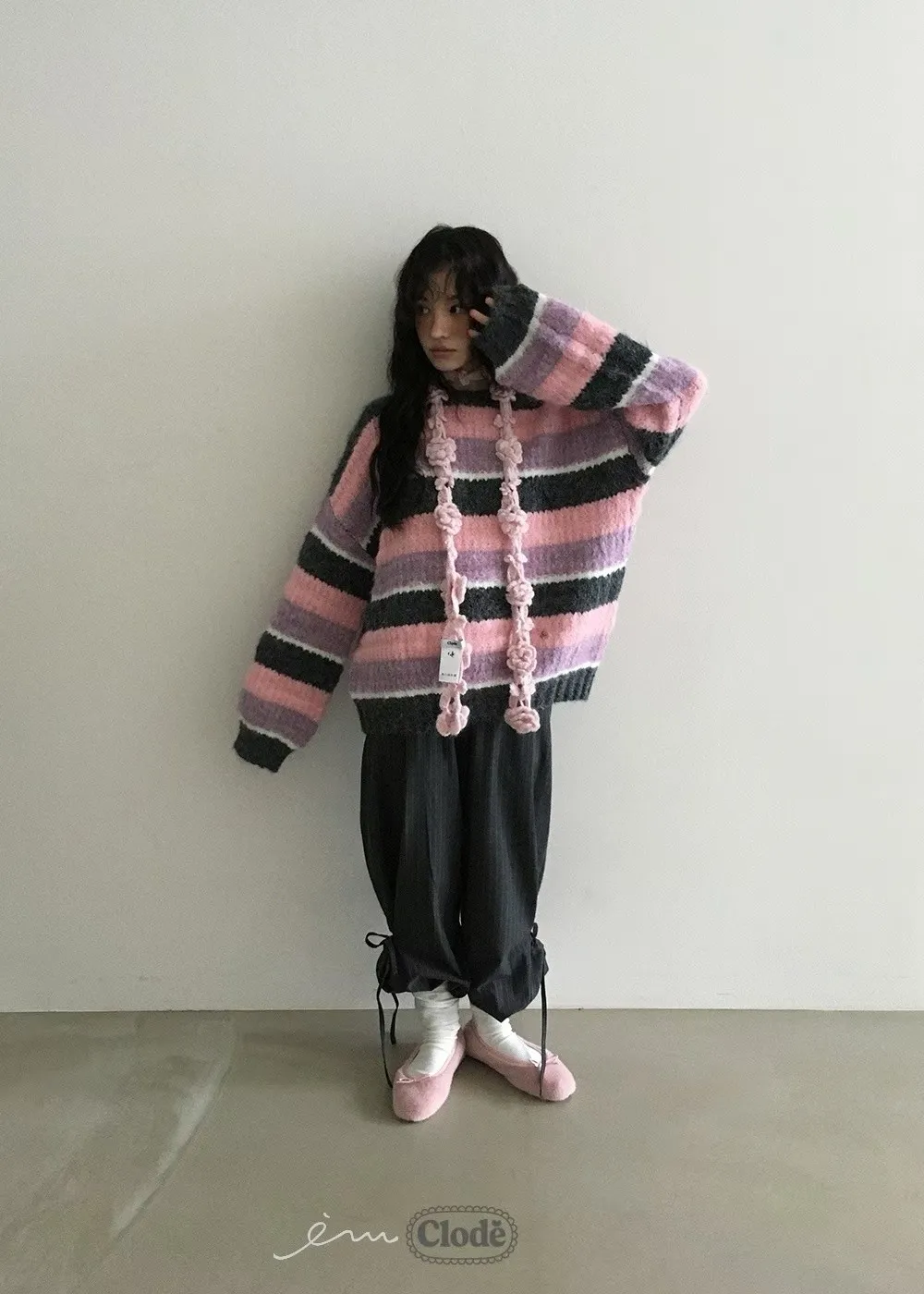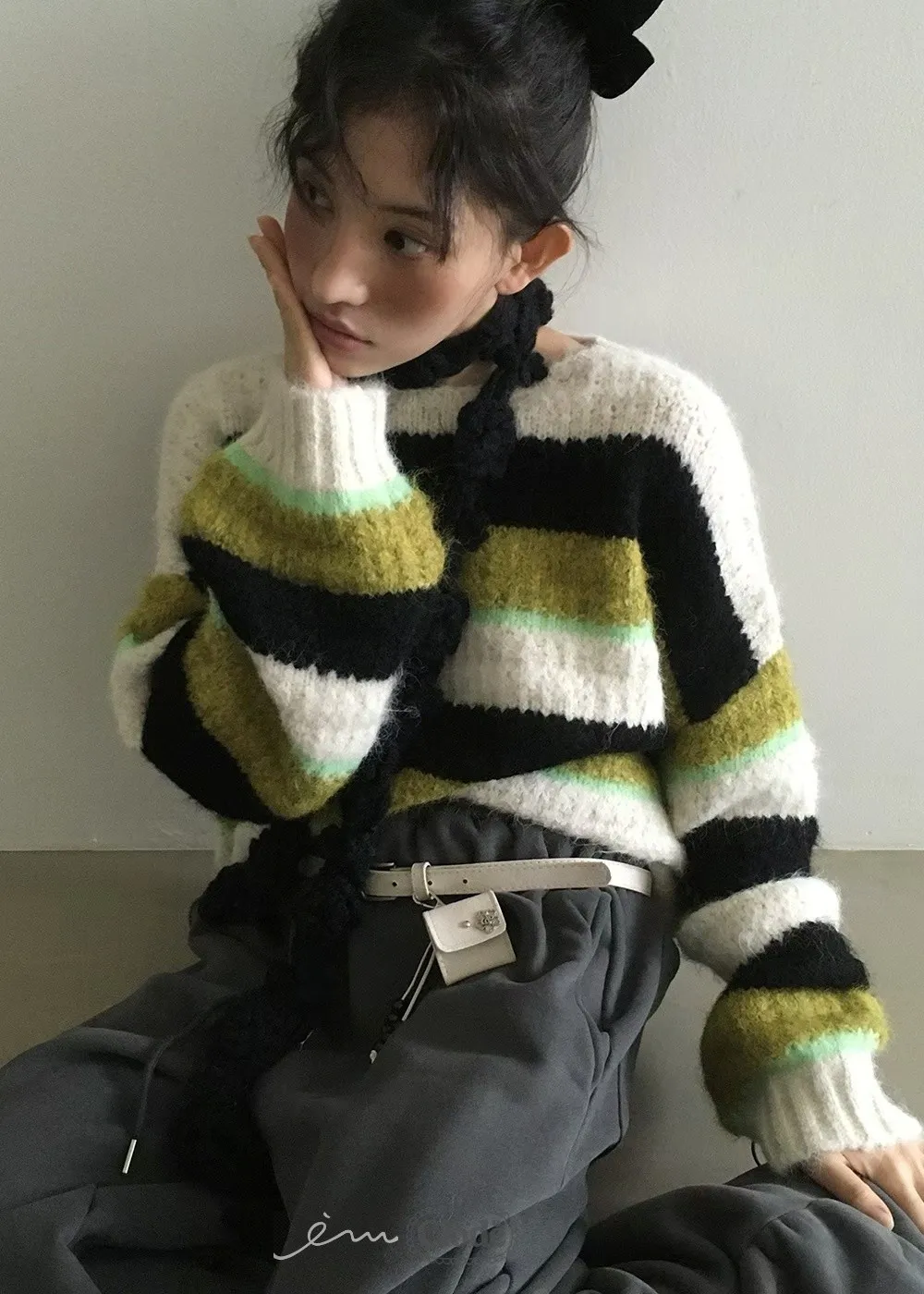 CL條紋撞色針織毛衣