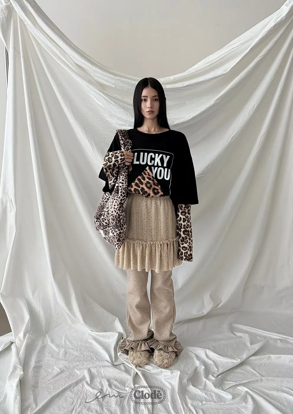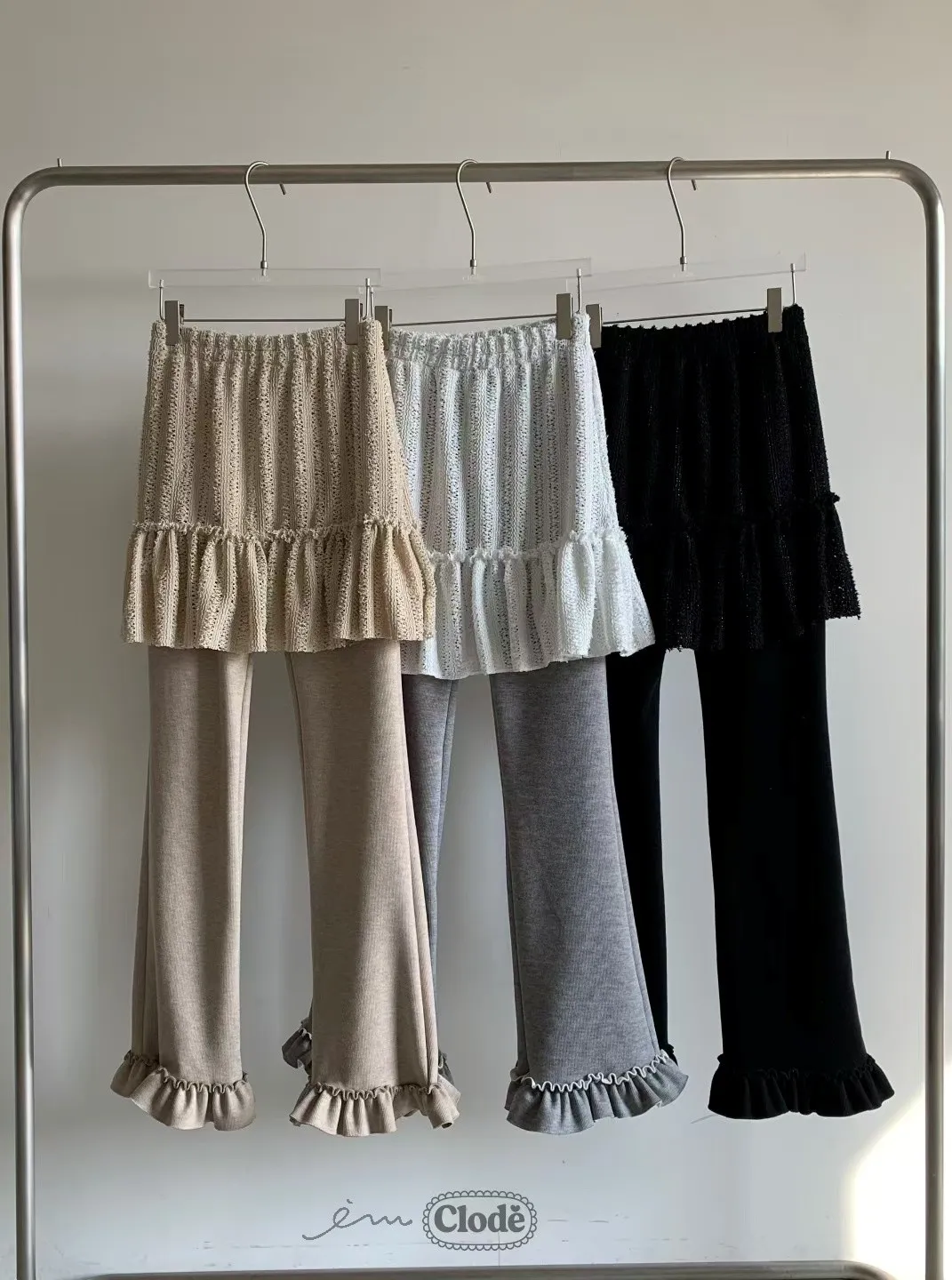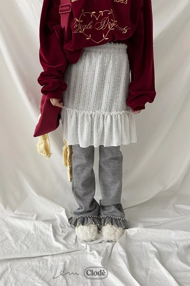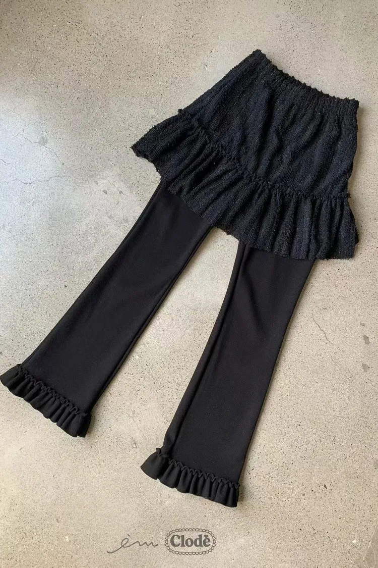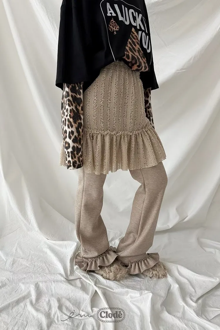 CL拼蕾絲裙下荷葉長褲
