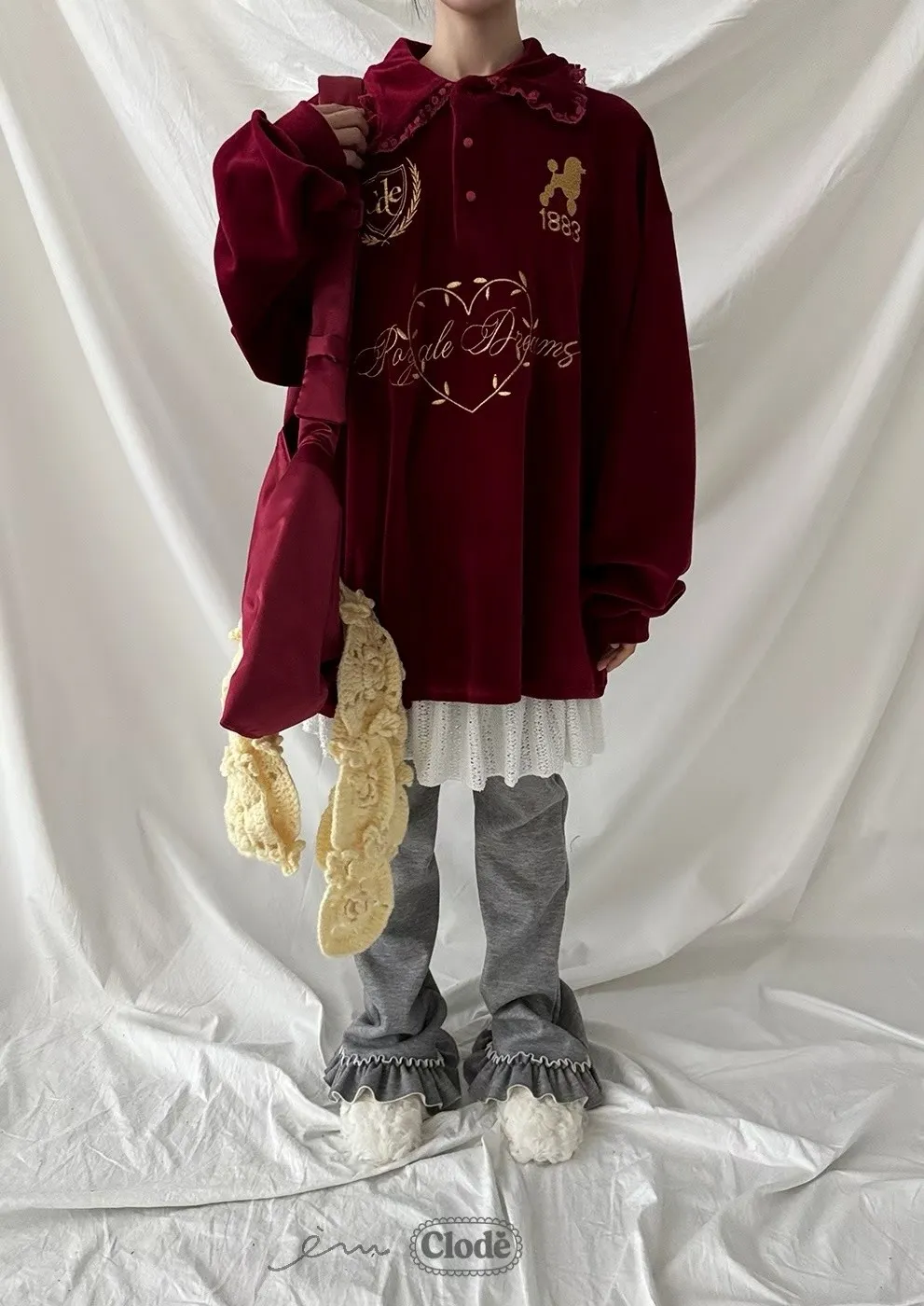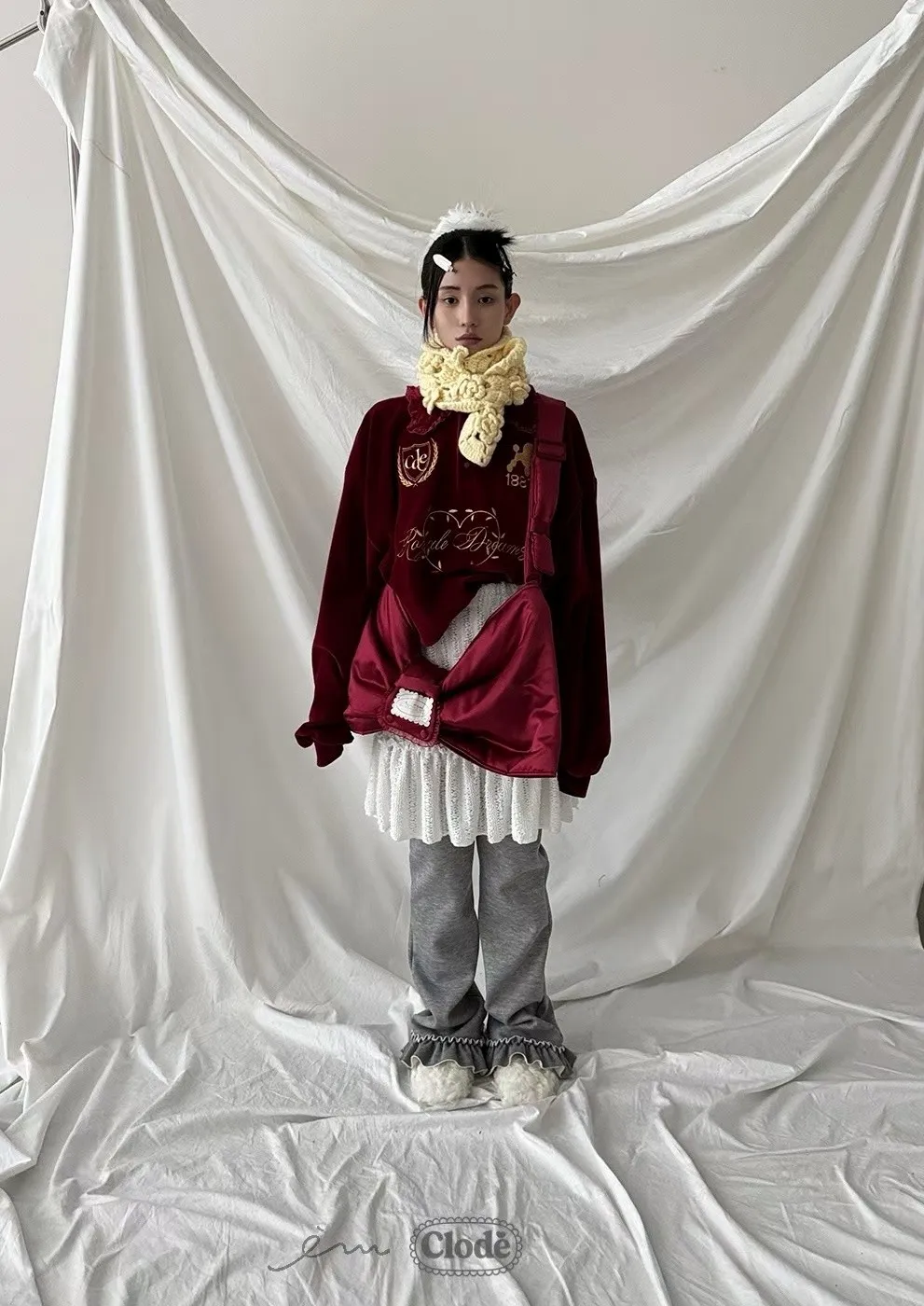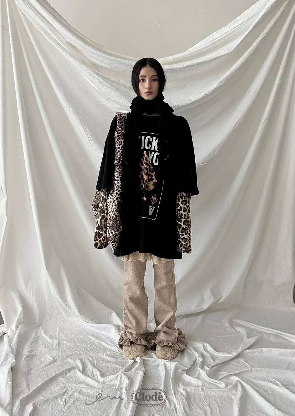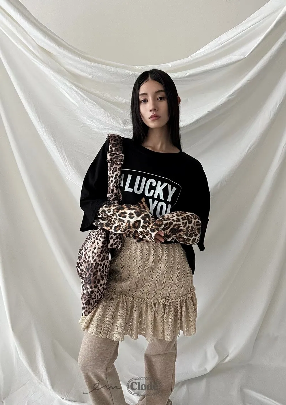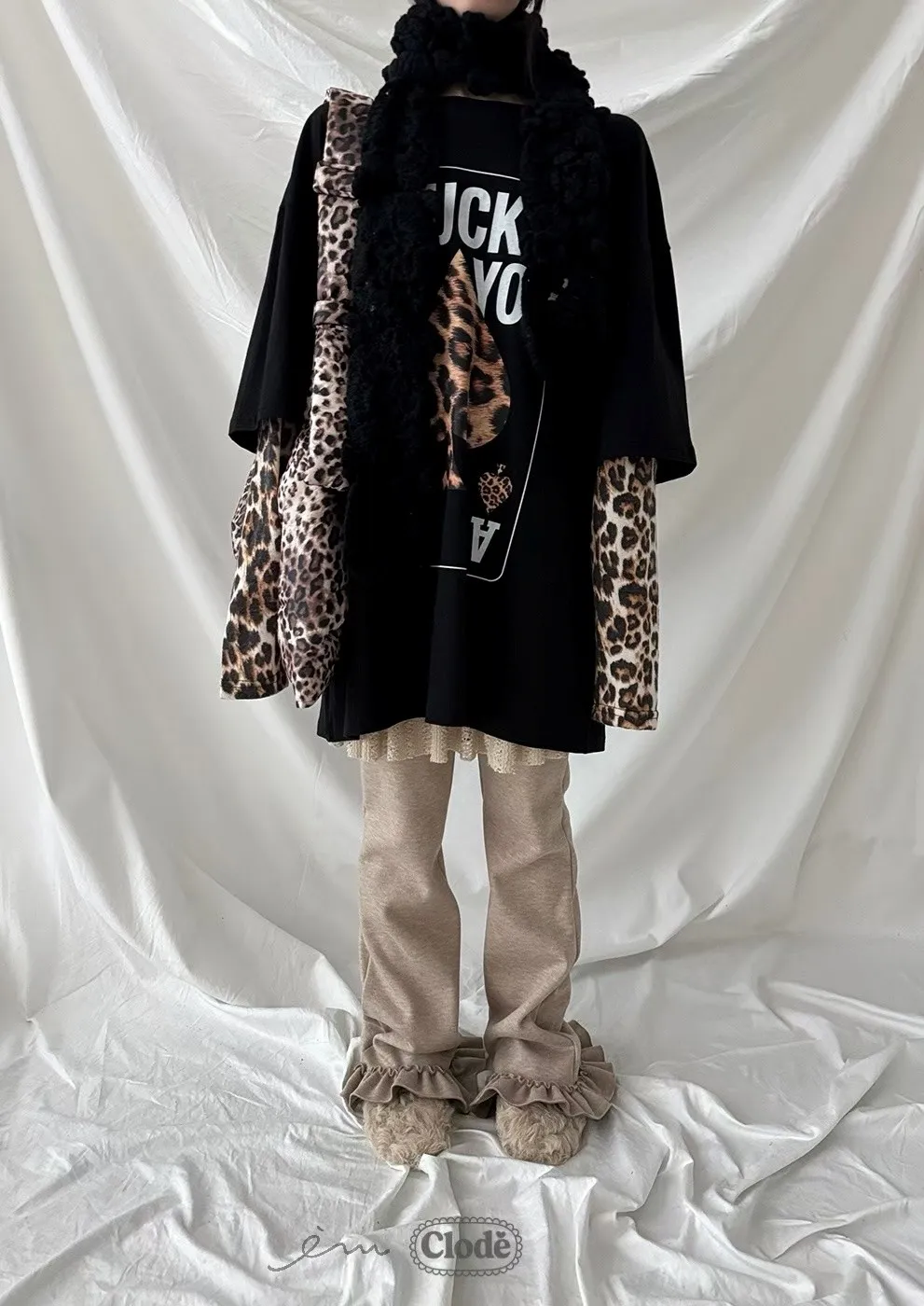 CL拼蕾絲裙下荷葉長褲