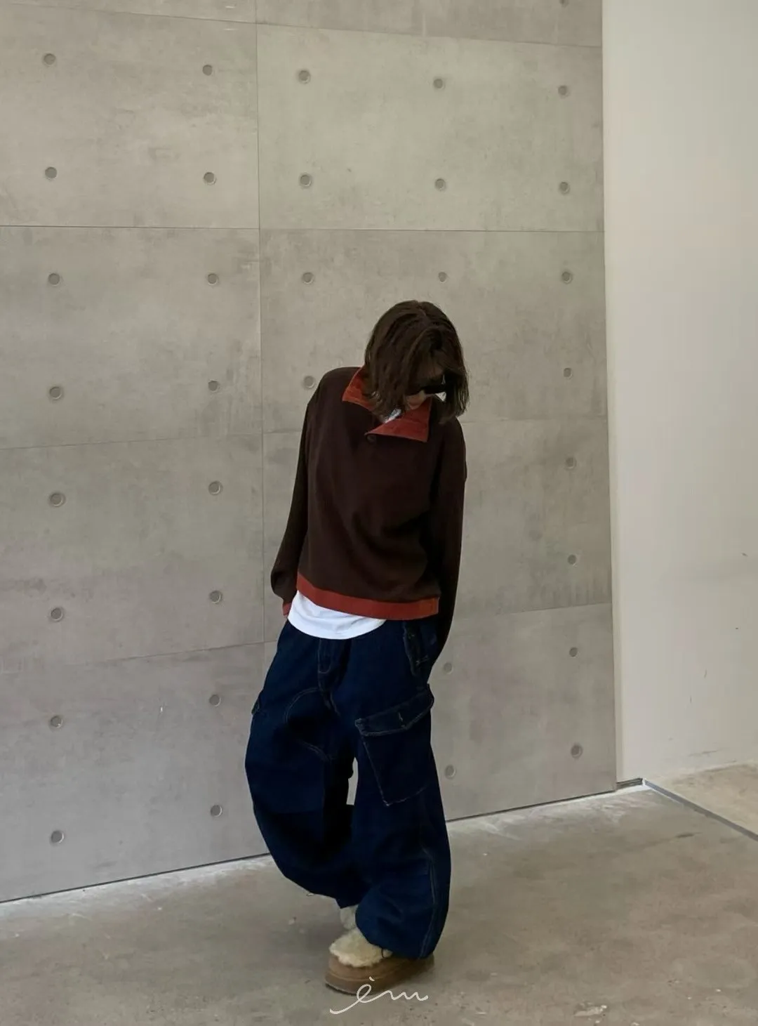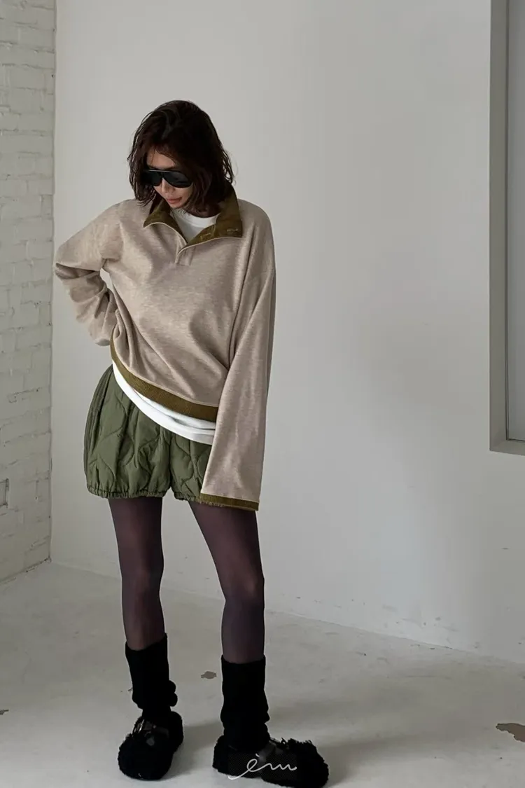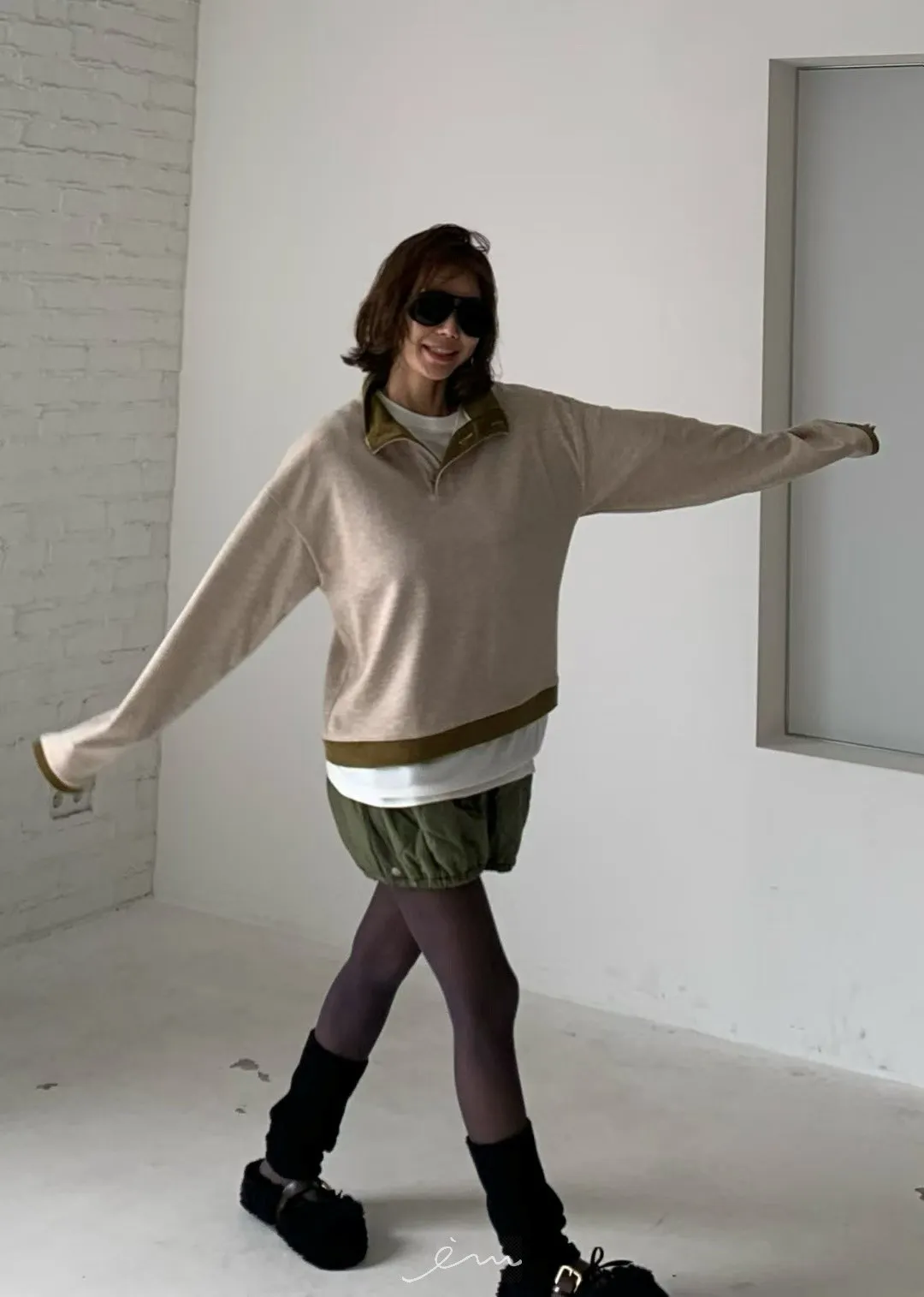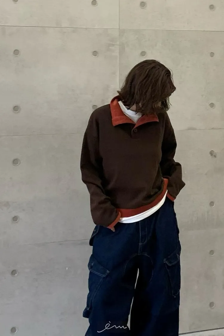 PA外磨毛接燈芯絨雙色層次領釦上衣