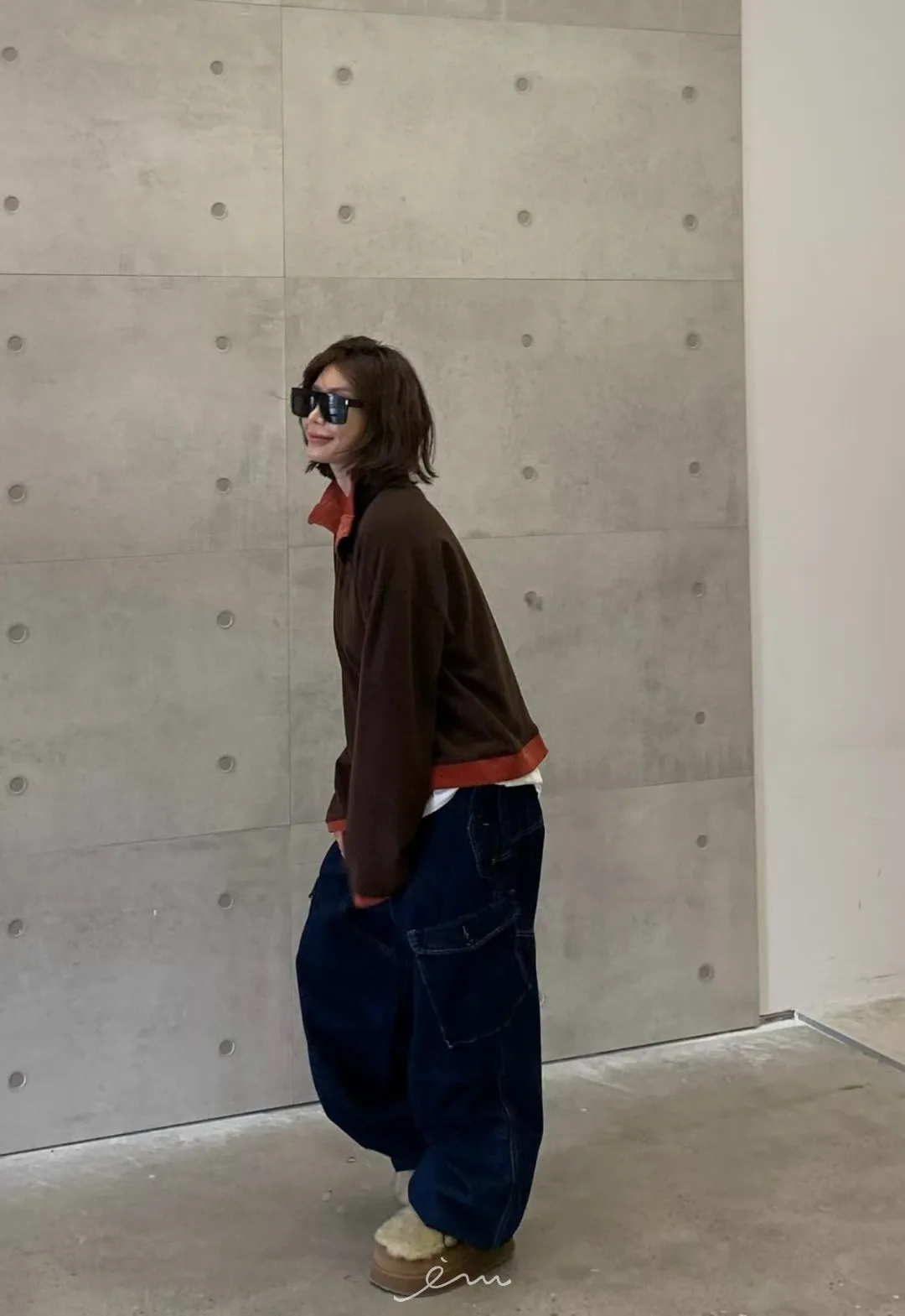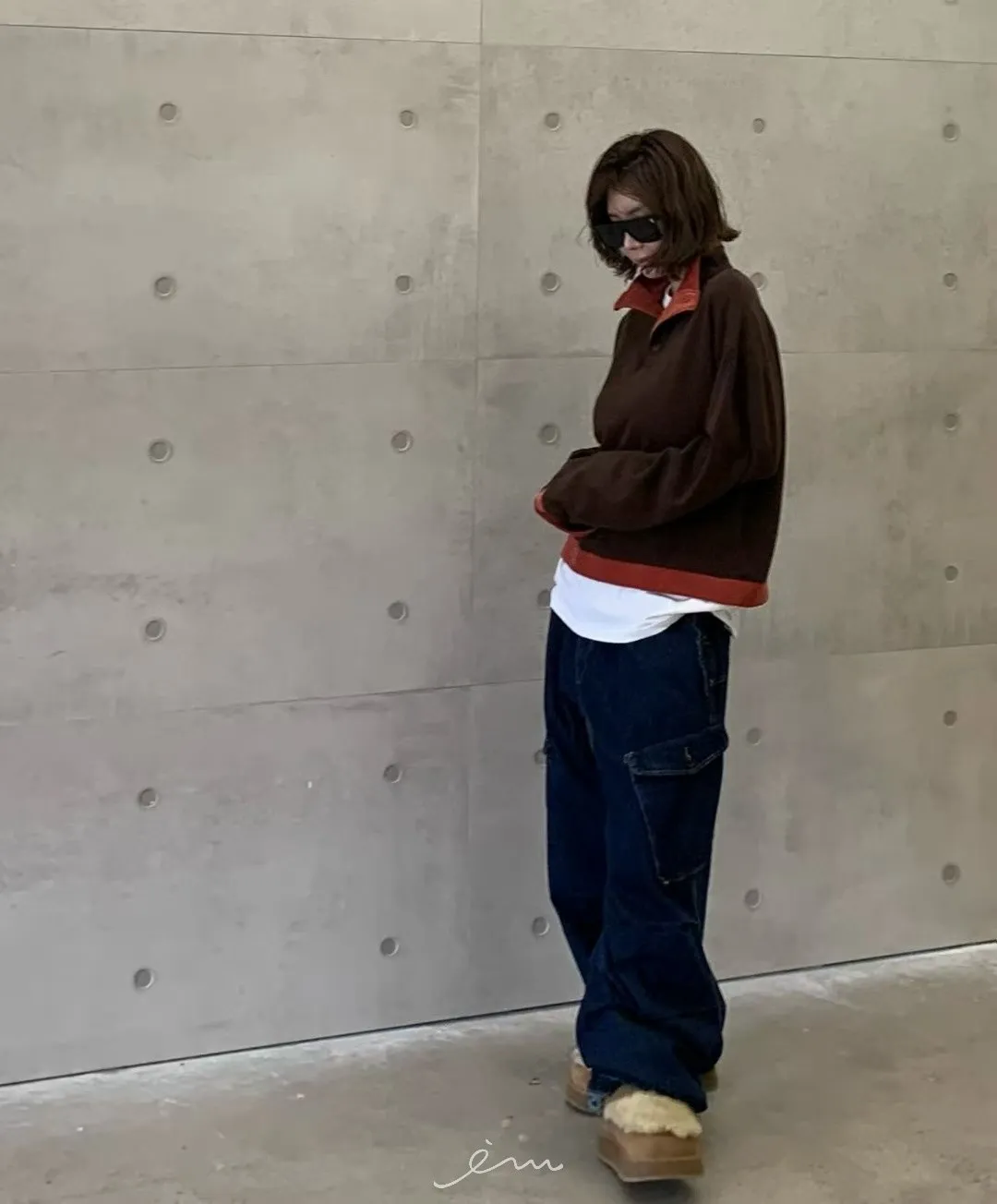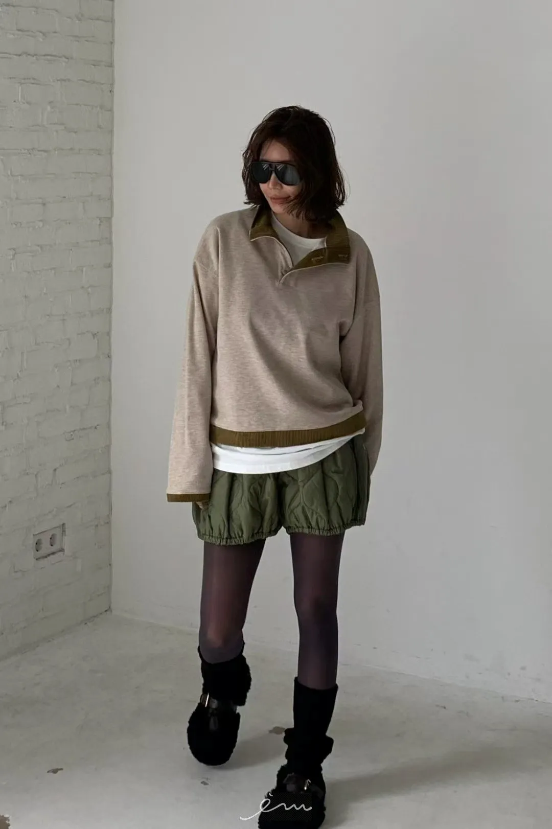 PA外磨毛接燈芯絨雙色層次領釦上衣
