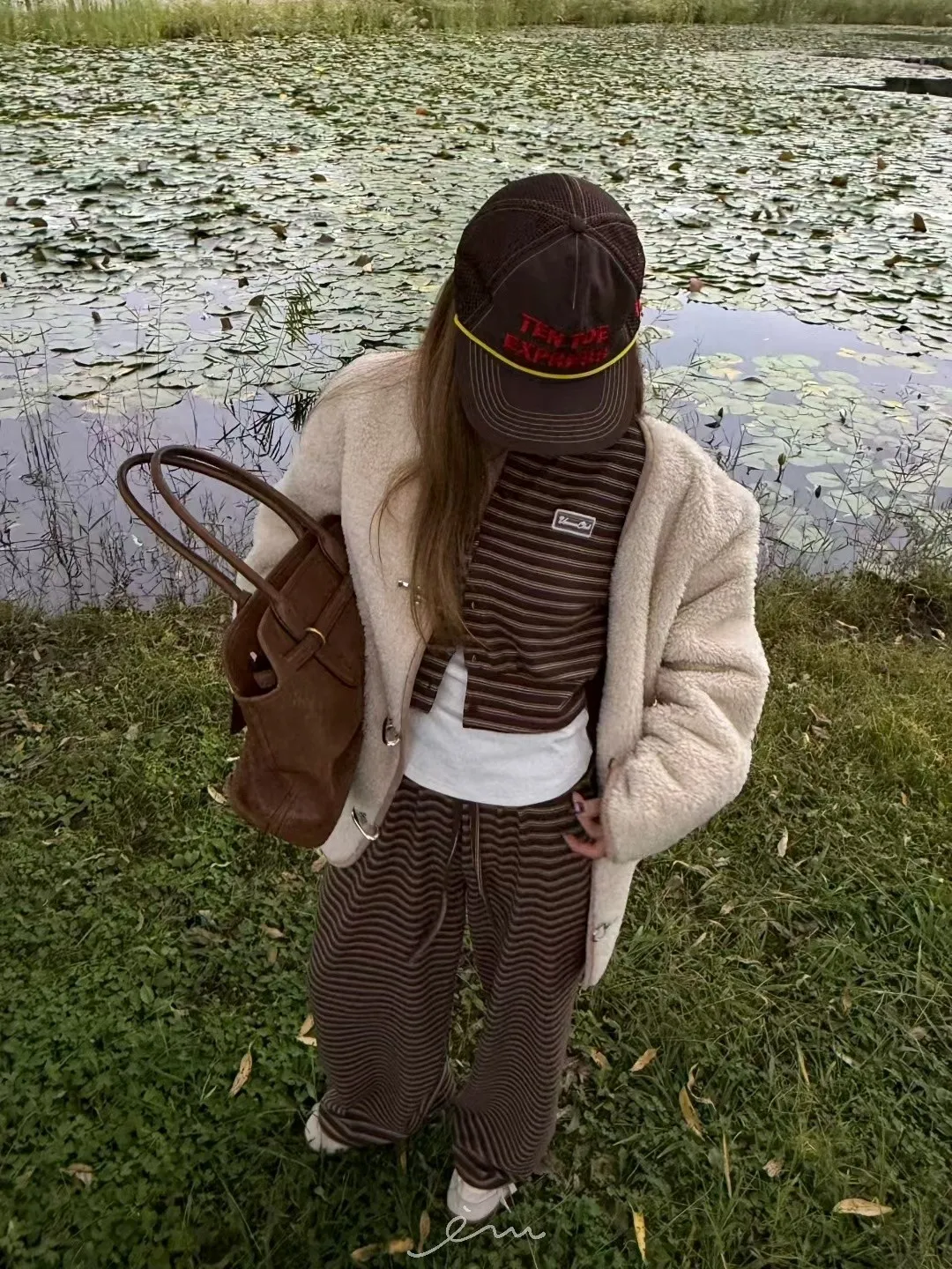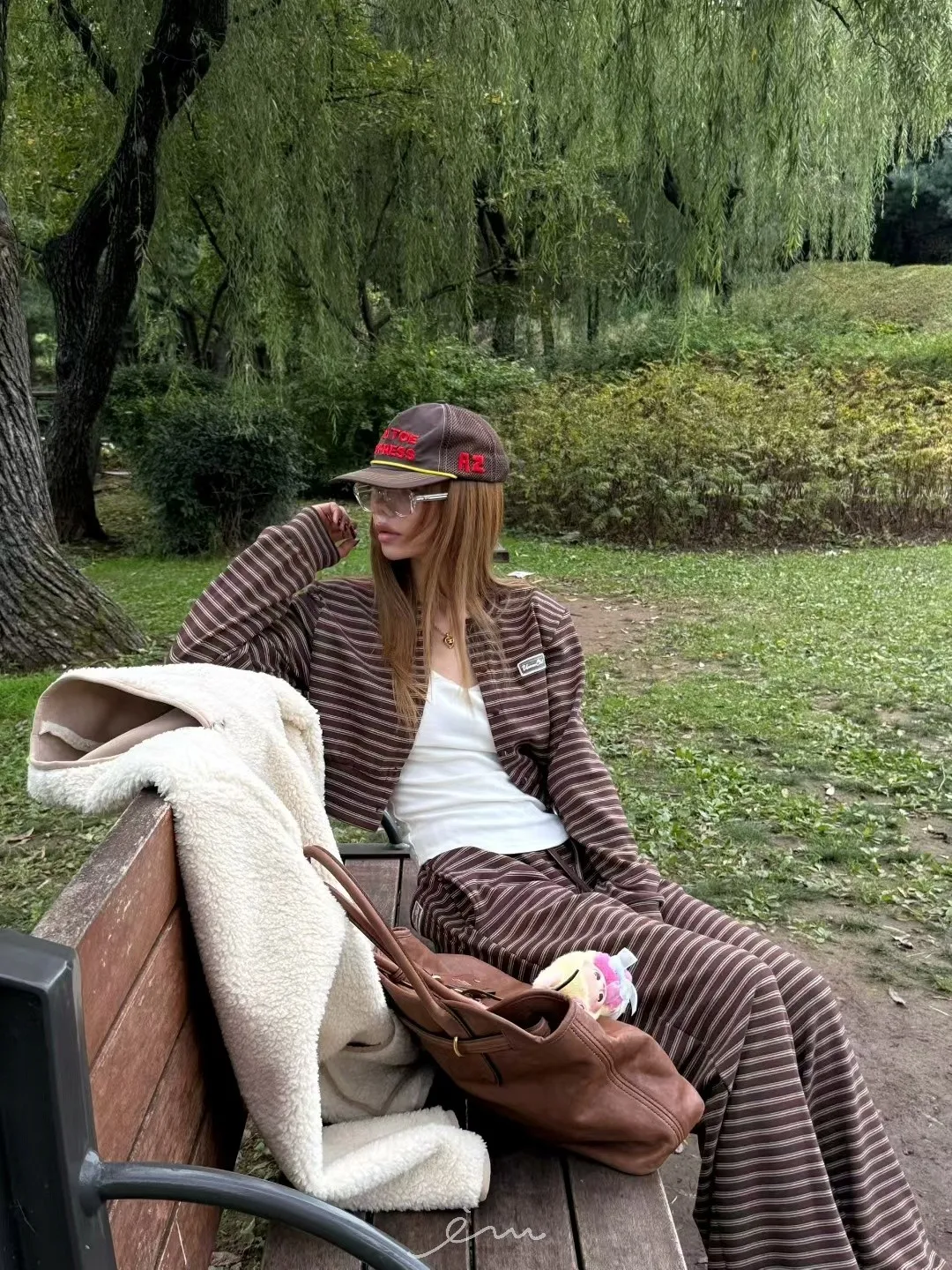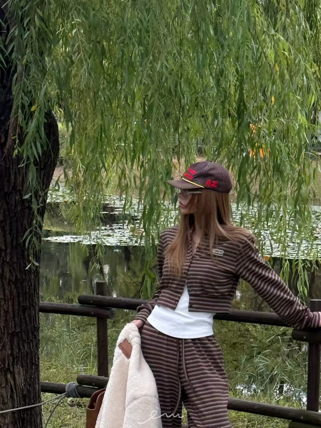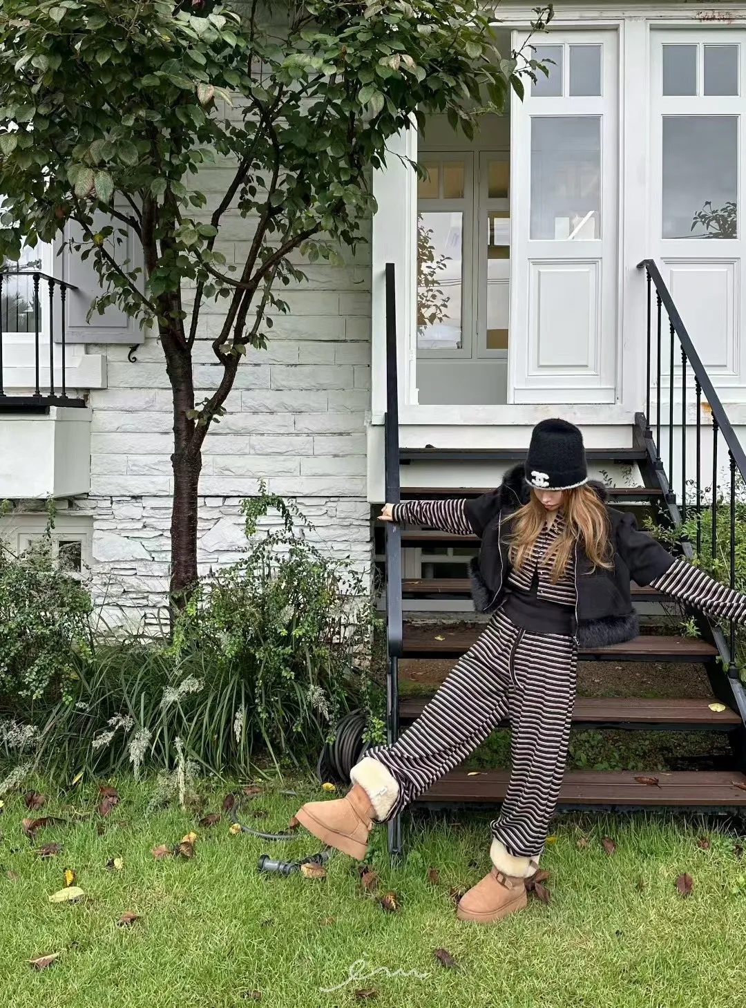 ZERO絨感條紋排釦小蕾絲標上衣