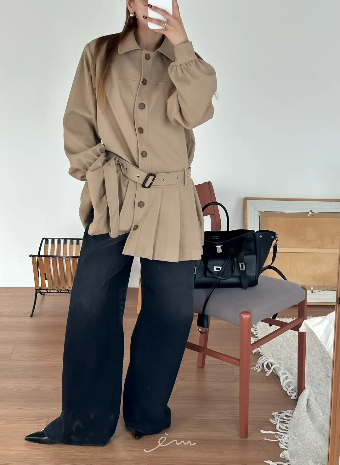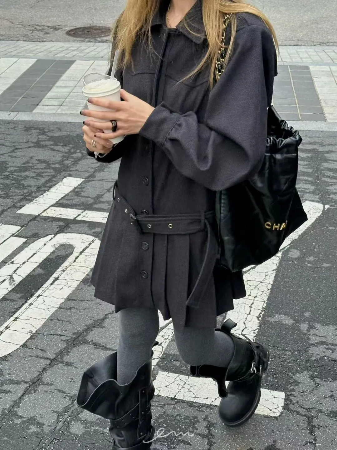 ZERO羊毛下擺造型綁帶西裝外套洋裝
