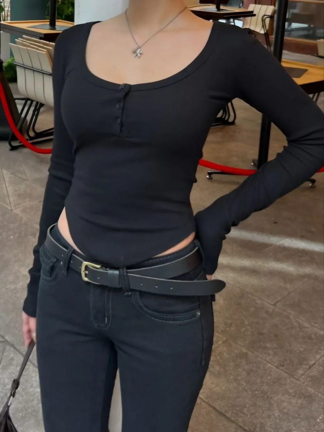 三鈕釦下圓弧素T