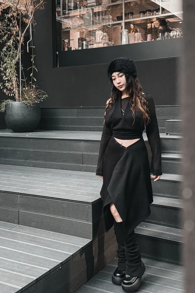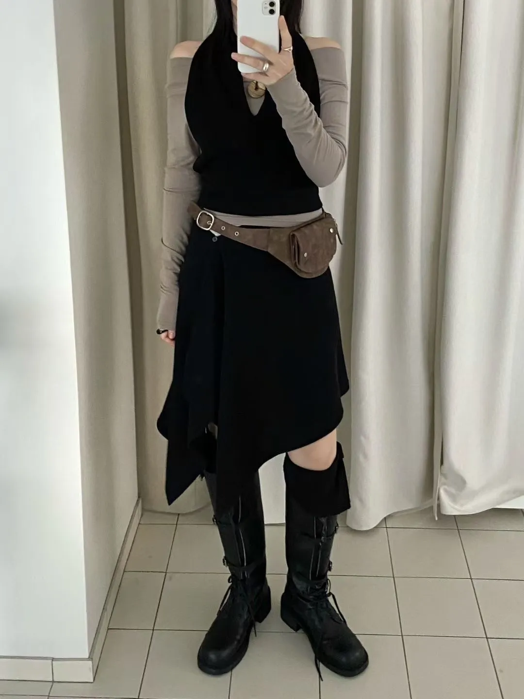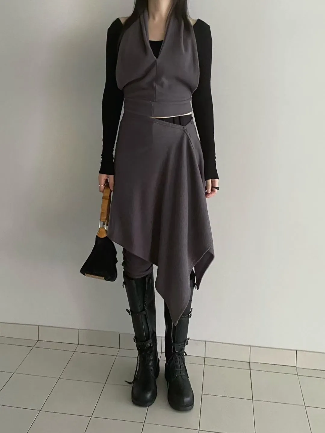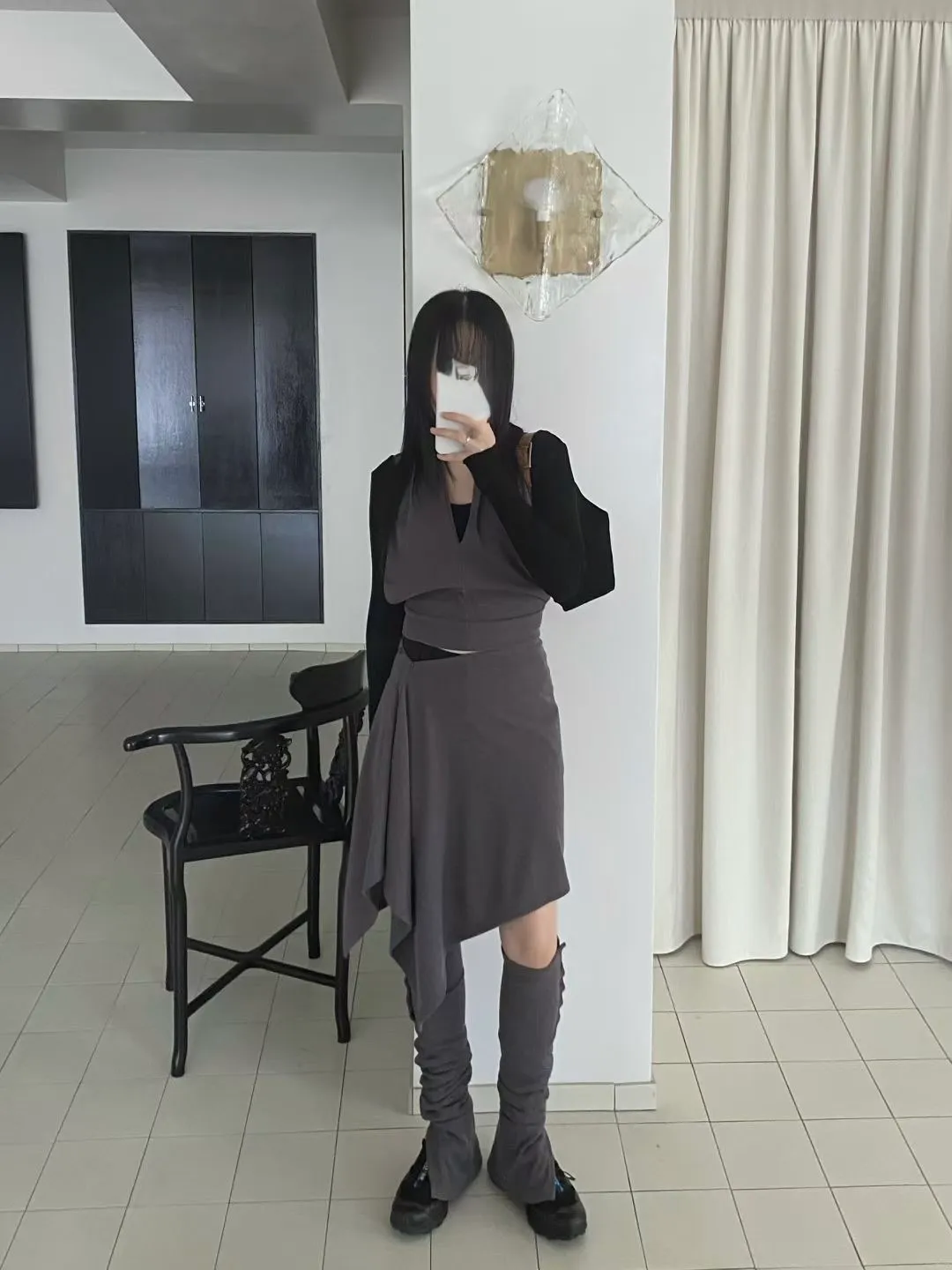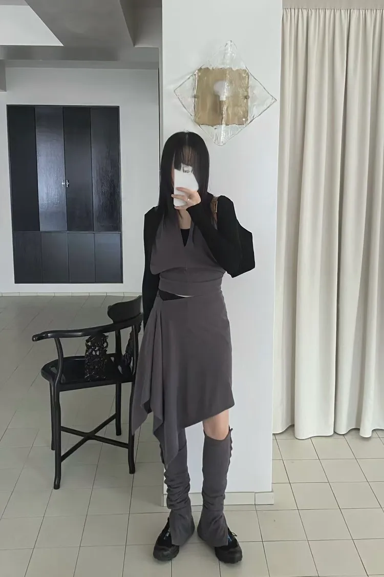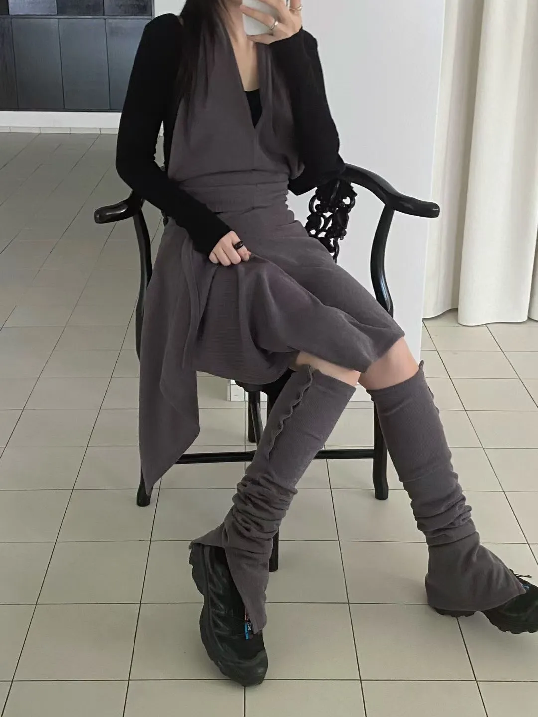 大V領繞脖背心+不規則裙+襪套(三件組)(肉0清單)
