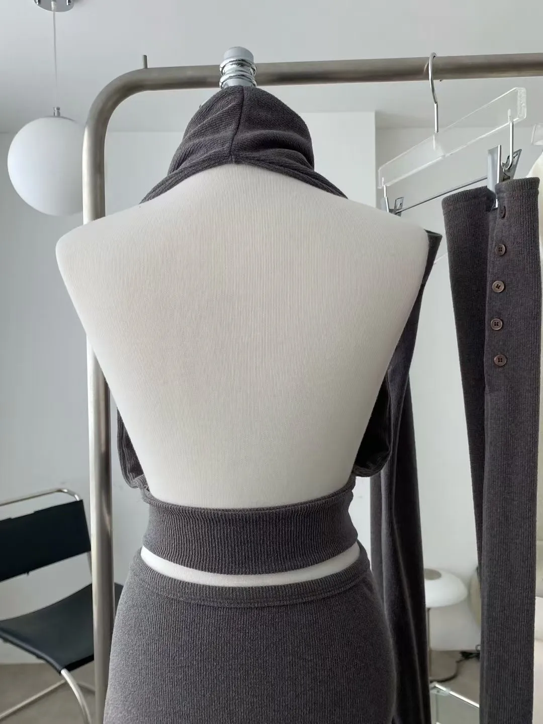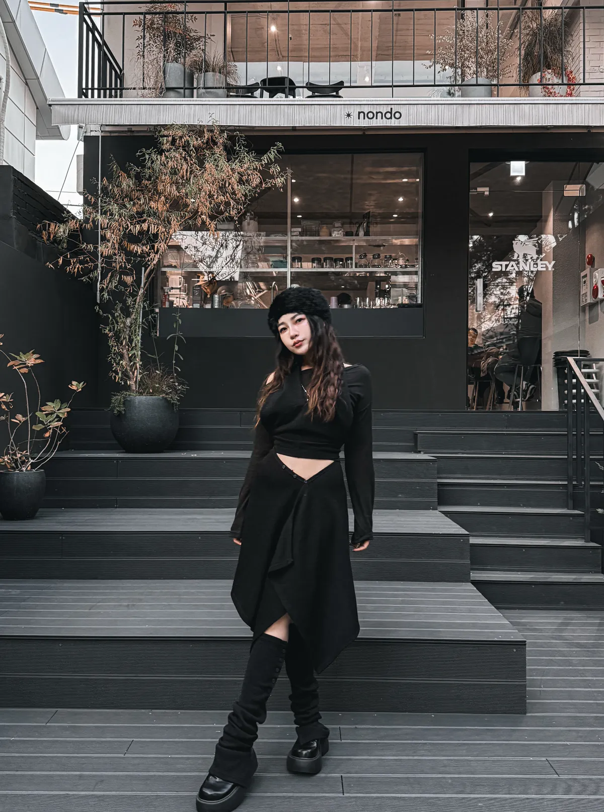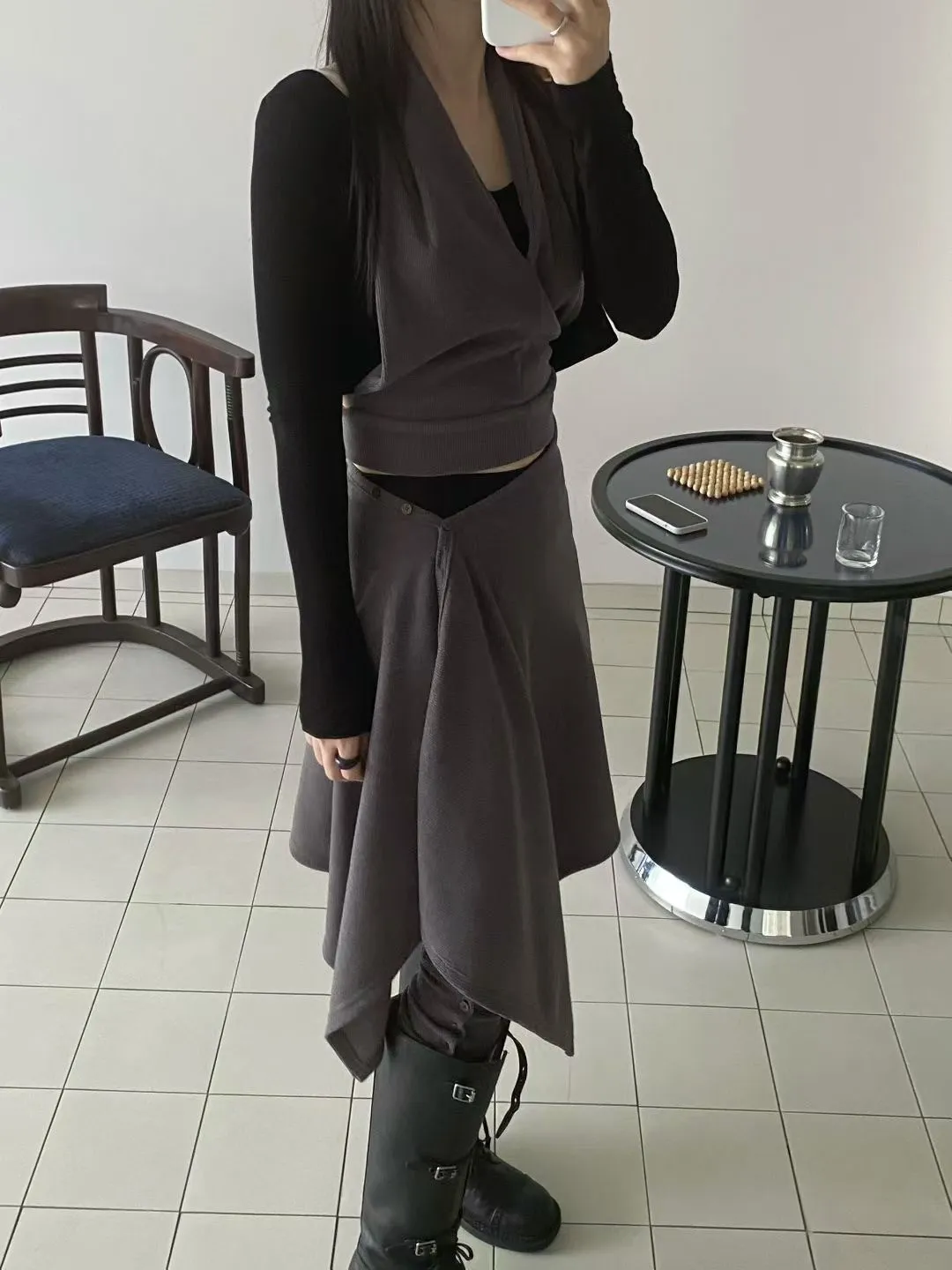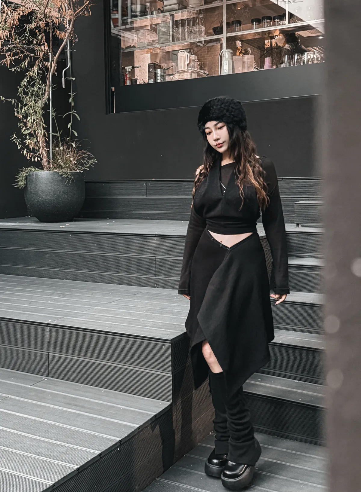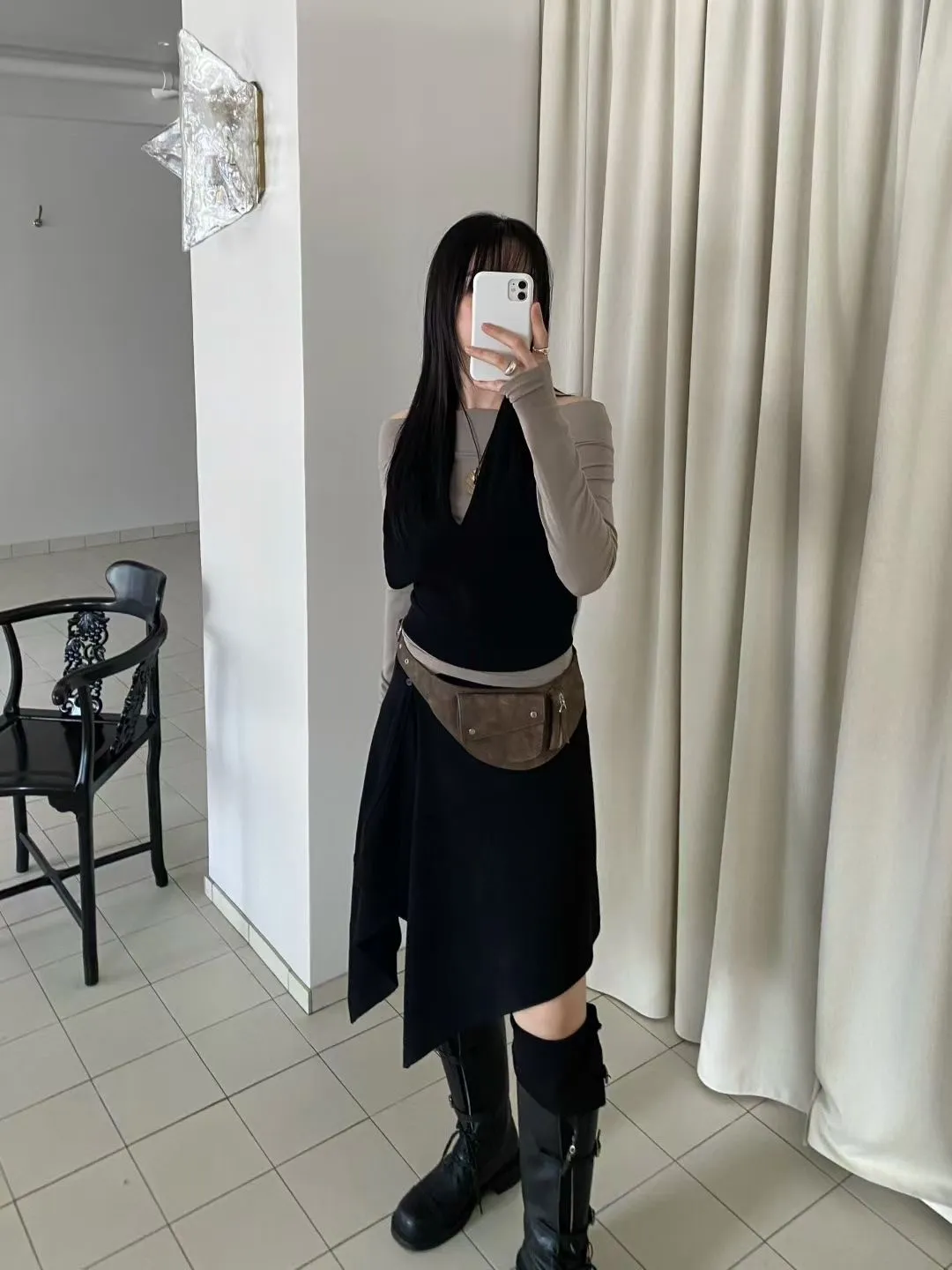大V領繞脖背心+不規則裙+襪套(三件組)(肉0清單)