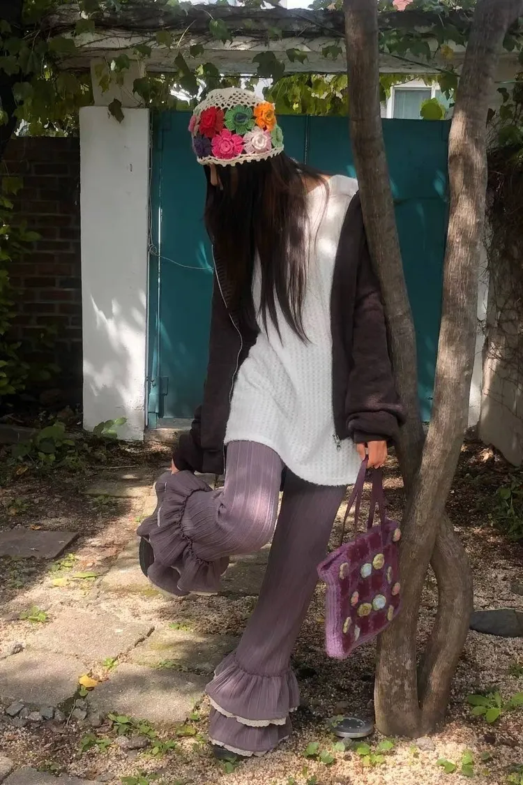 可愛!下花邊荷葉長褲