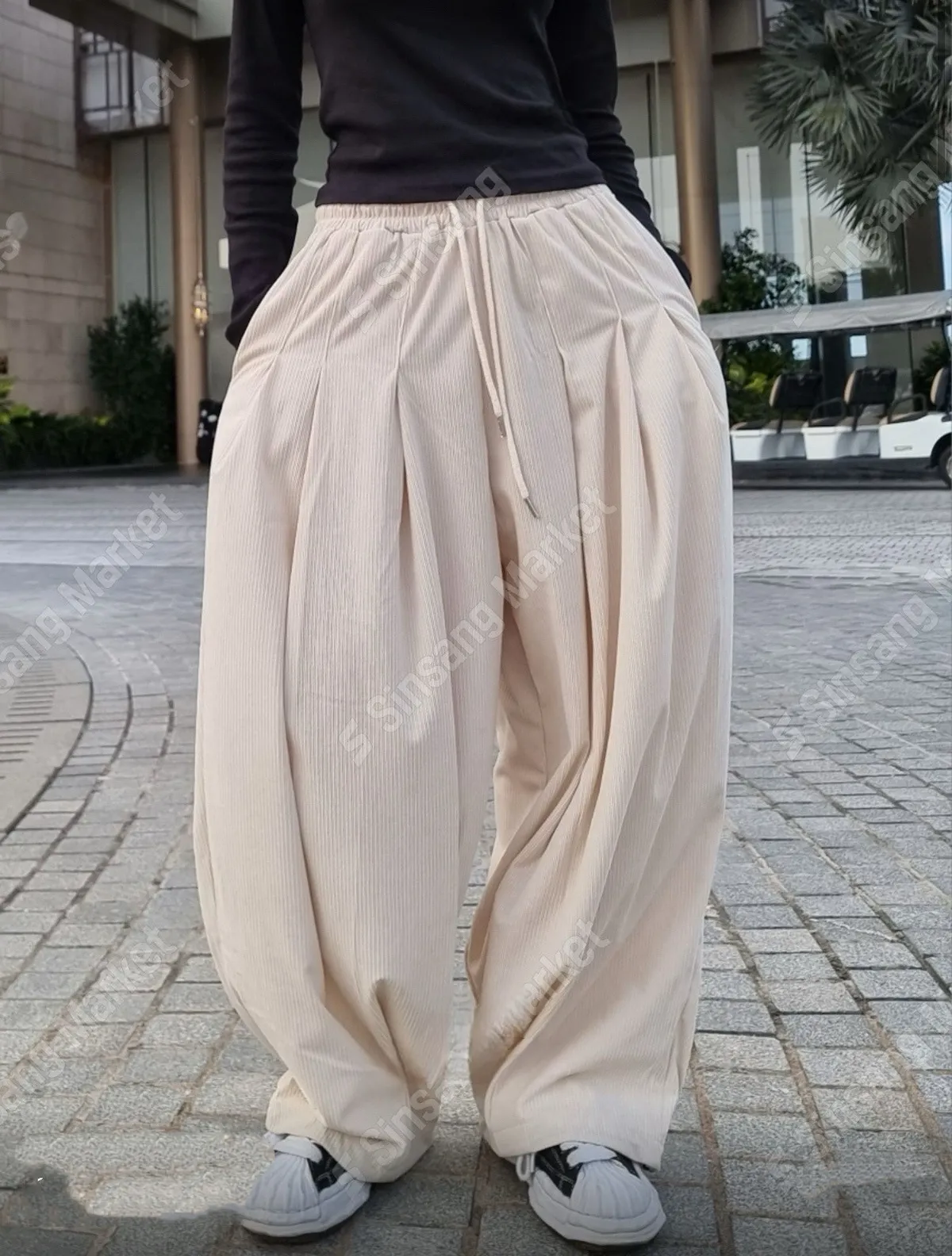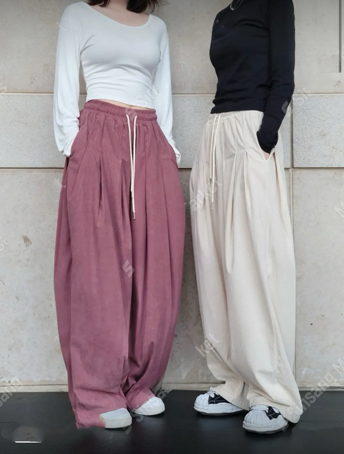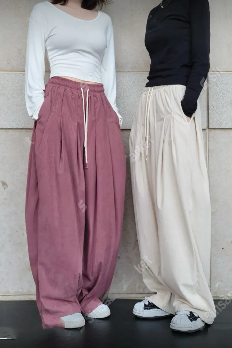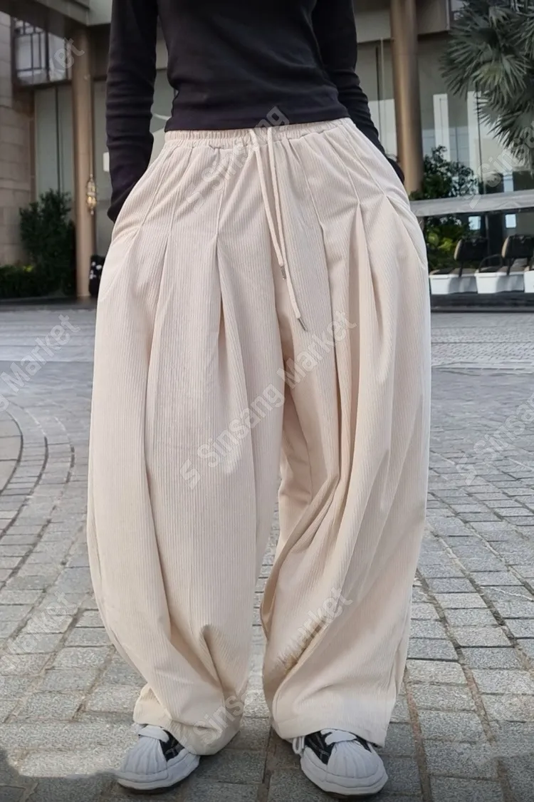 Unisex 壓褶燈芯絨寬褲