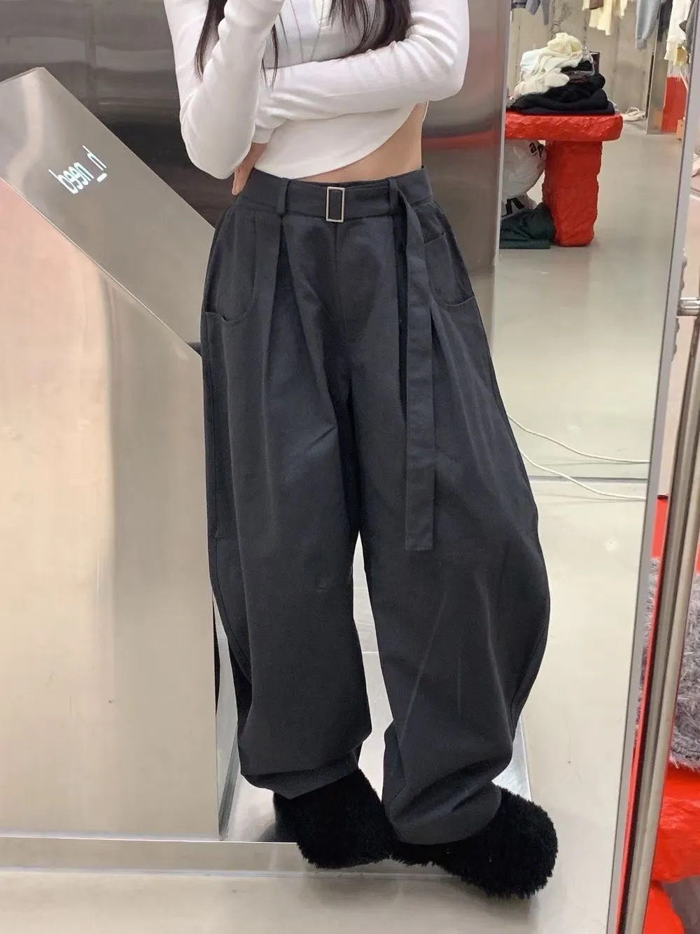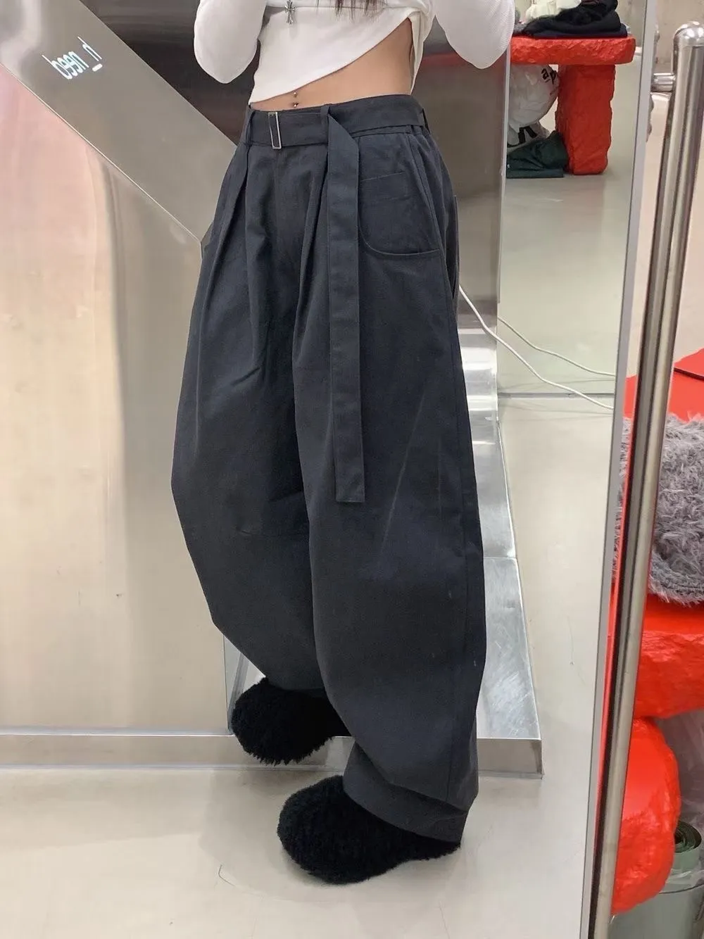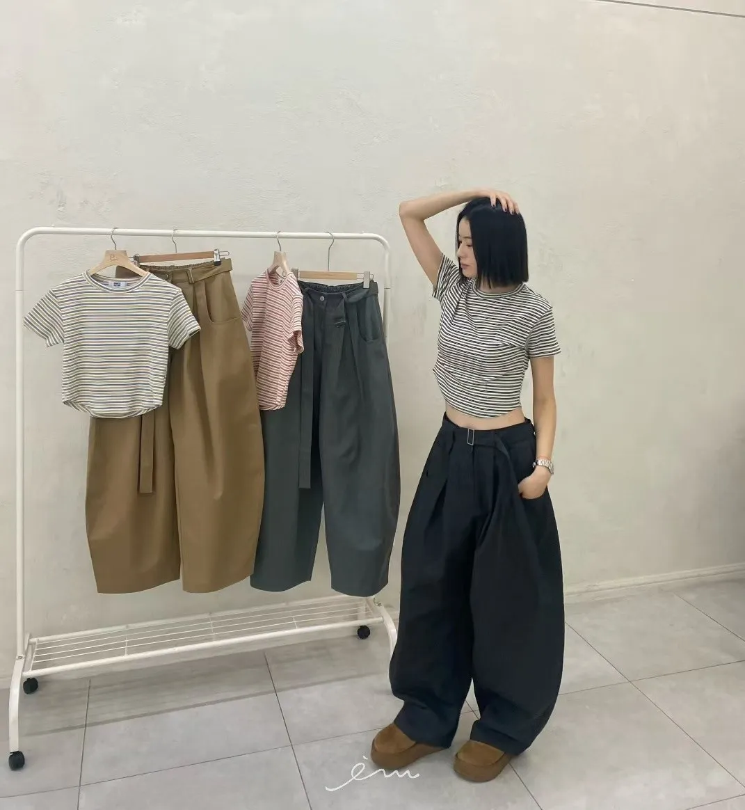 RO腰帶後鬆緊彎刀褲