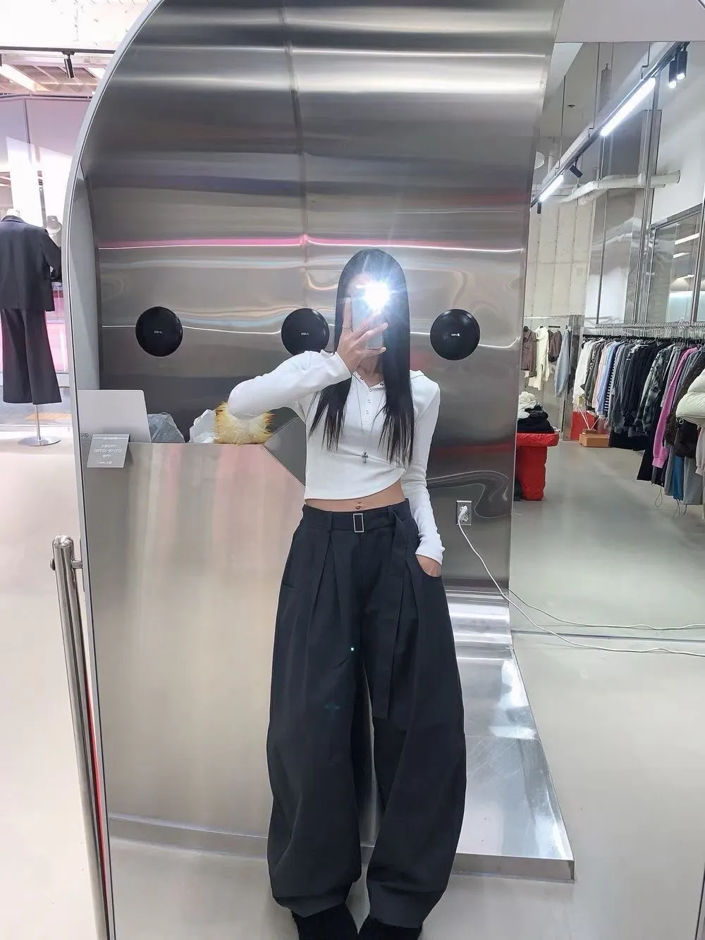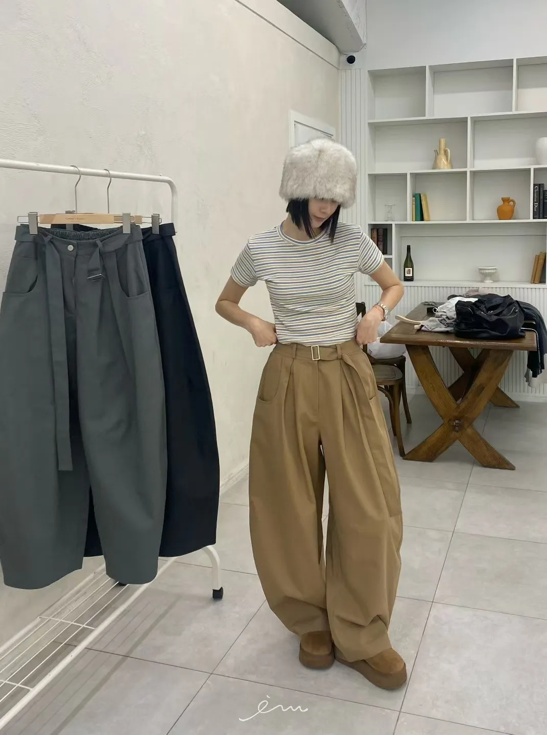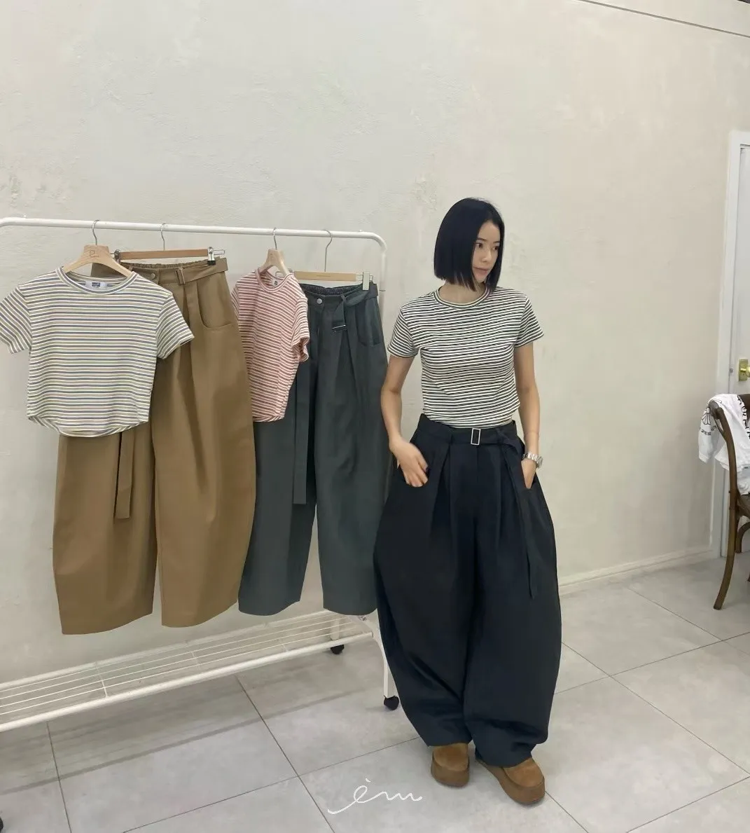 RO腰帶後鬆緊彎刀褲