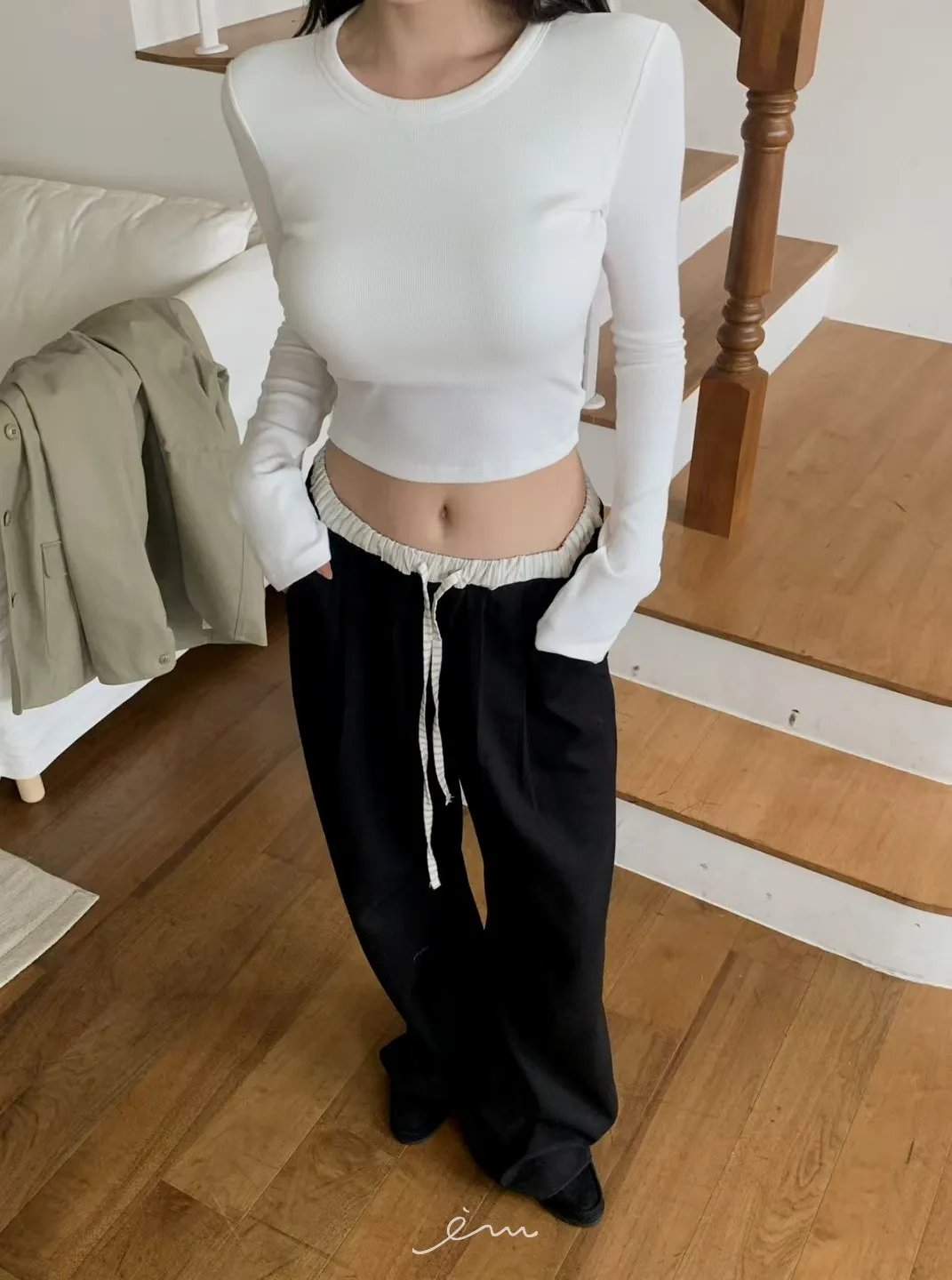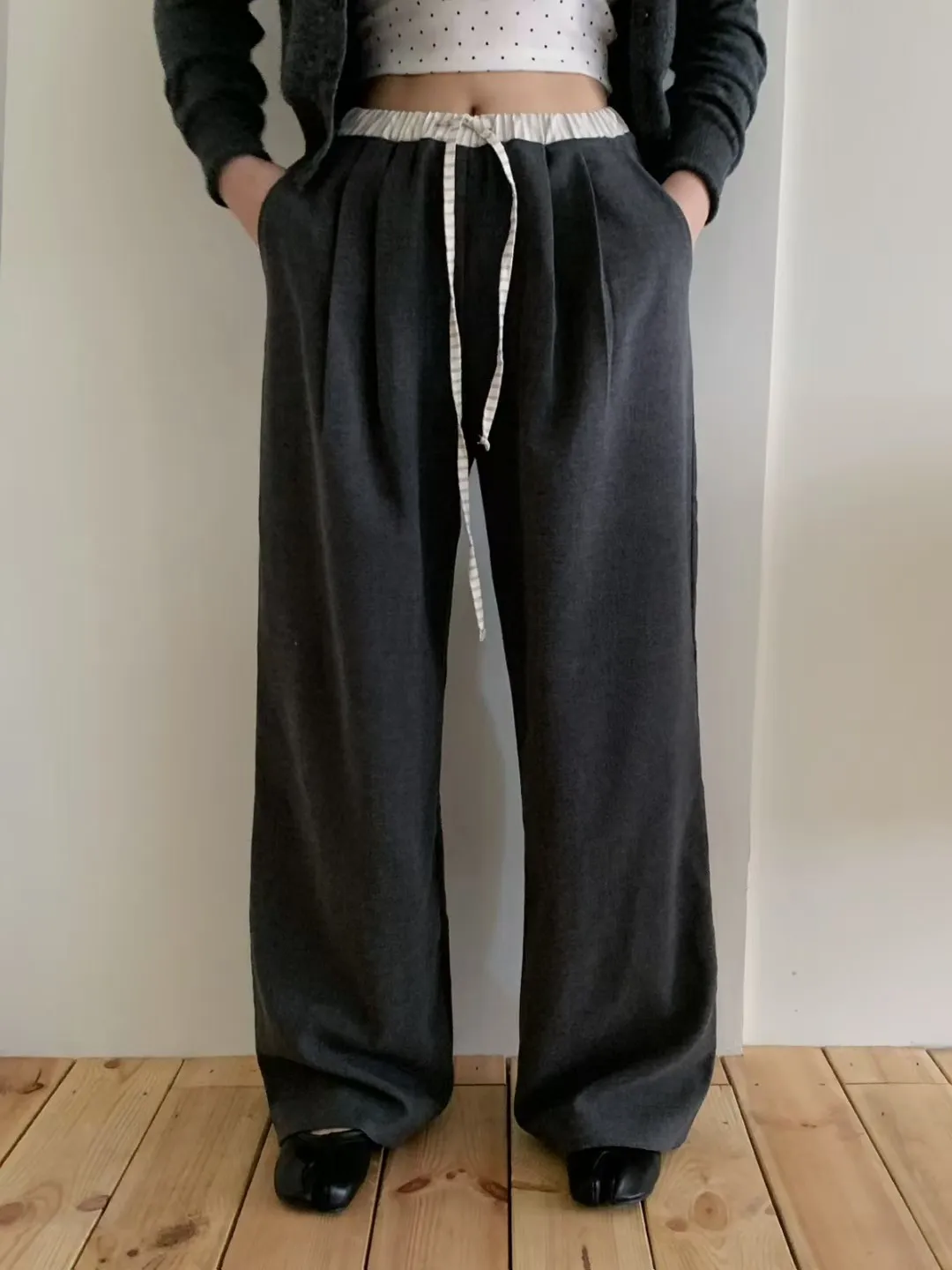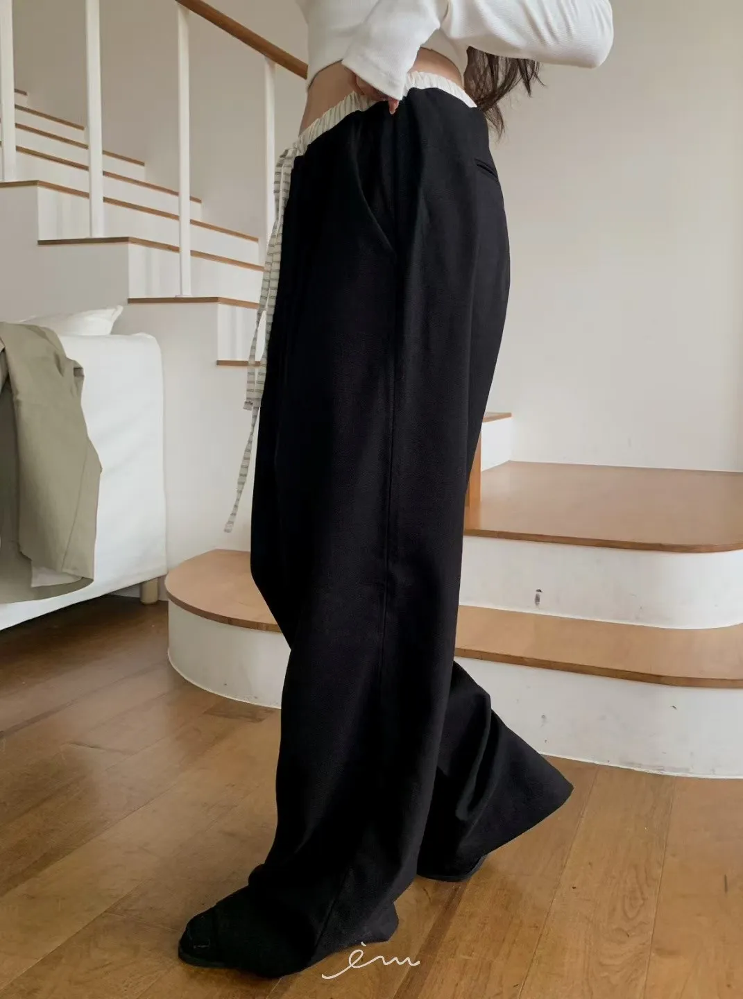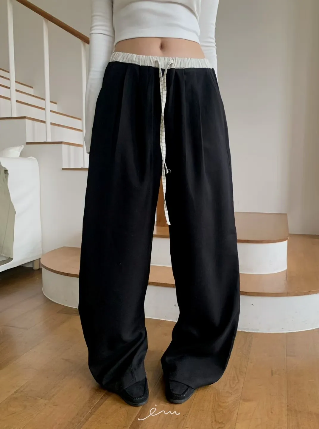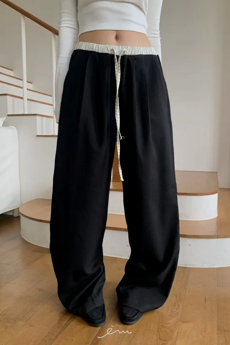 MON褲頭拼接抽繩打摺褲sale