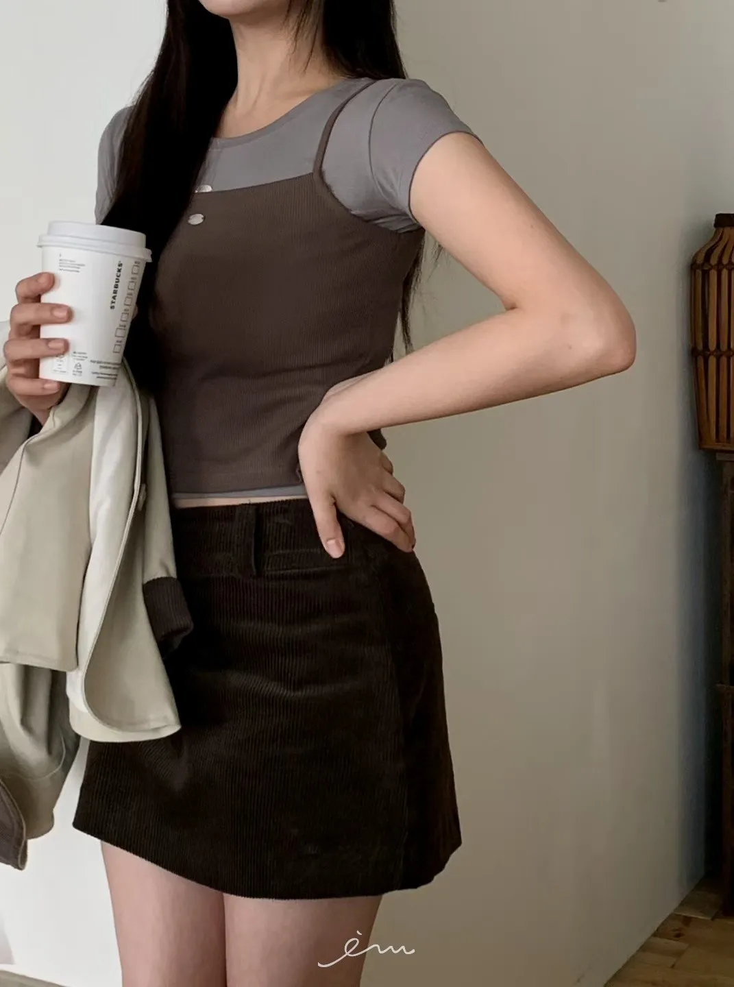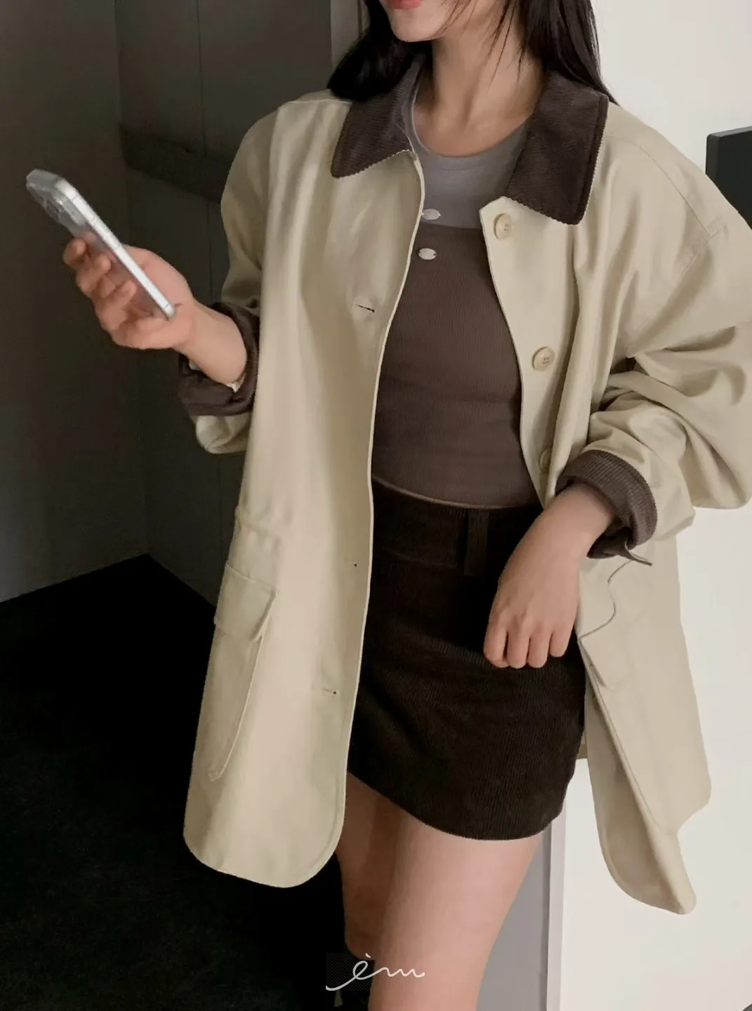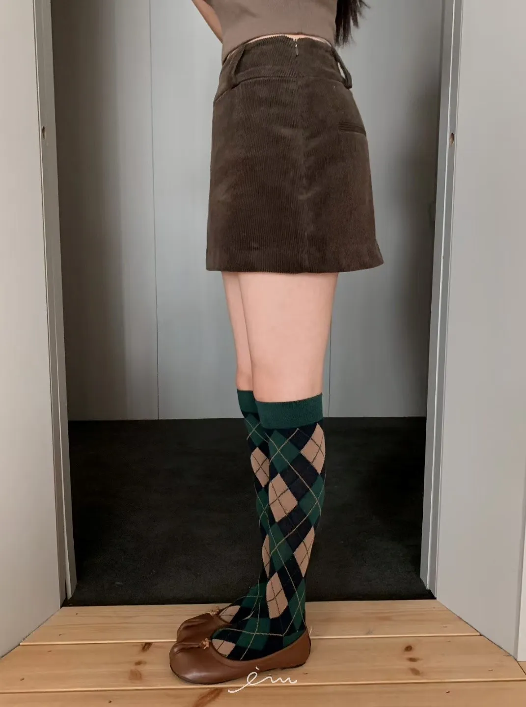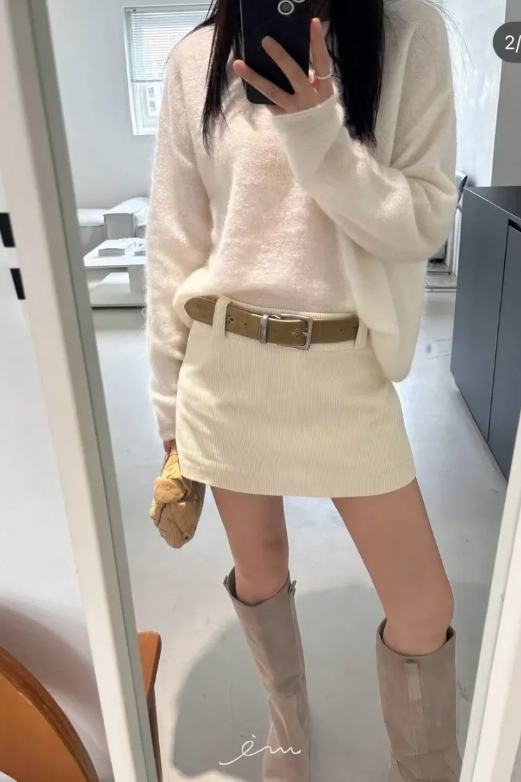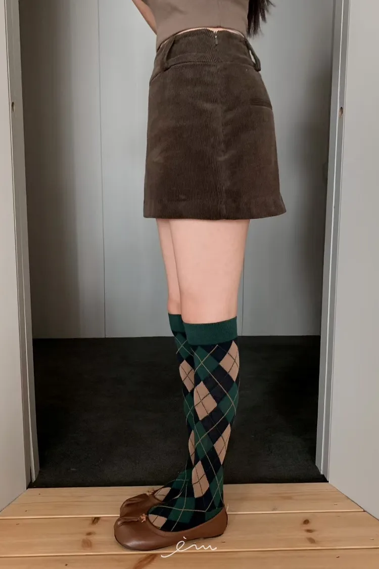 MON燈芯絨側拉鍊短褲裙