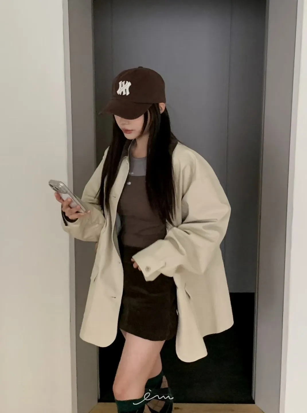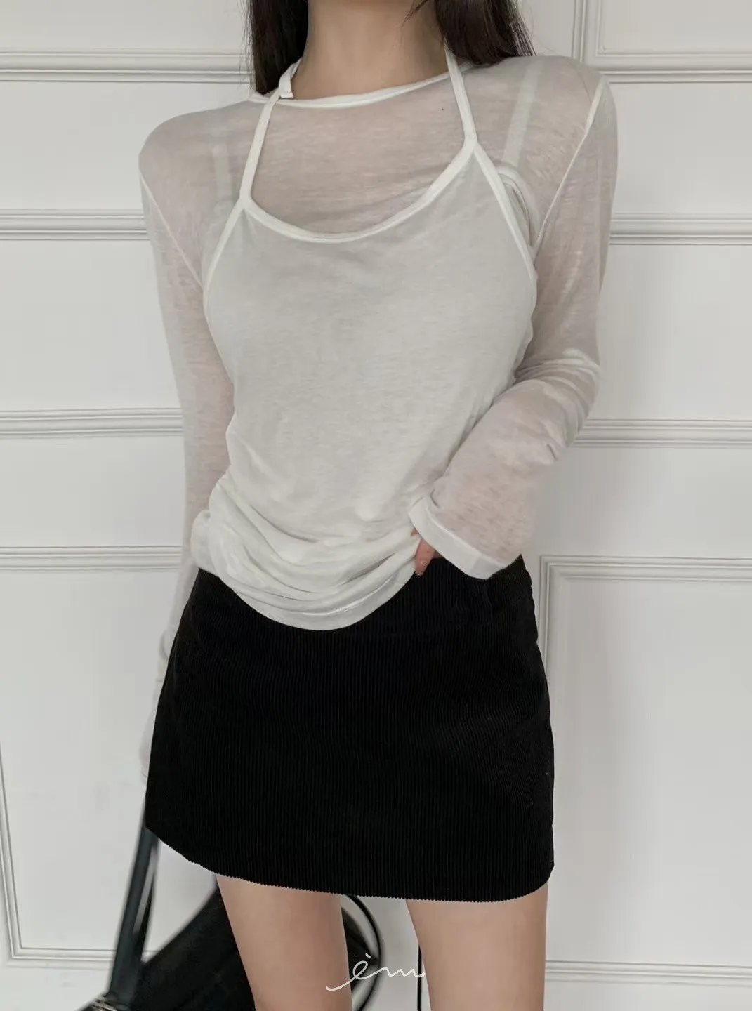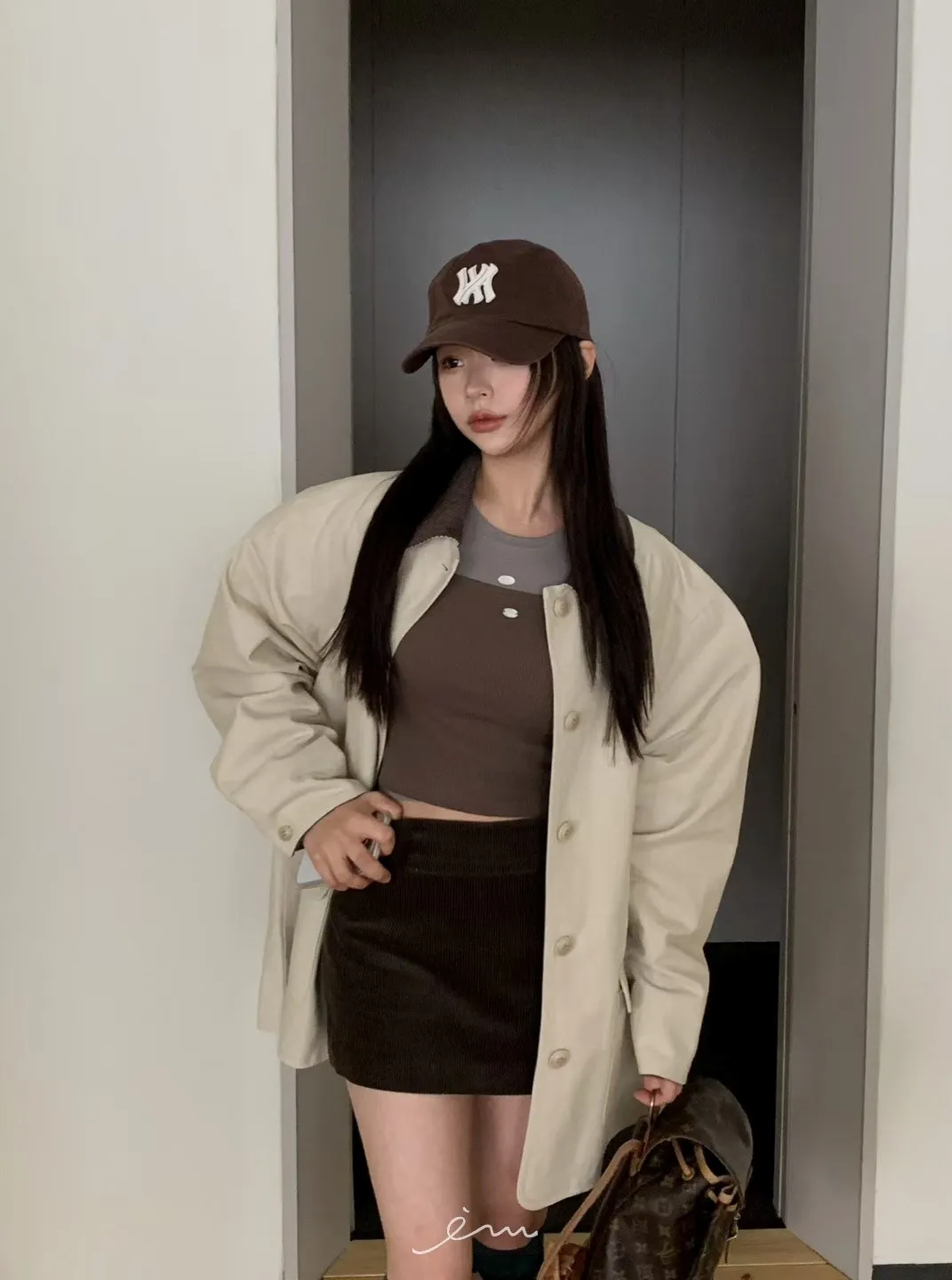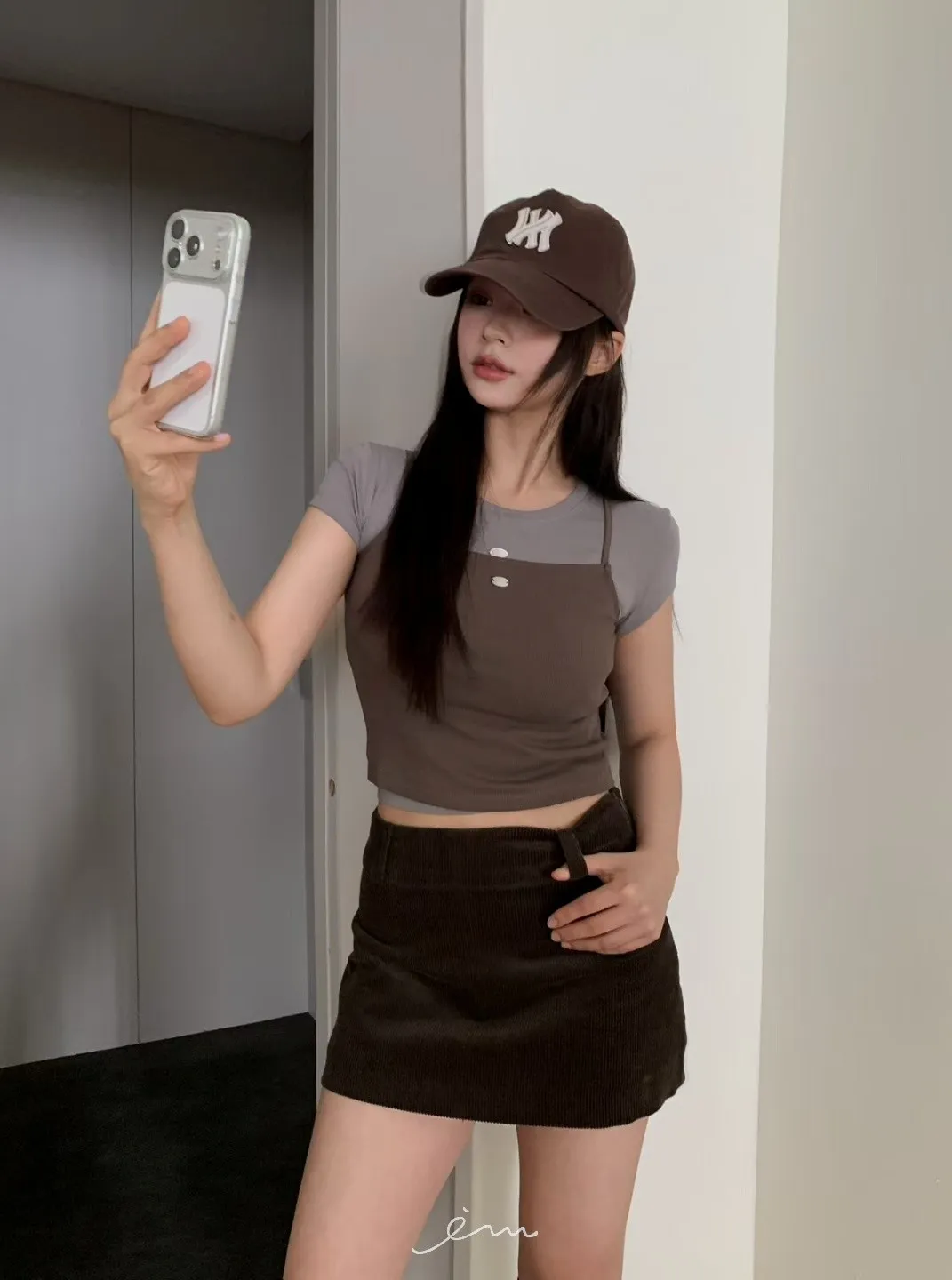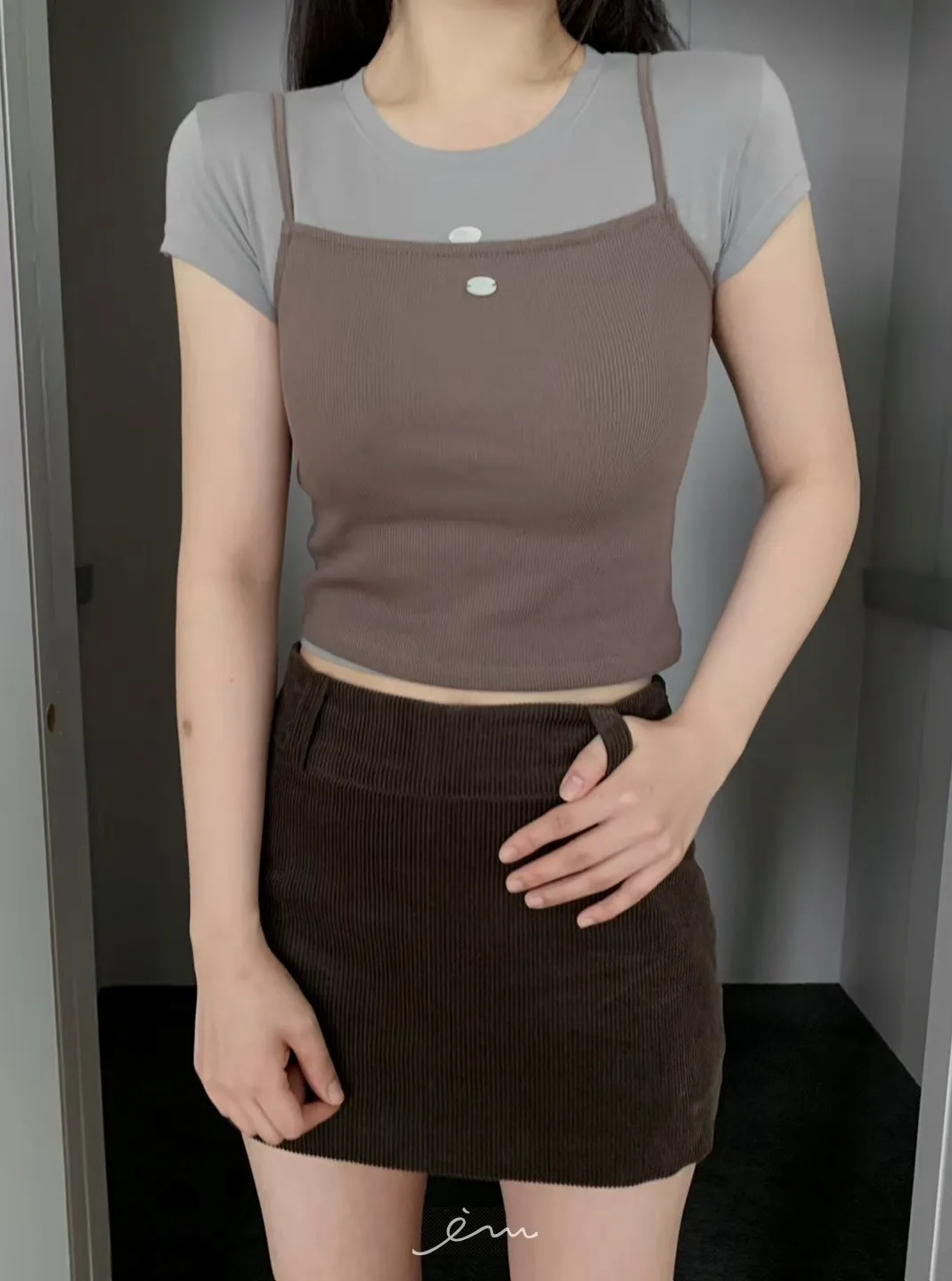 MON燈芯絨側拉鍊短褲裙