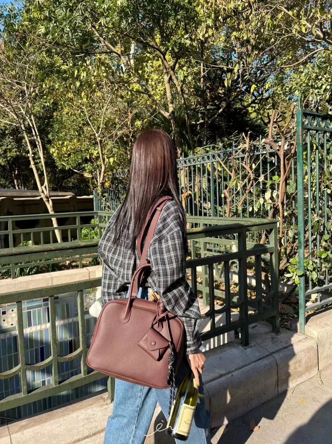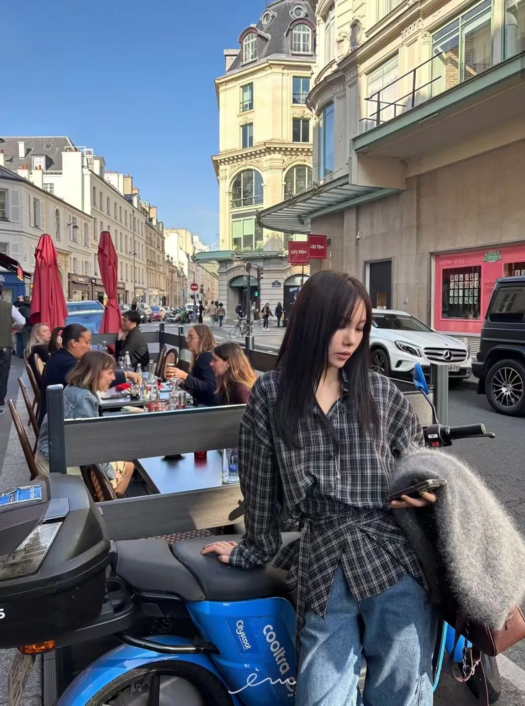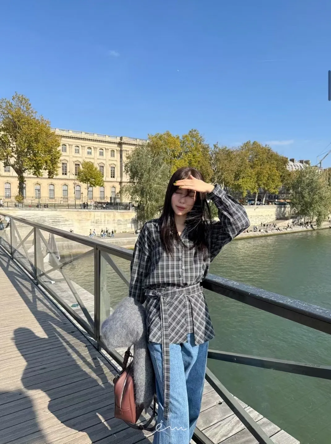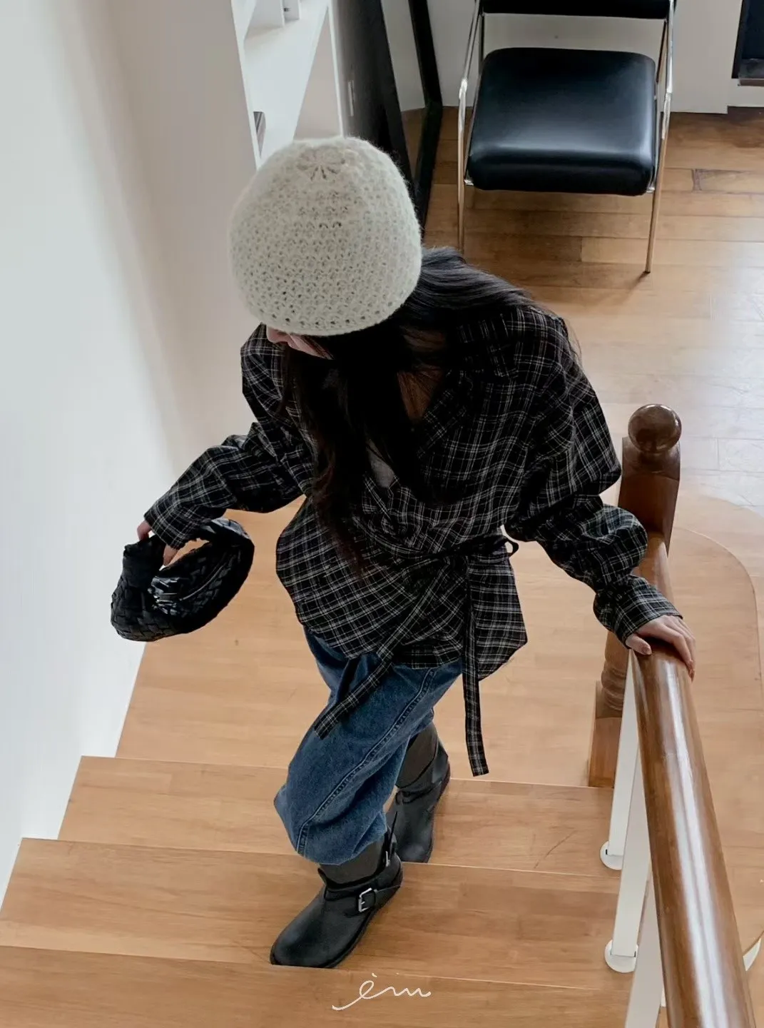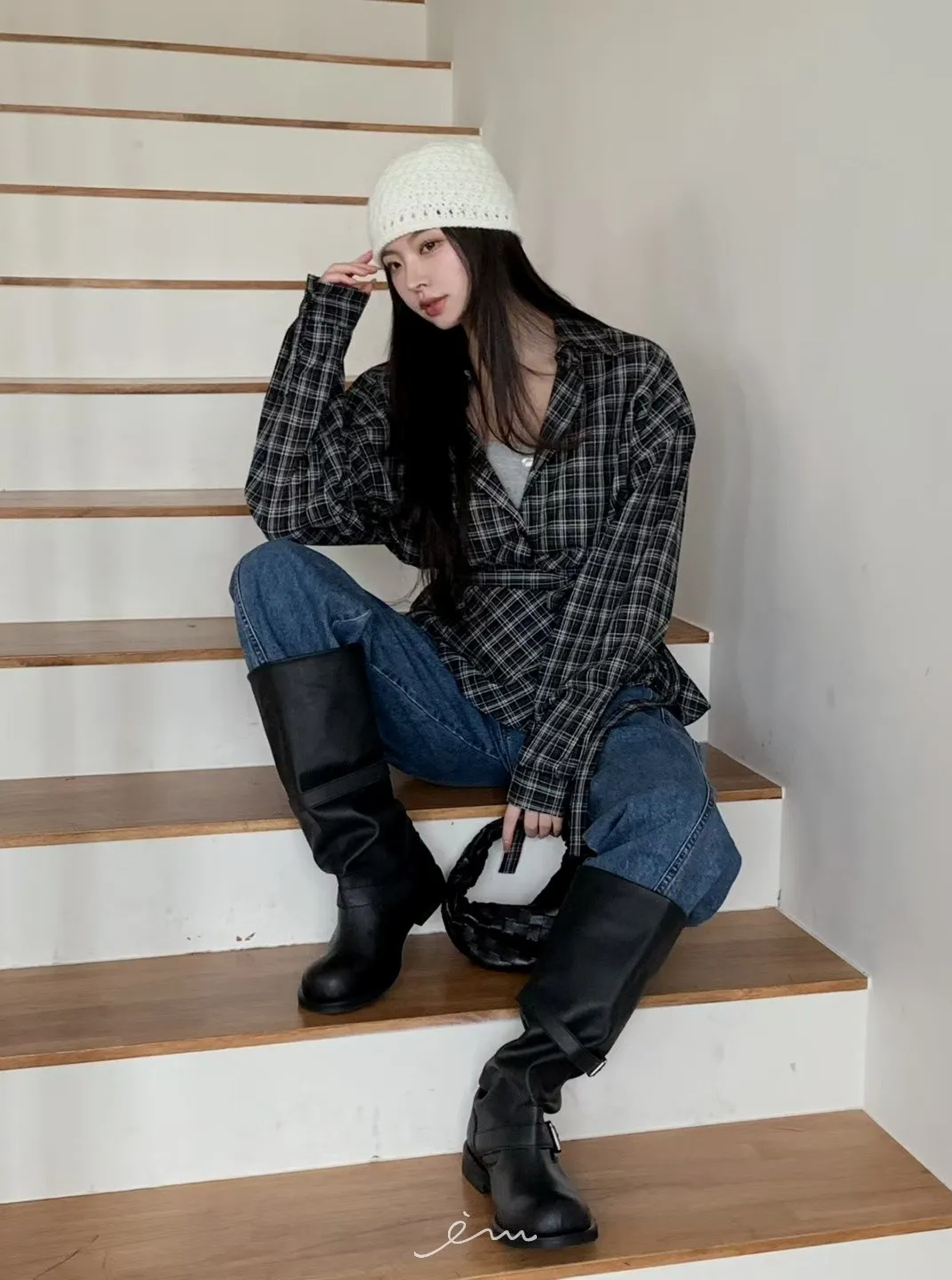MON綁腰屁簾+格紋襯衫