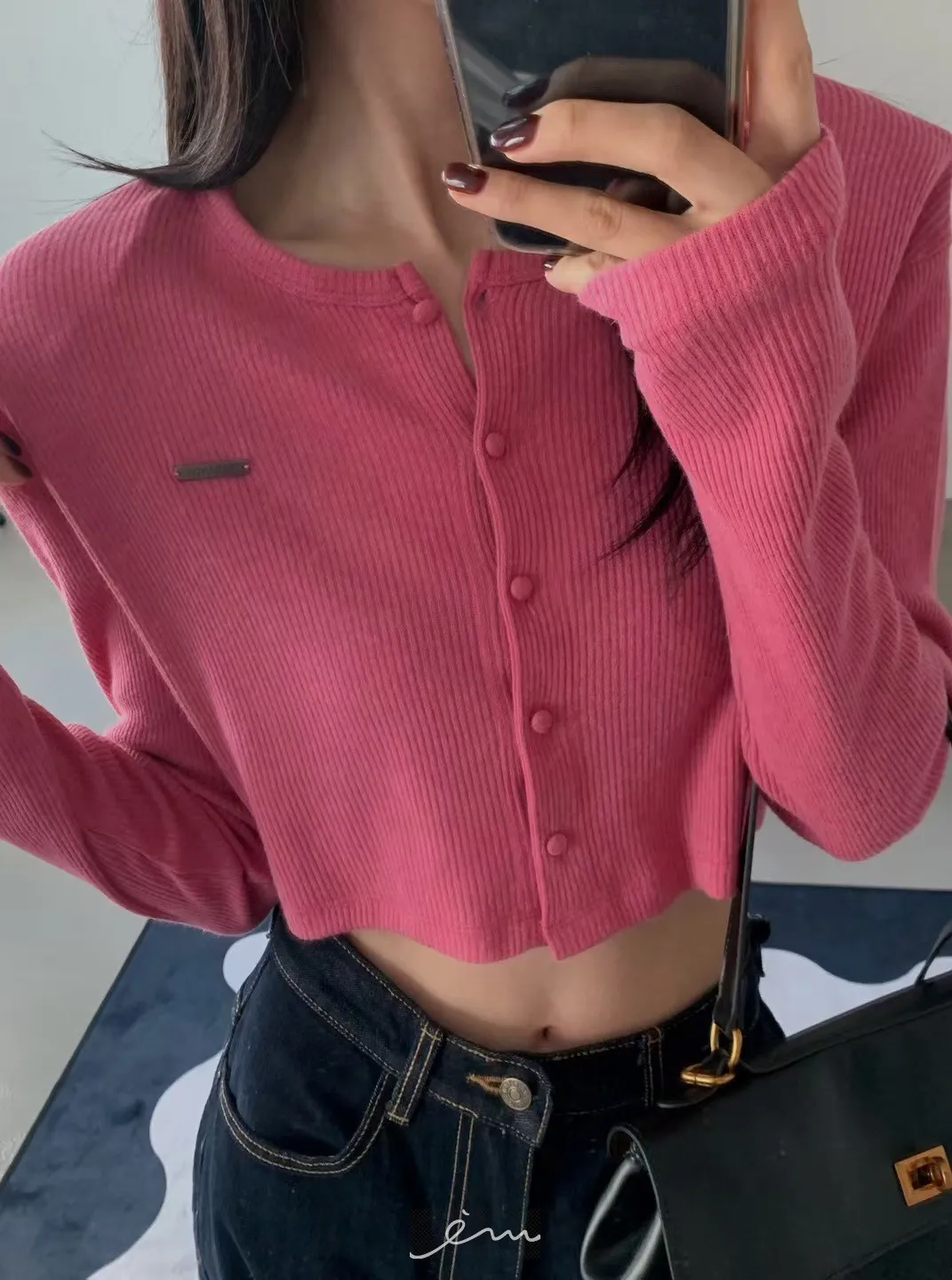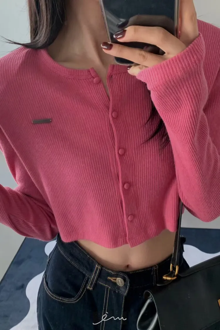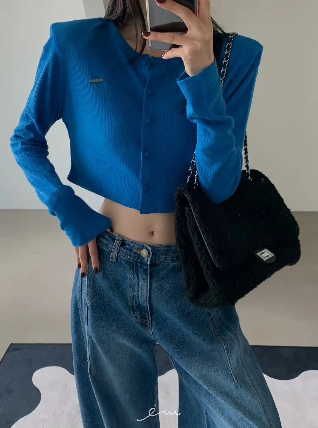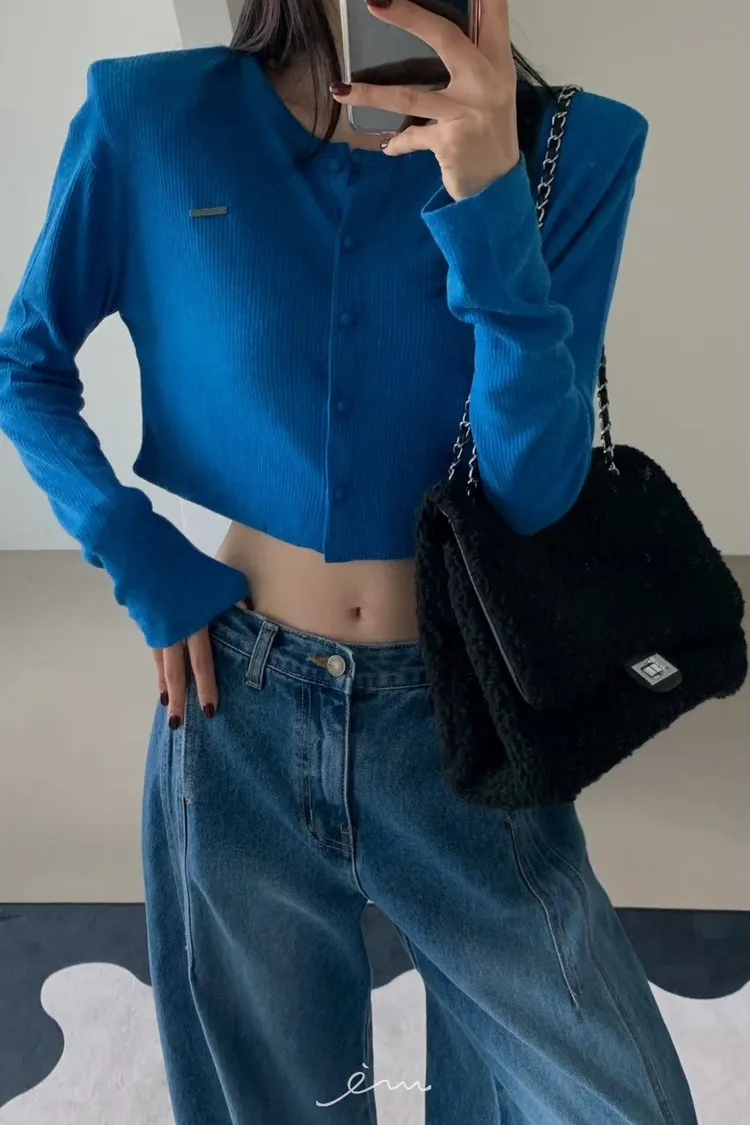 VE小鐵標墊肩短版包釦外套