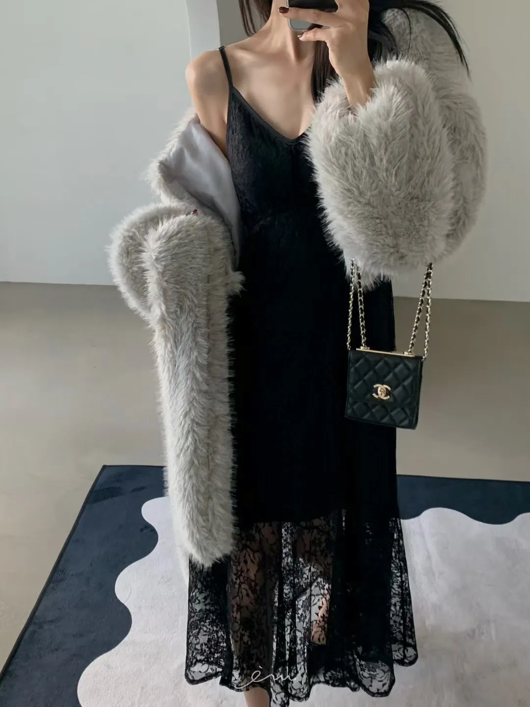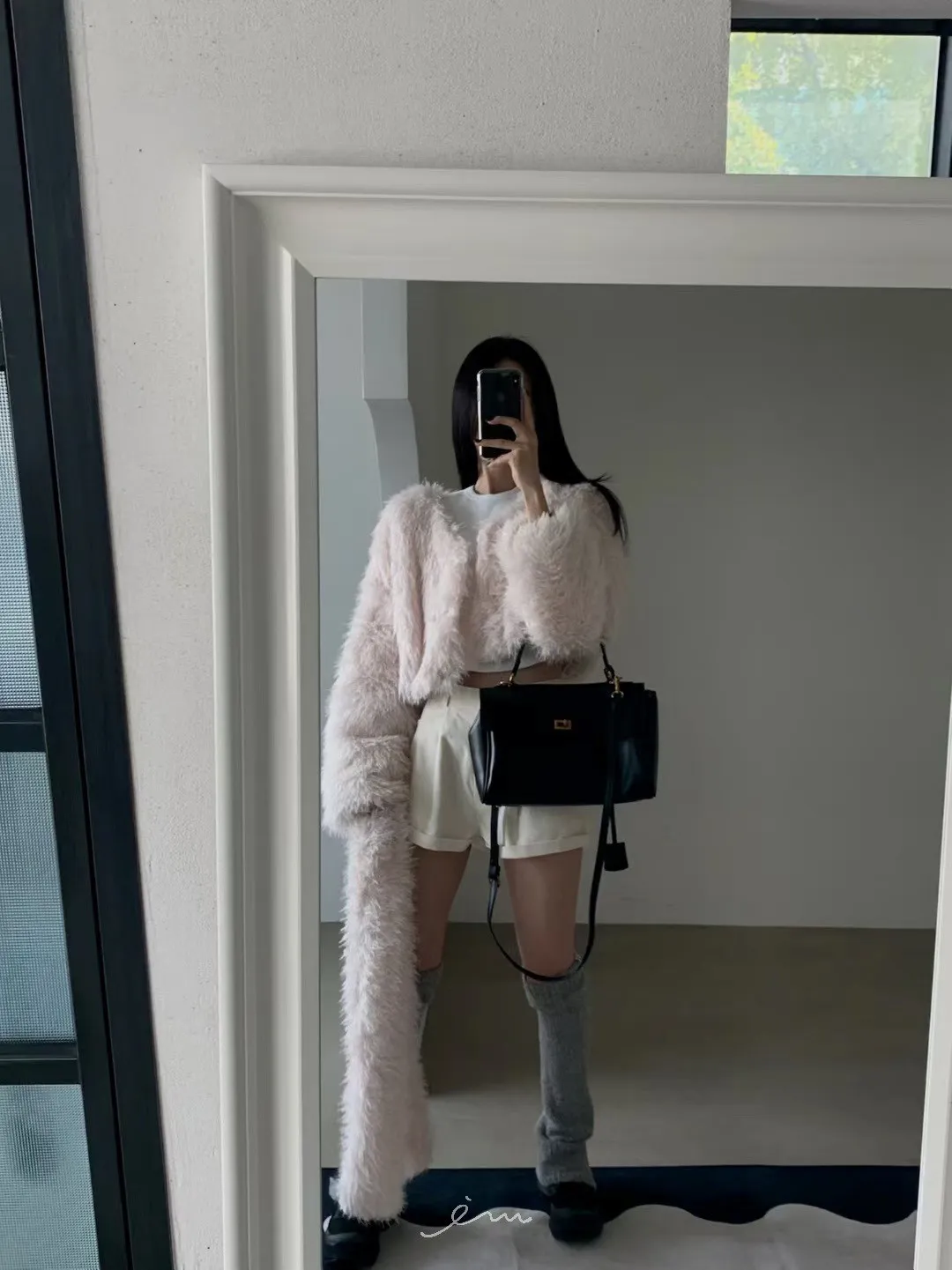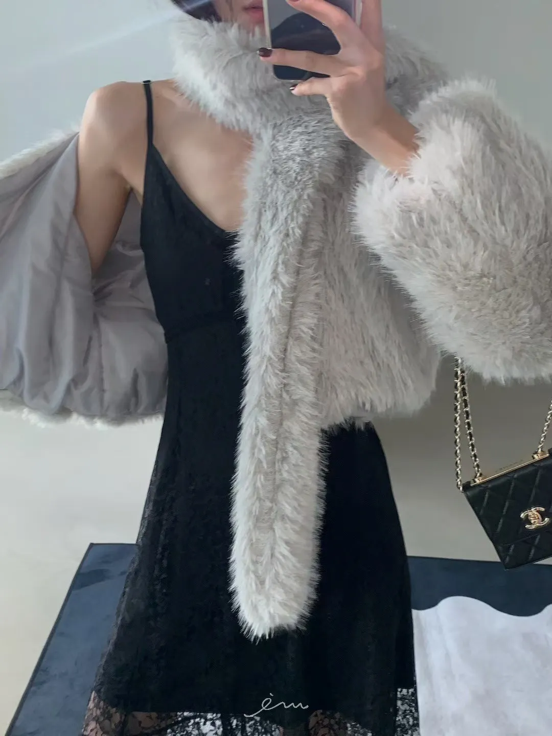 VE圍巾+毛毛短版外套