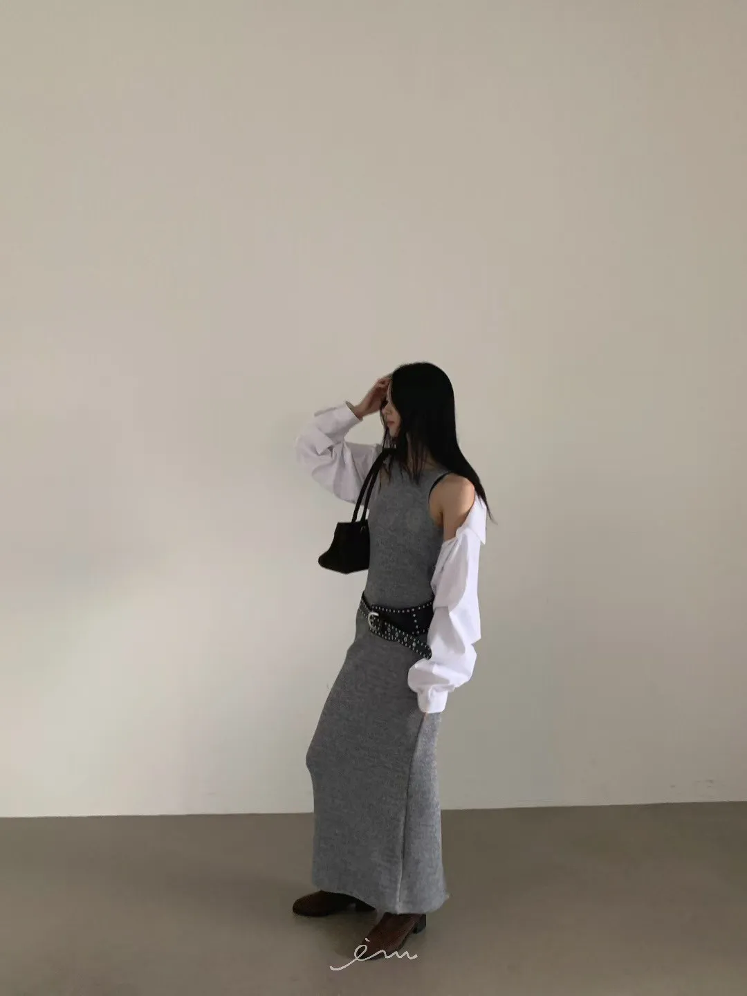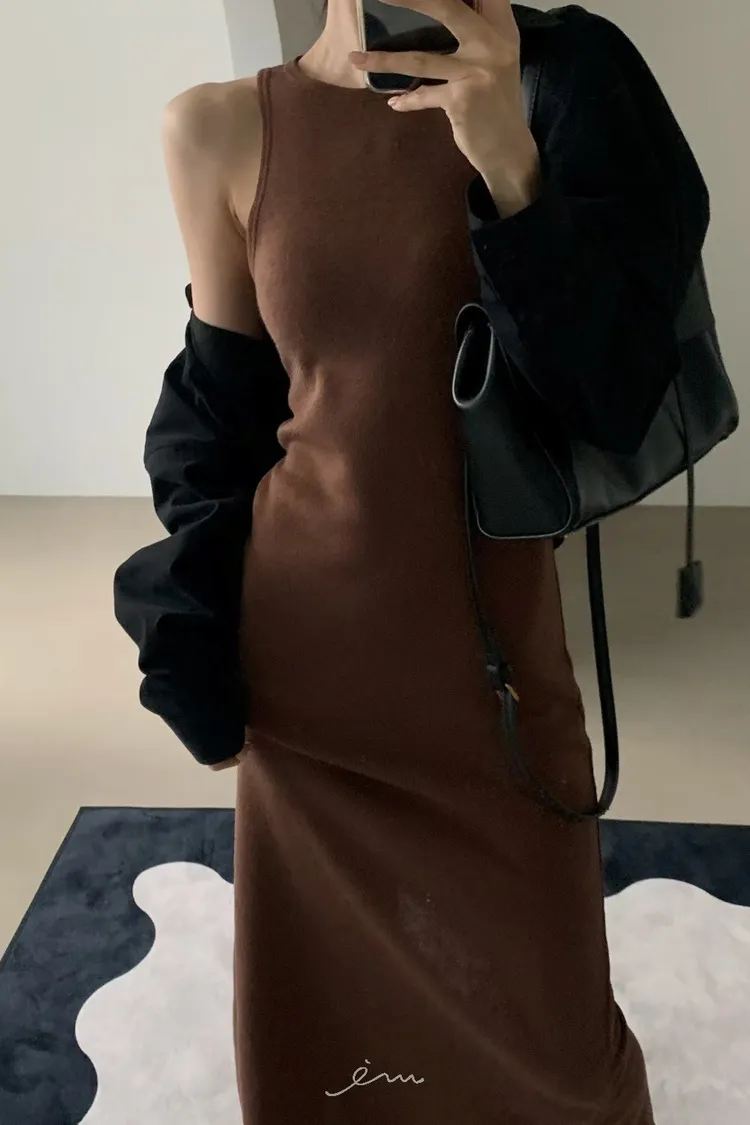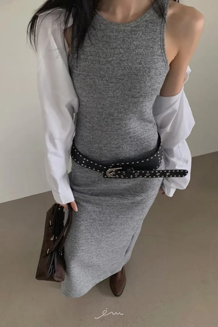 VE削肩感素面長洋