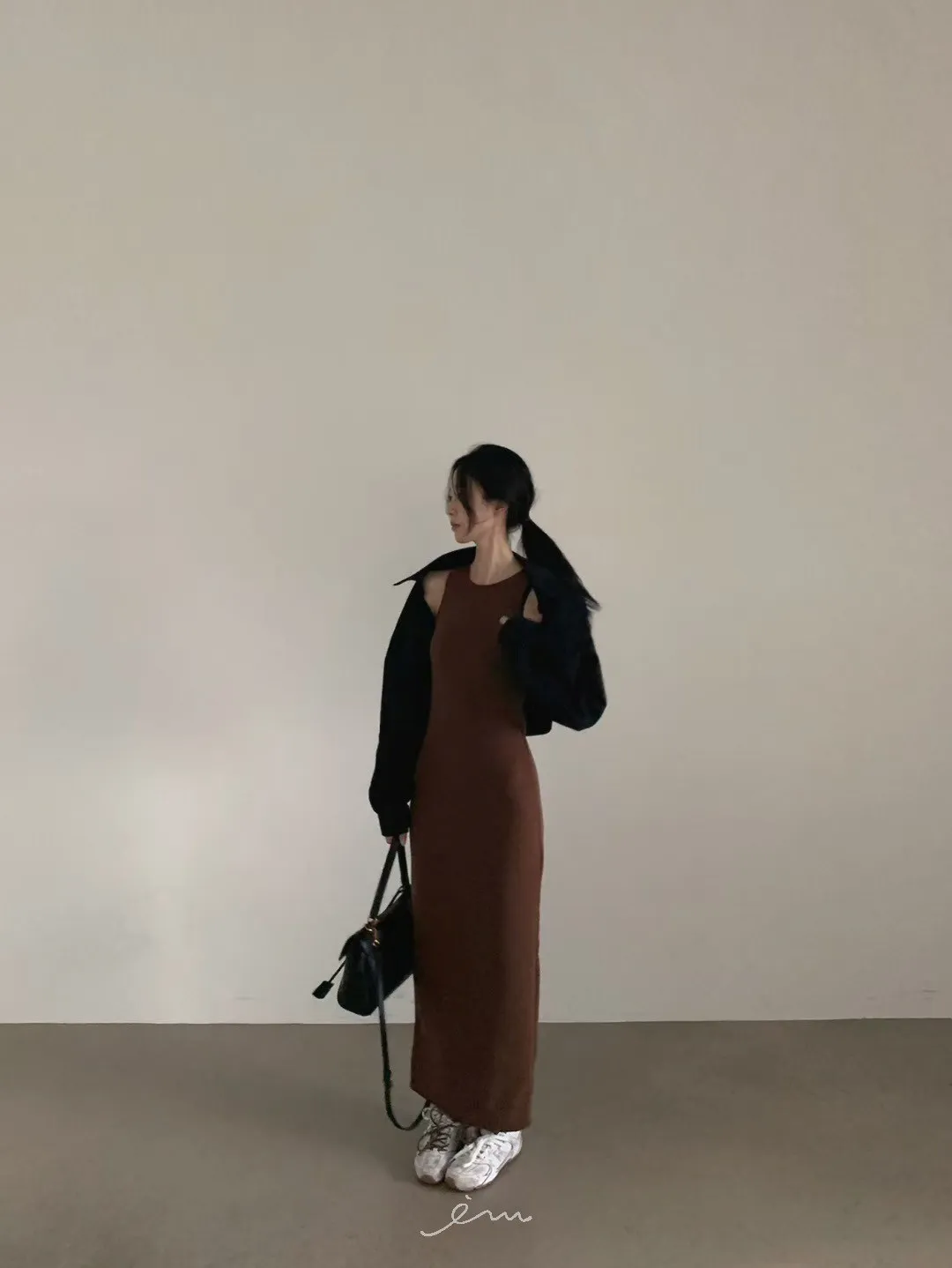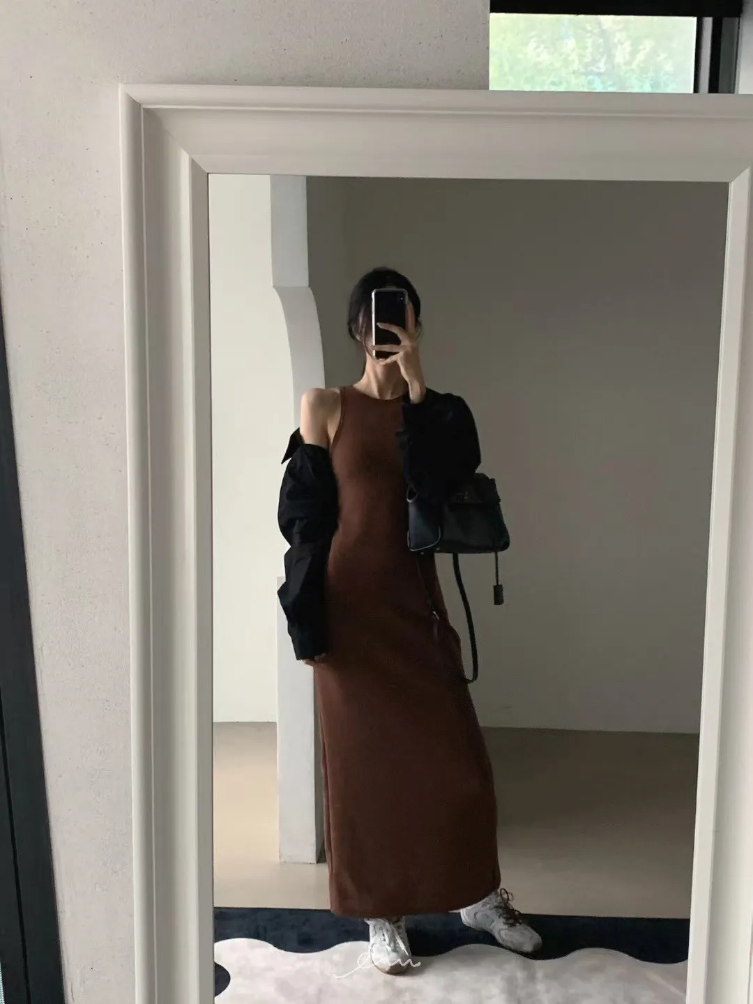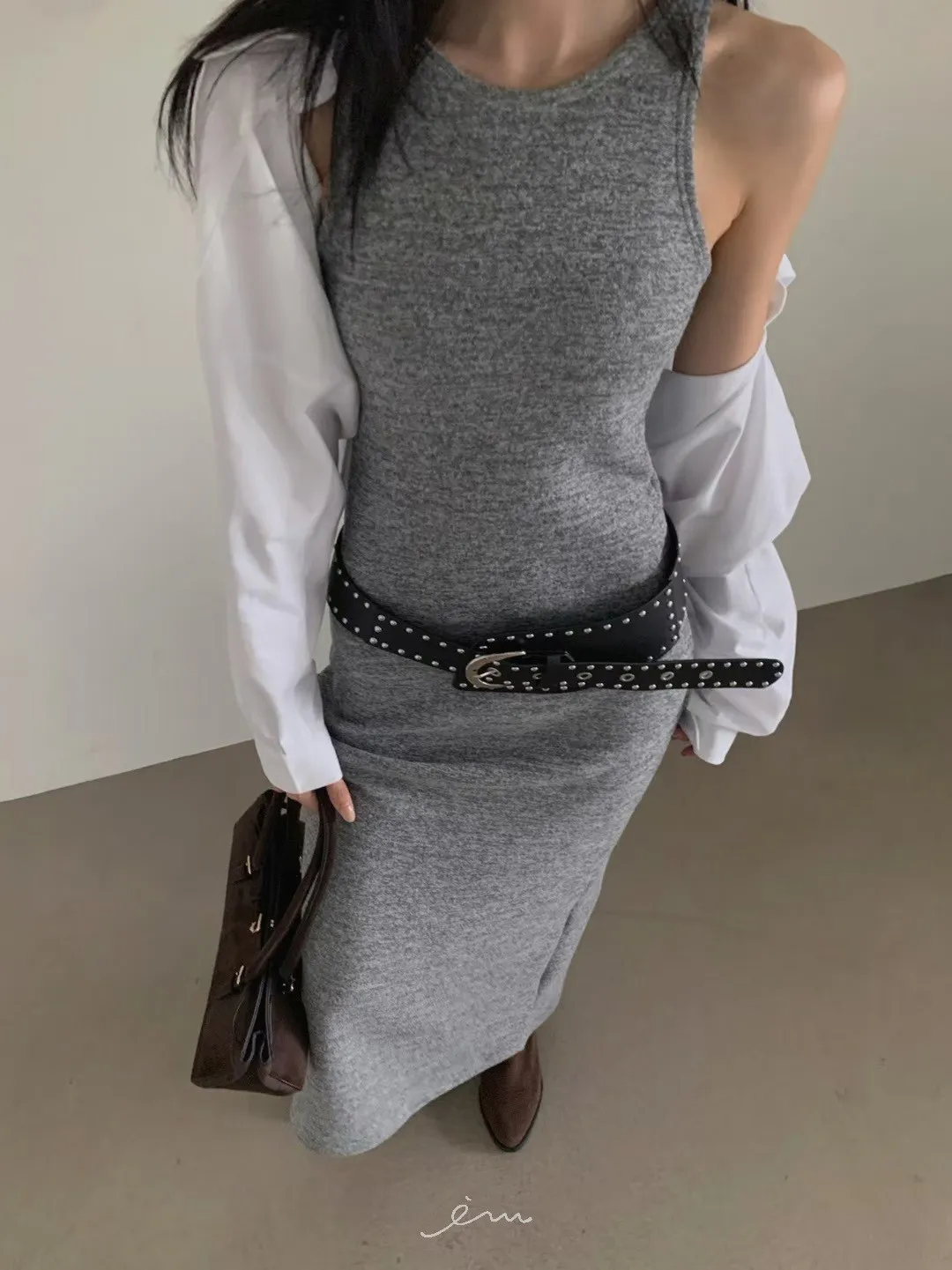 VE削肩感素面長洋