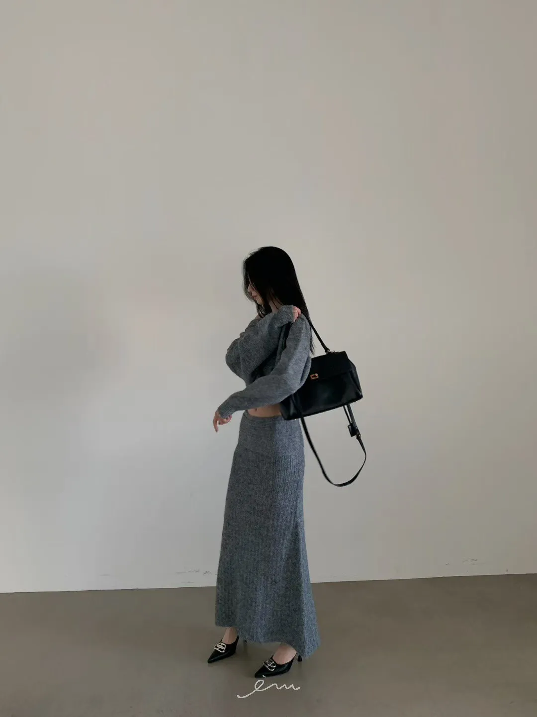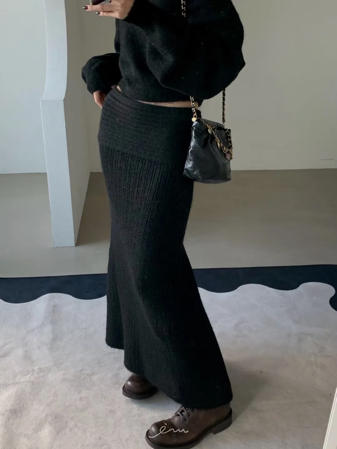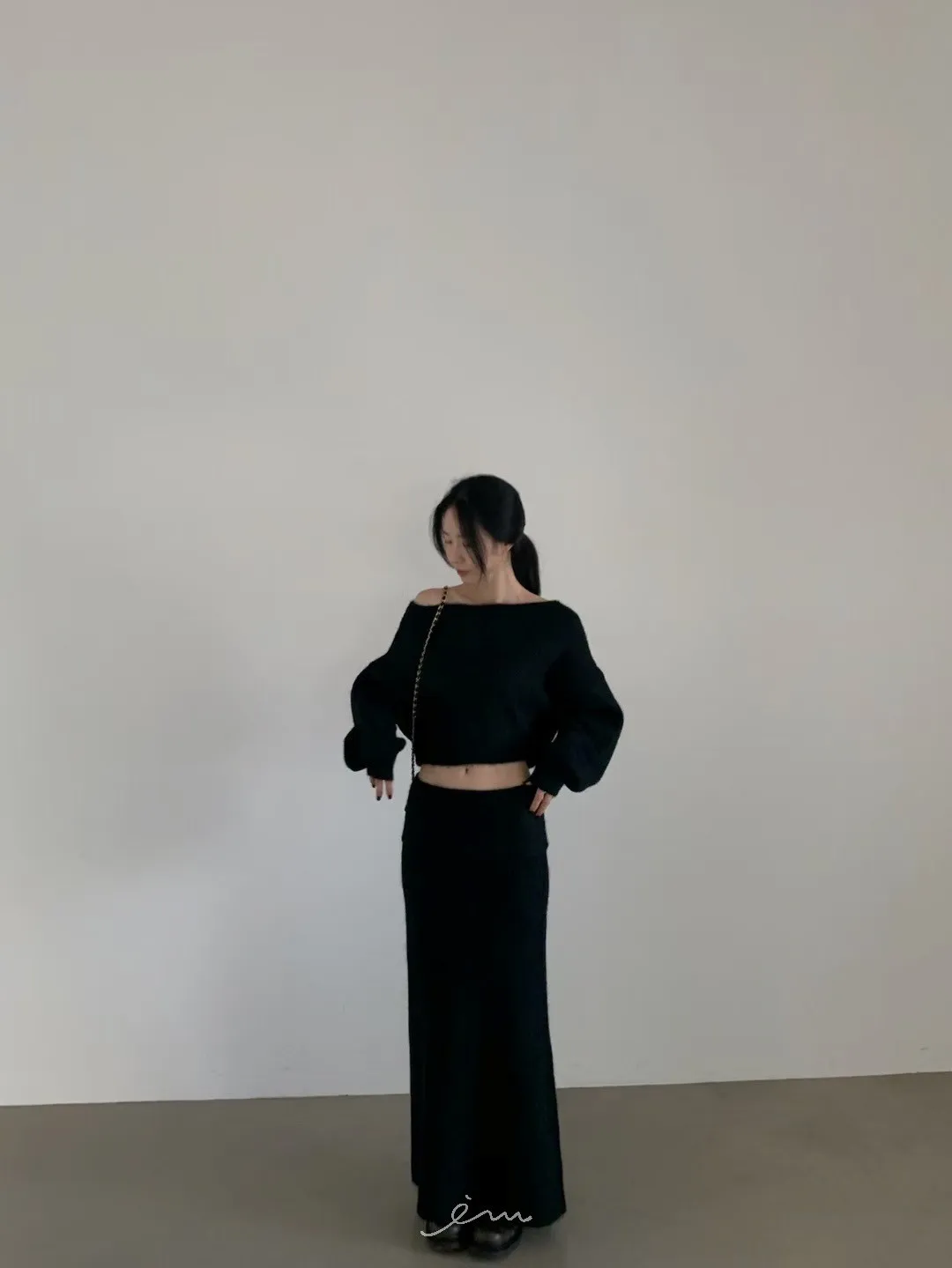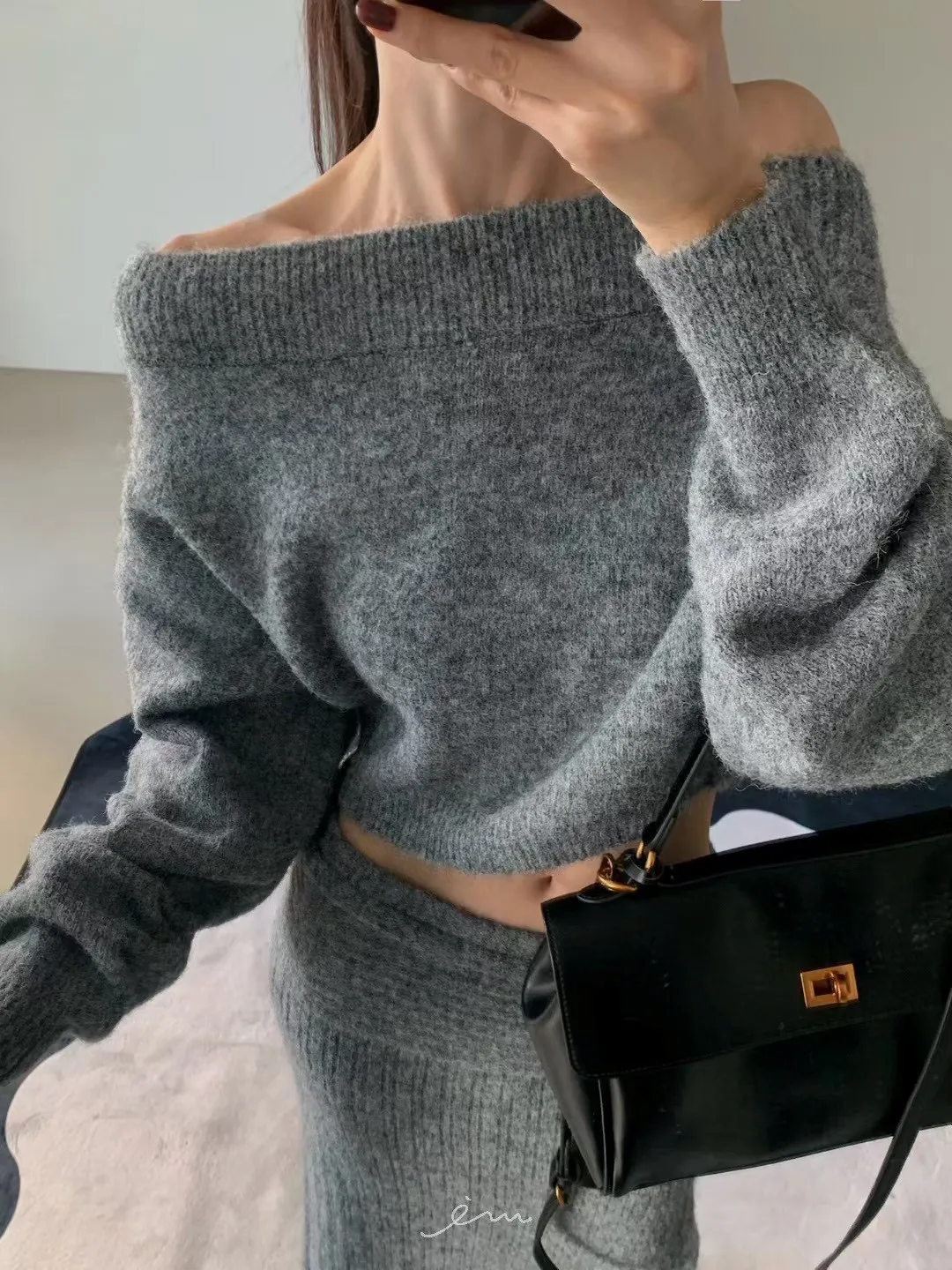 VE馬海毛斜肩上衣+反摺感長裙(套裝)
