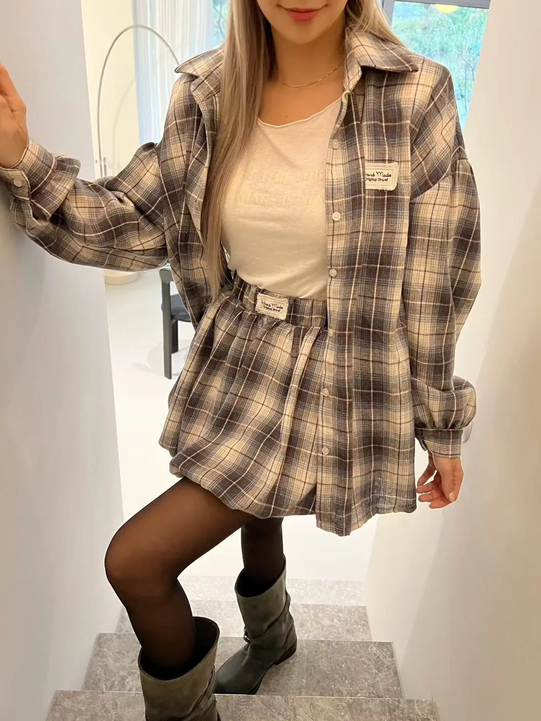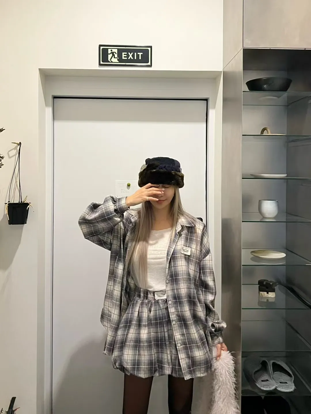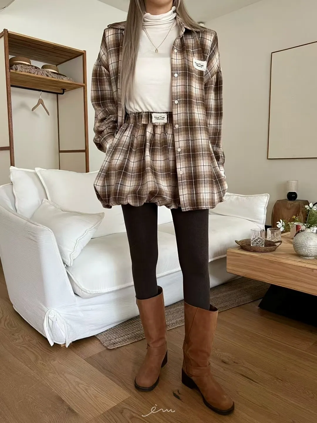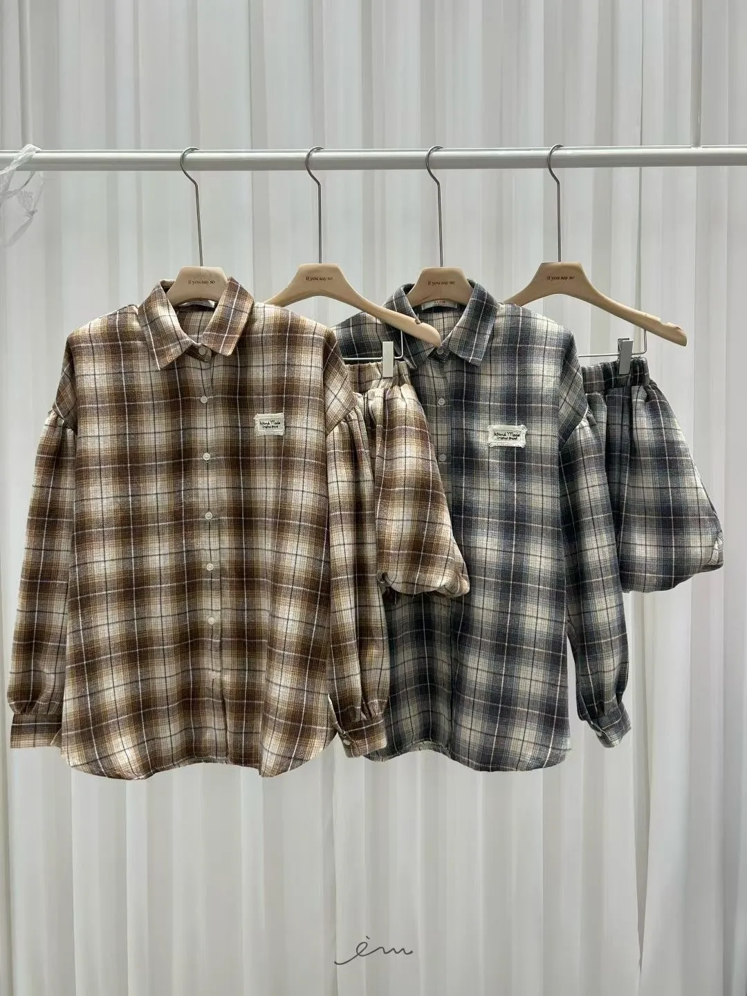 if小標格紋襯衫/褲頭標格紋南瓜褲