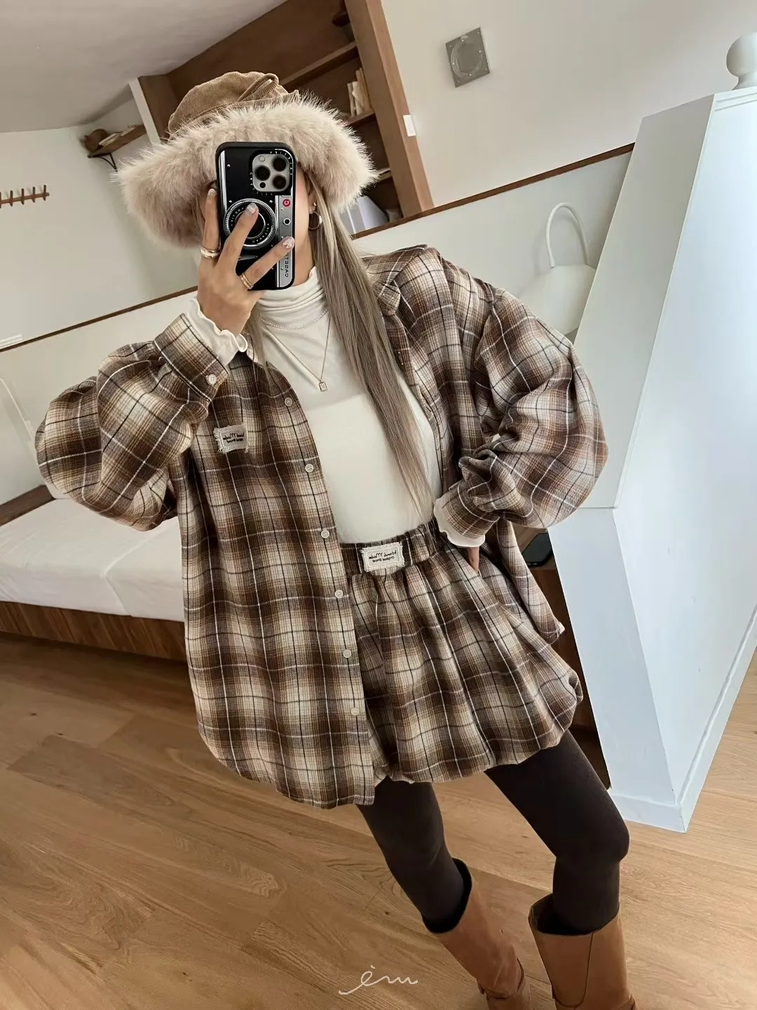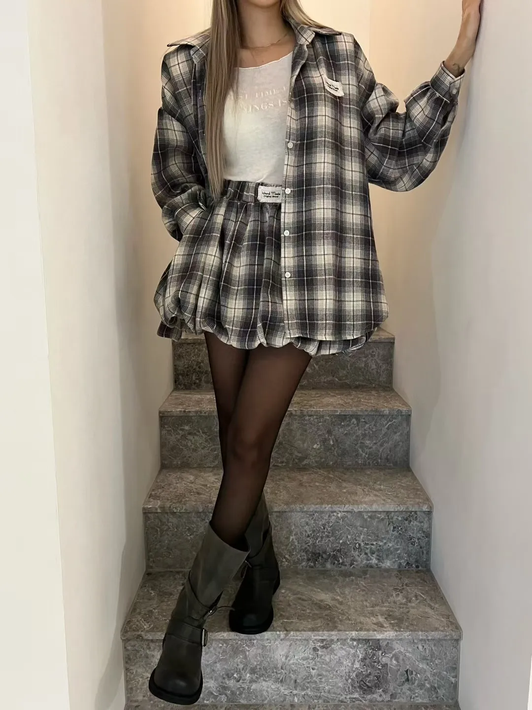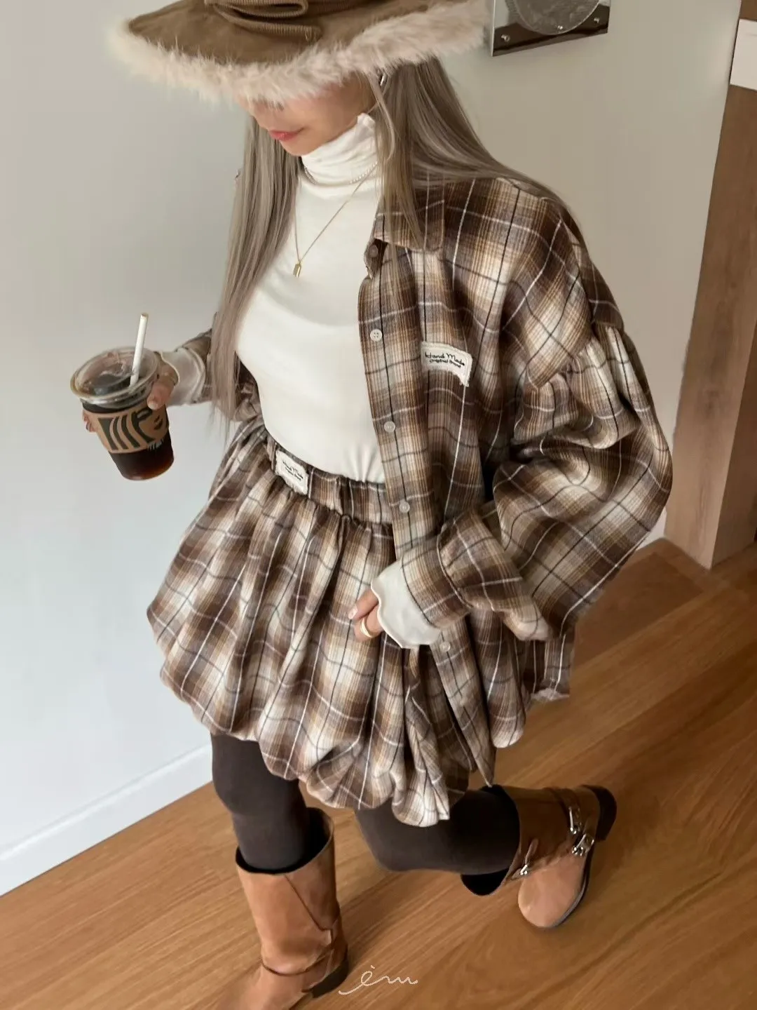 if小標格紋襯衫/褲頭標格紋南瓜褲