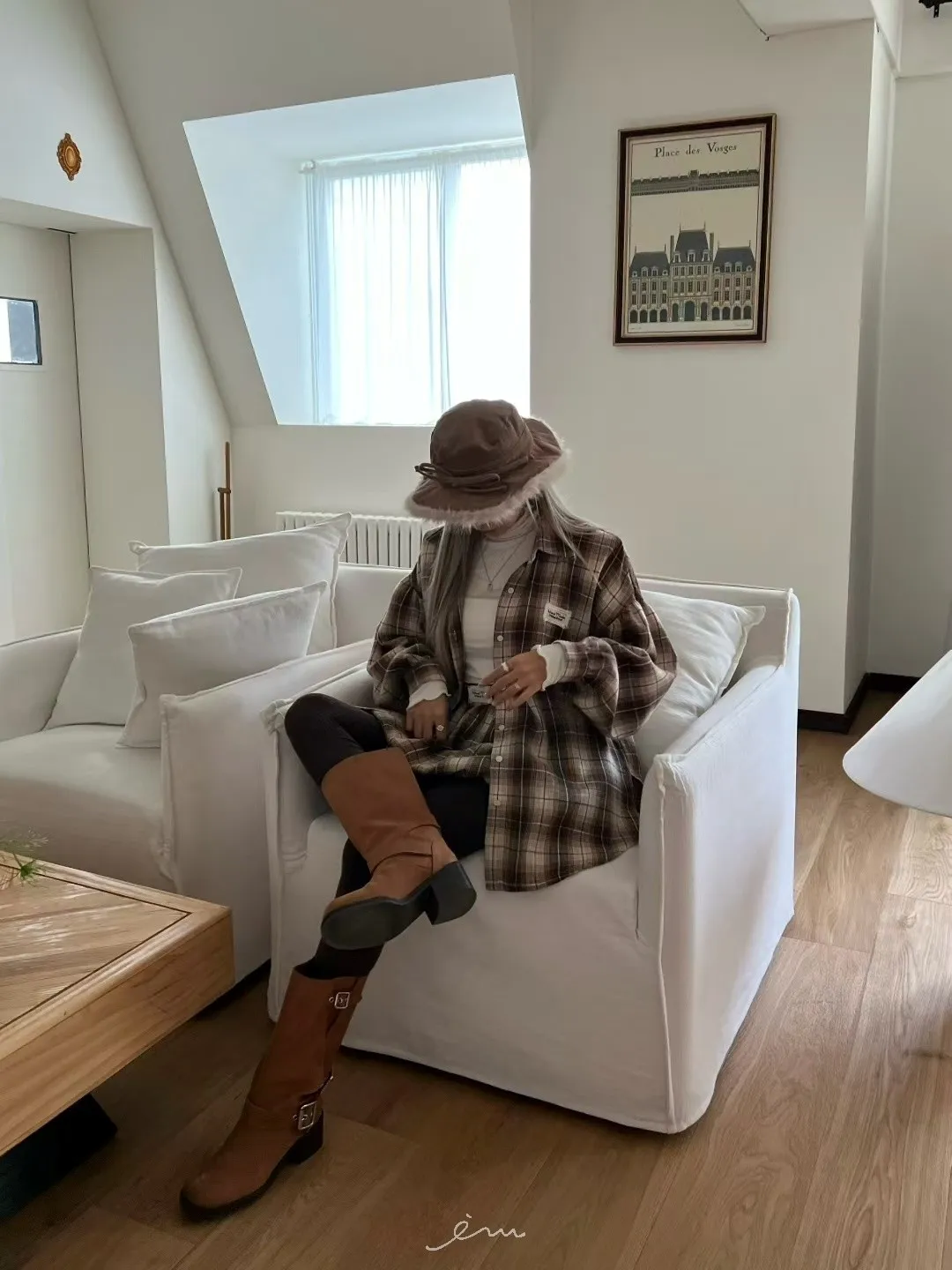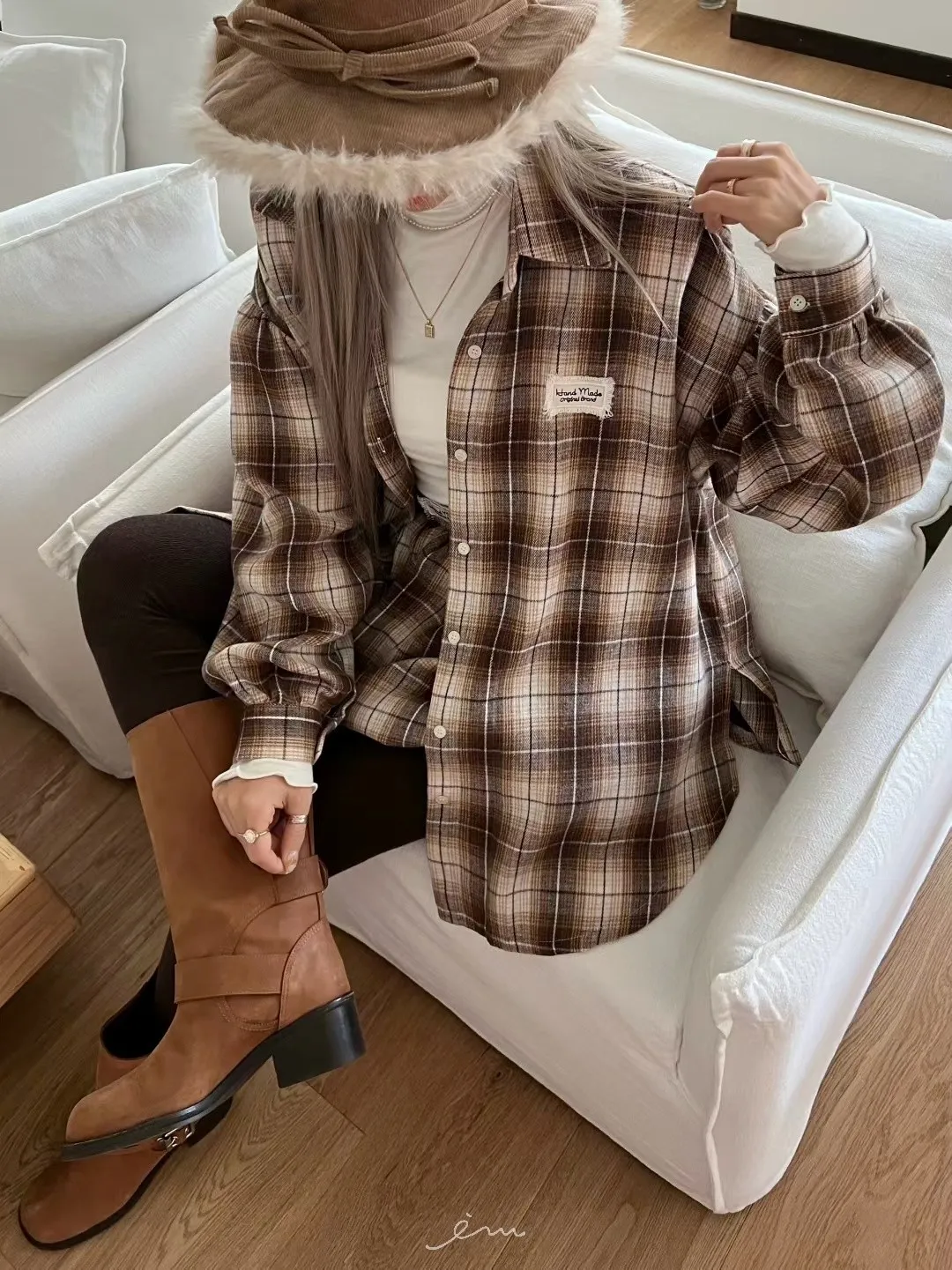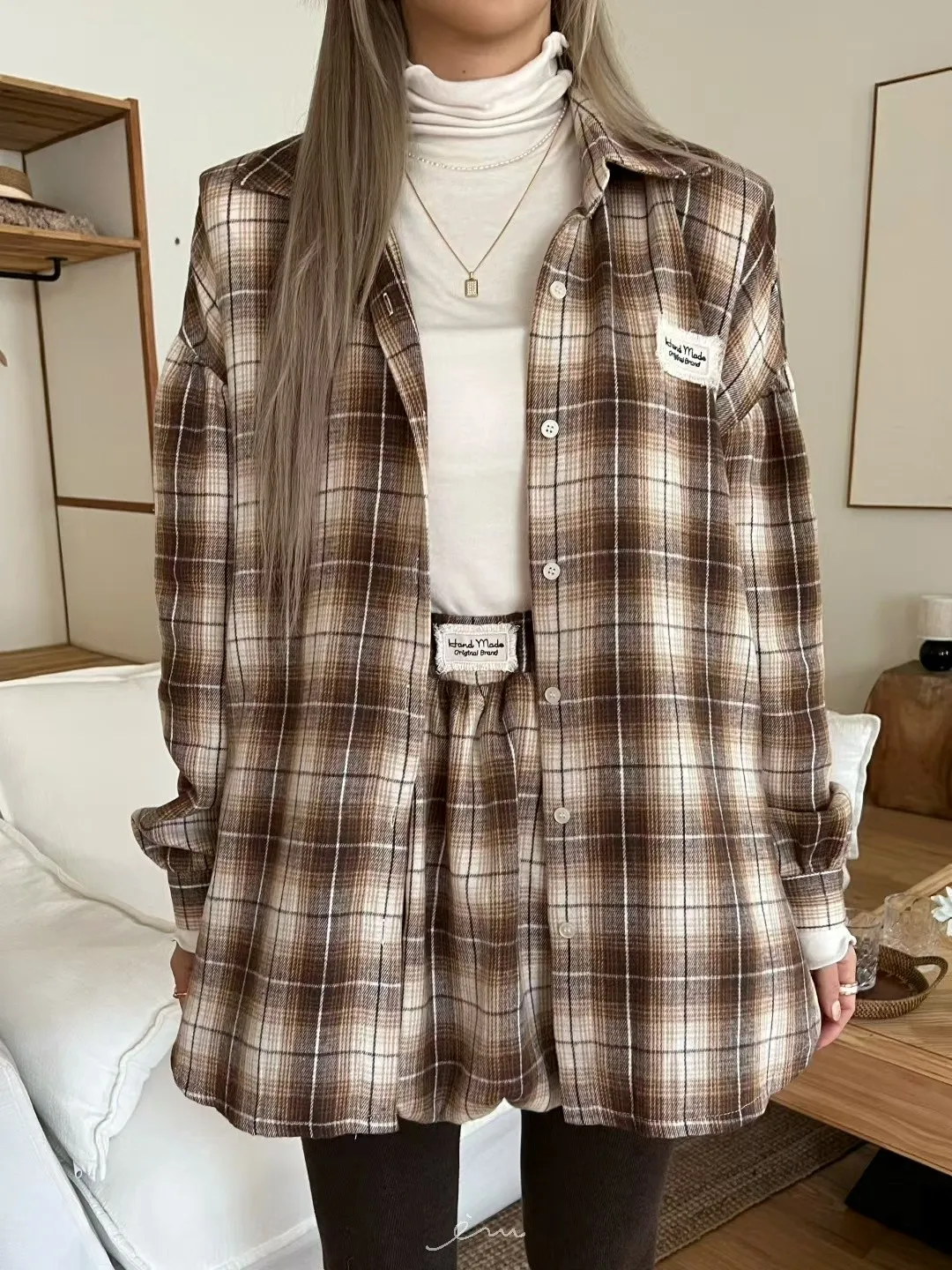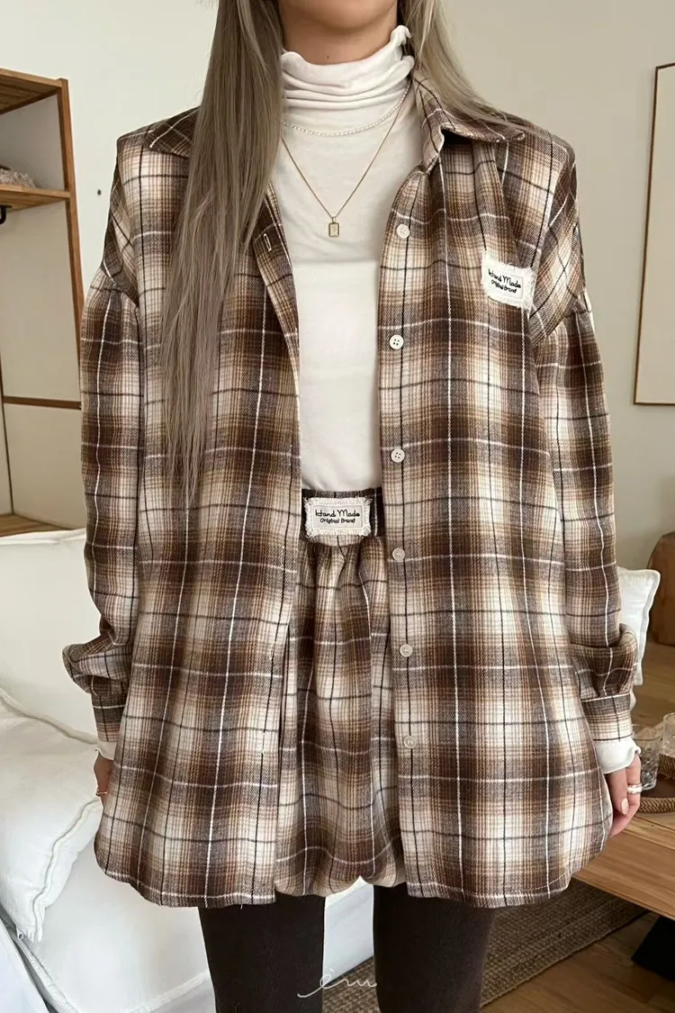 if小標格紋襯衫/褲頭標格紋南瓜褲