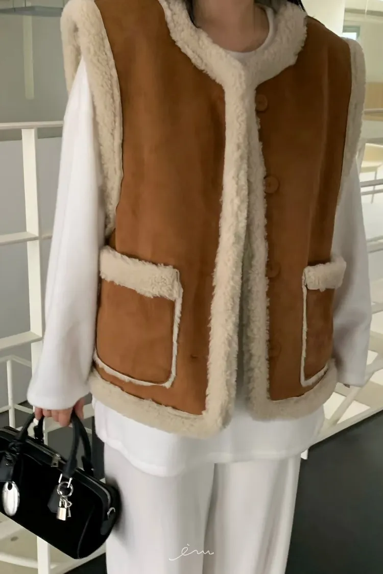 HO雙口袋鈕釦背心(羊毛30%)