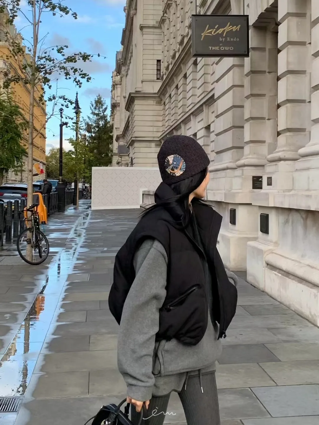 HO拉鍊口袋下可縮背心(鴨絨90%)