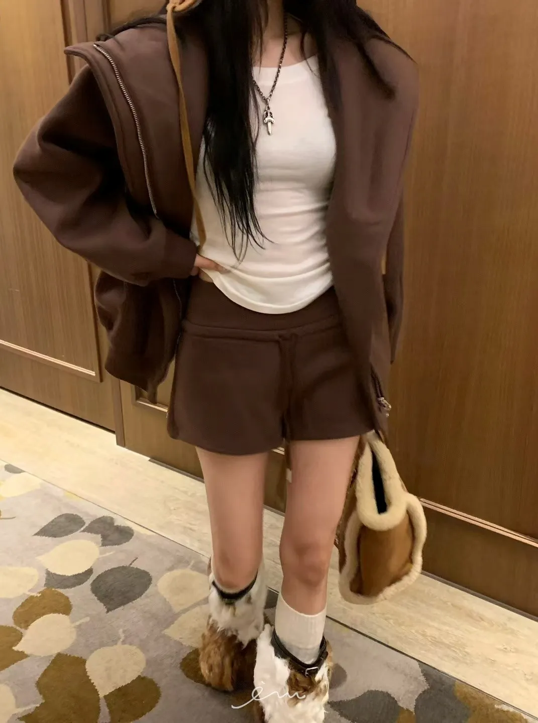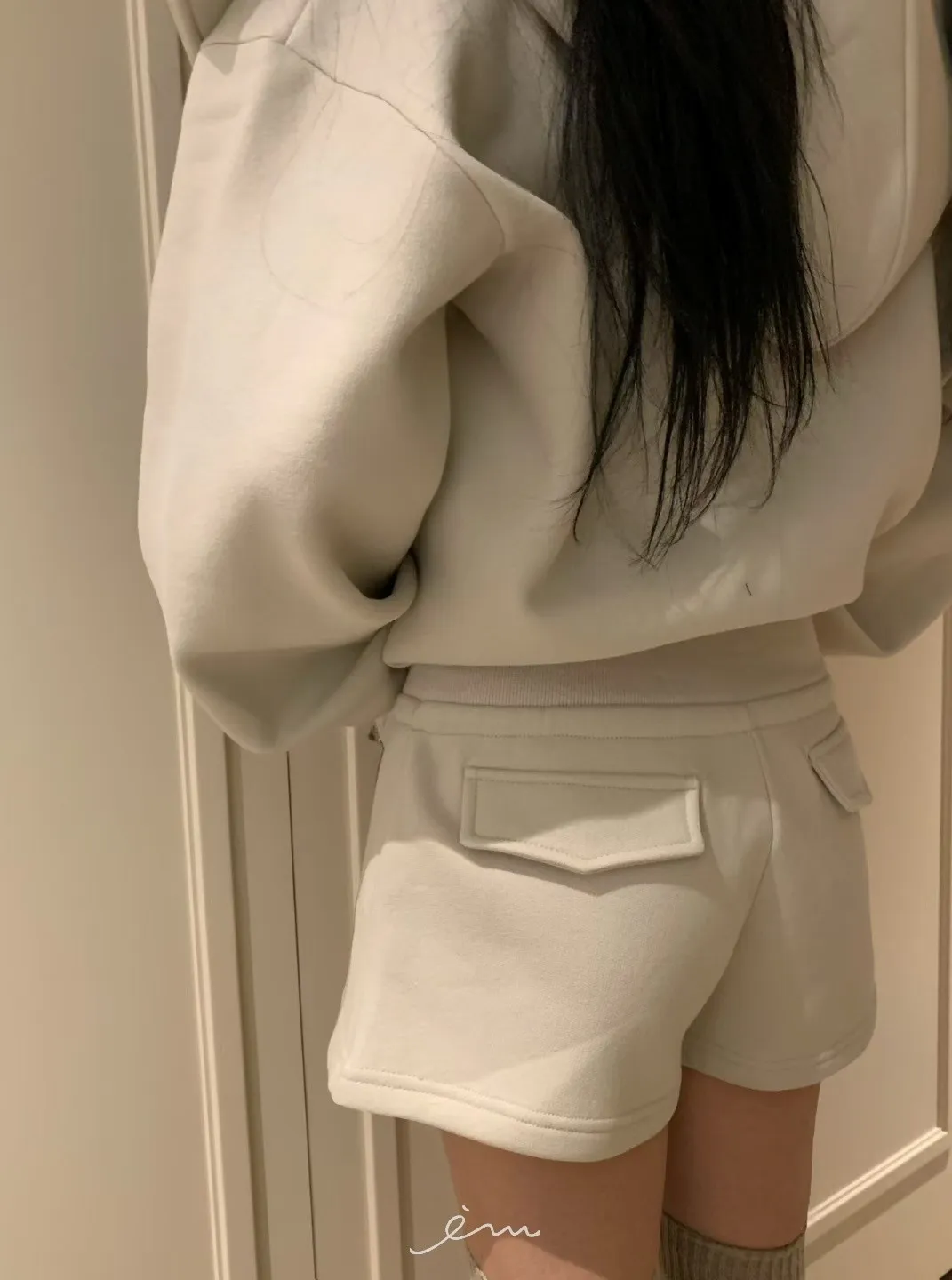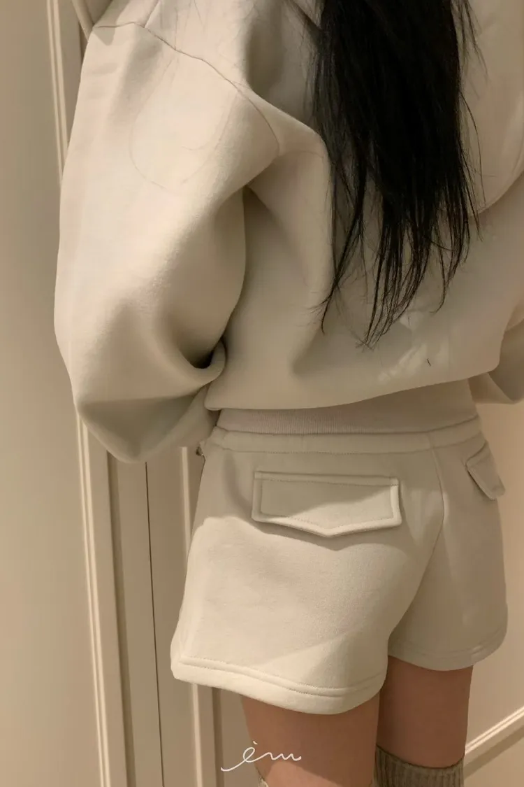 VK寬版褲頭抽繩刷毛短褲(肉0清單)