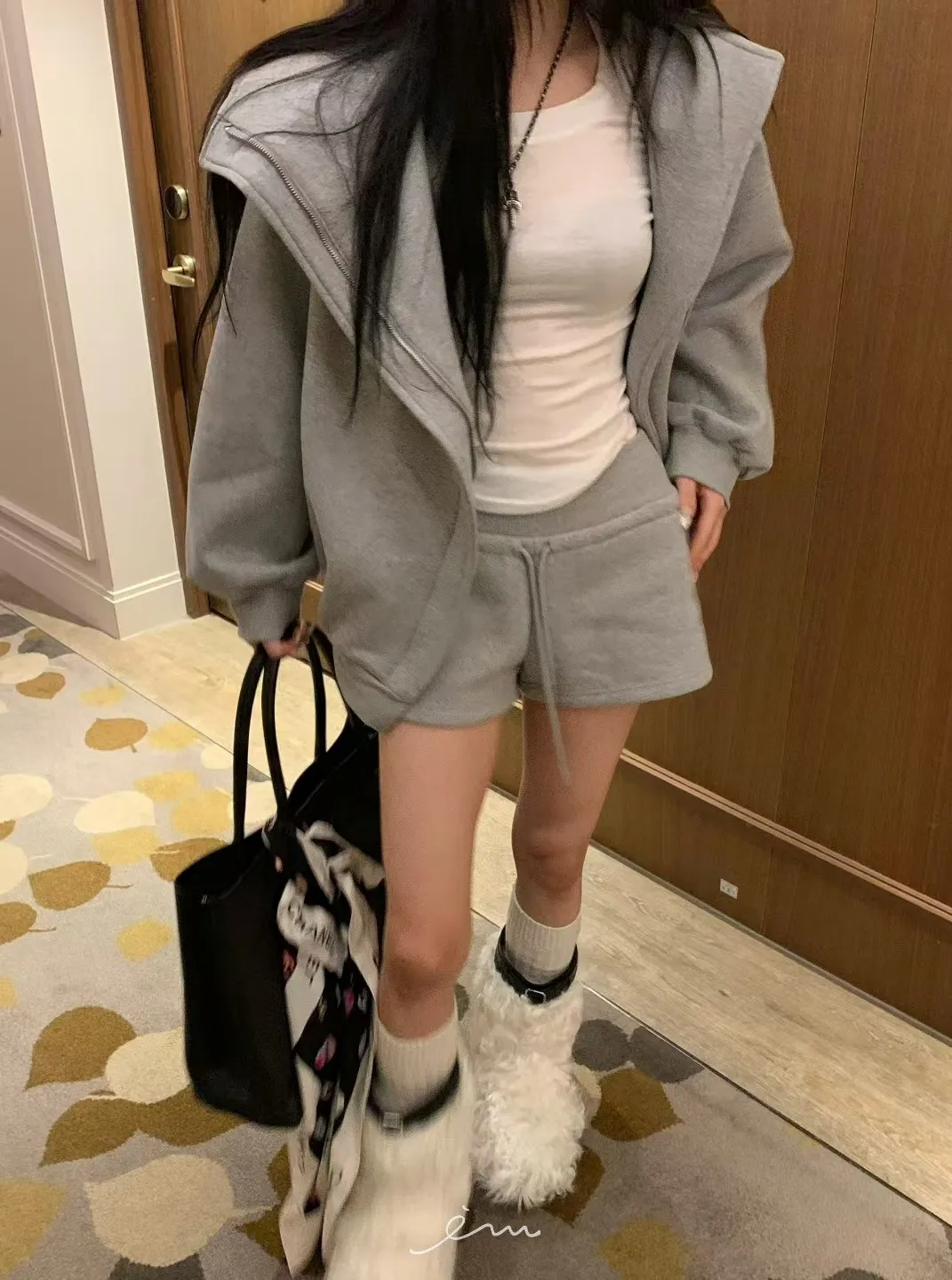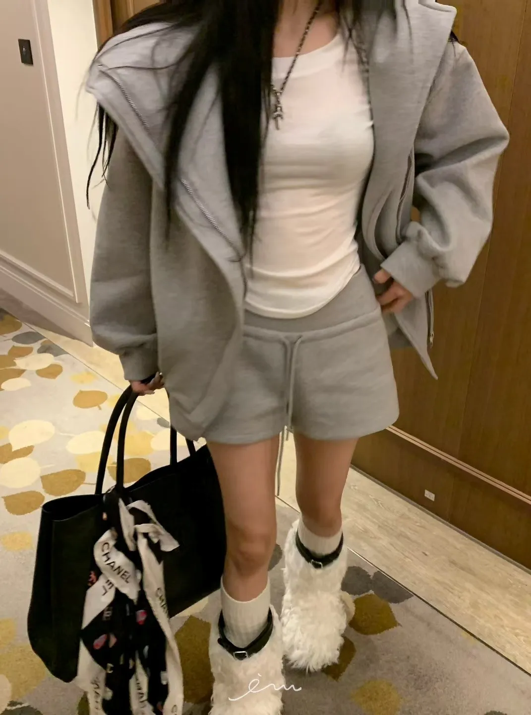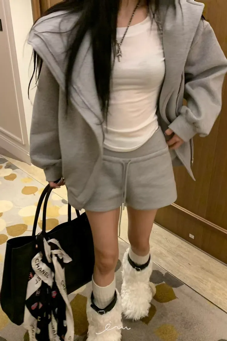 VK寬版褲頭抽繩刷毛短褲(肉0清單)