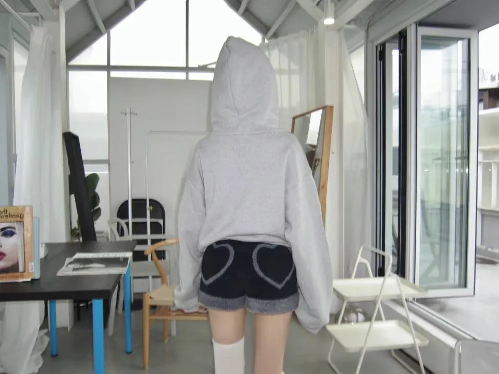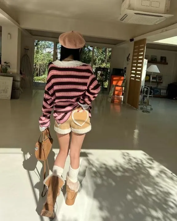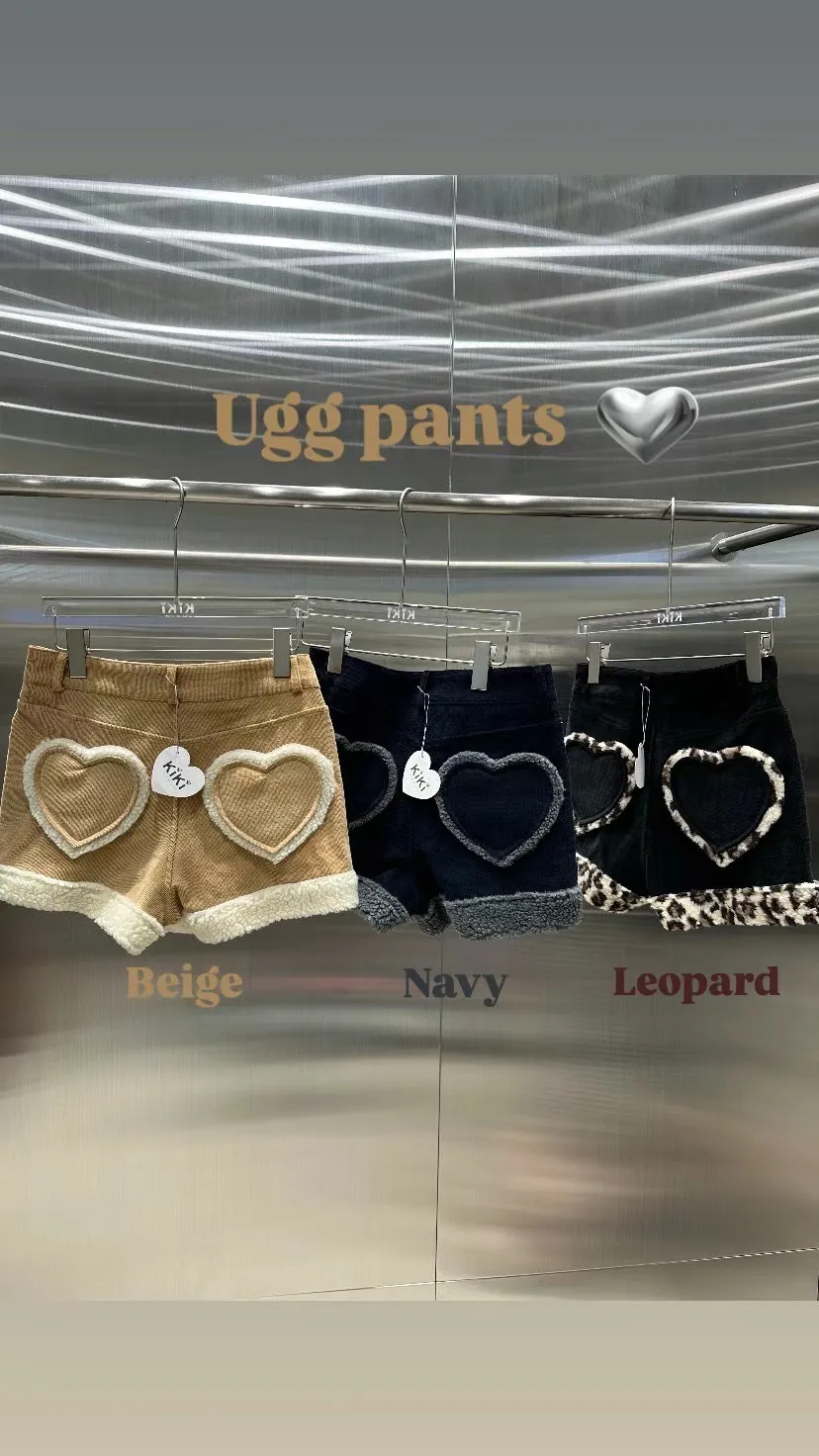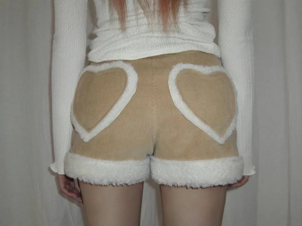 後愛心口袋拼QQ毛短褲