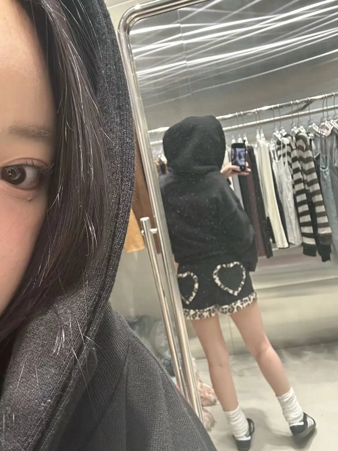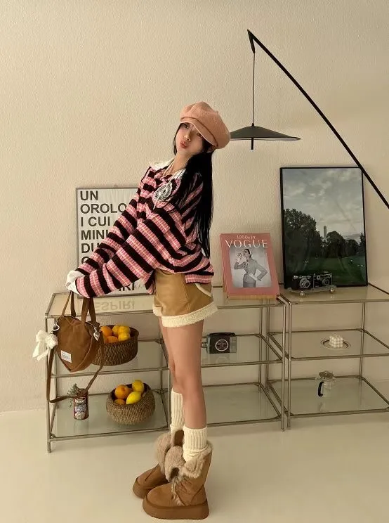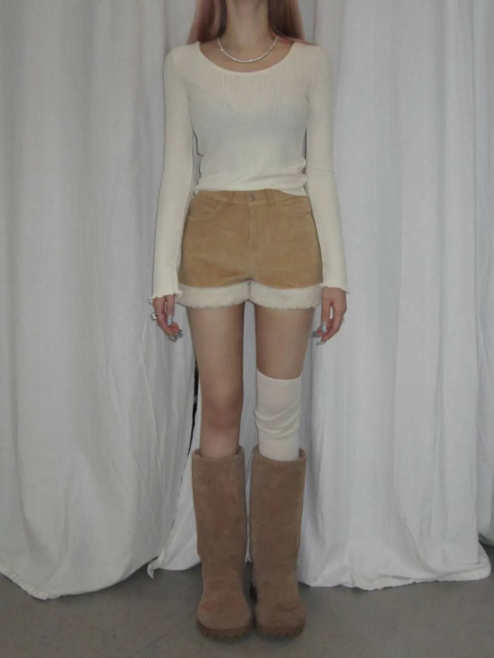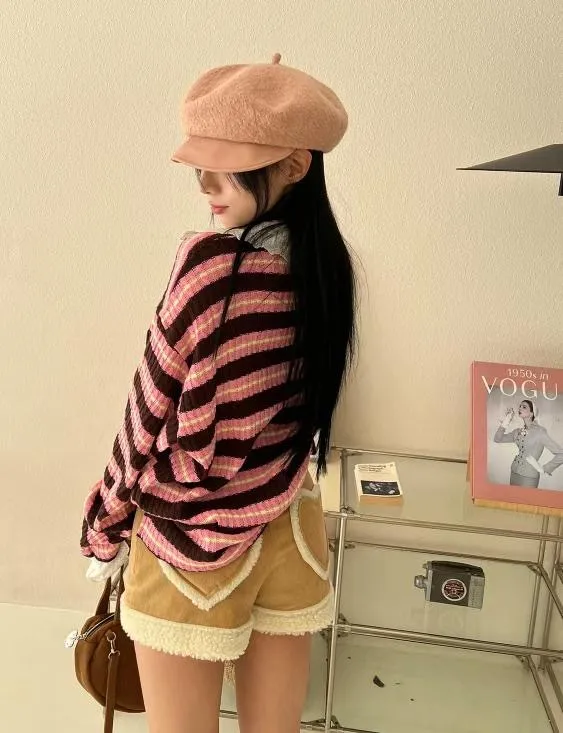 後愛心口袋拼QQ毛短褲