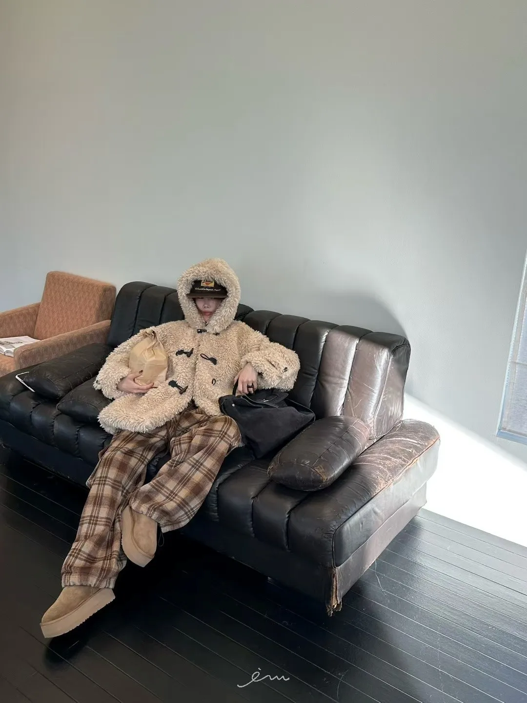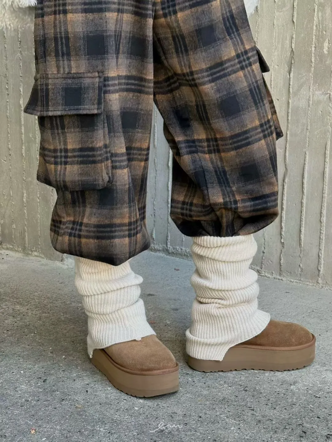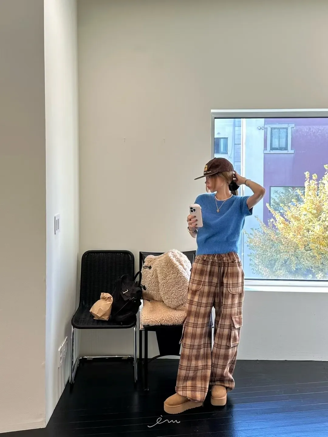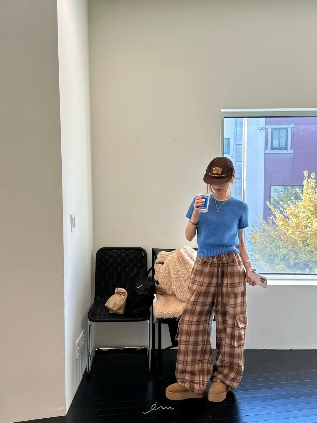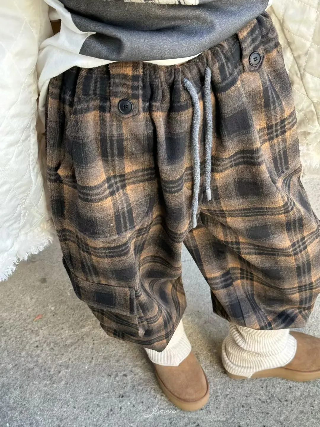 ZERO羊毛褲頭鈕釦抽繩格紋長褲(羊毛)