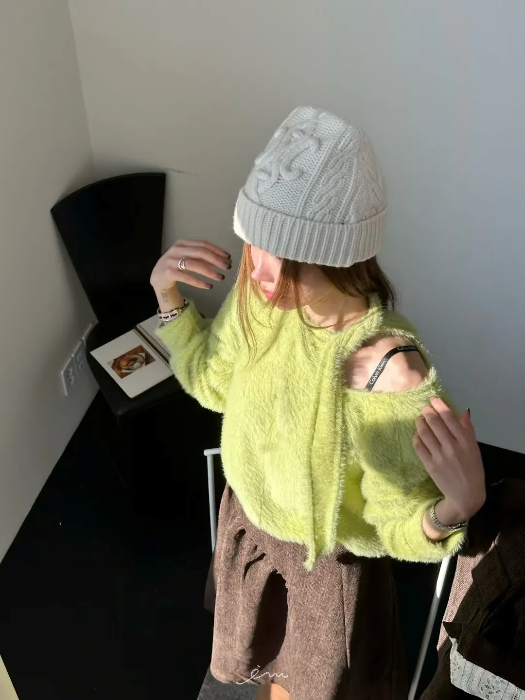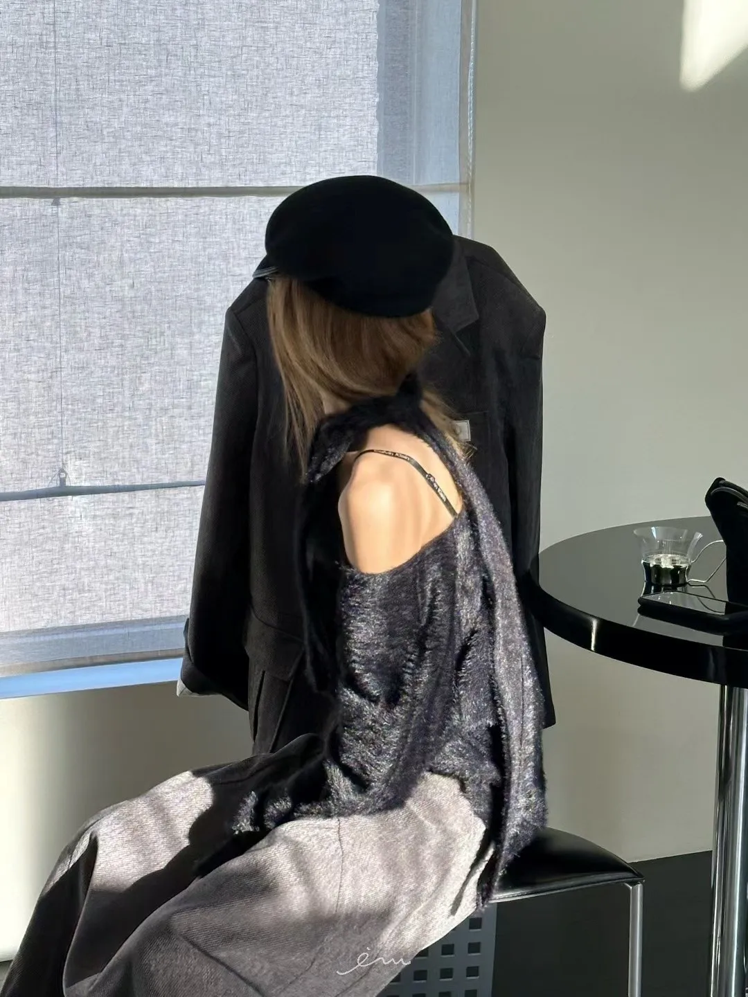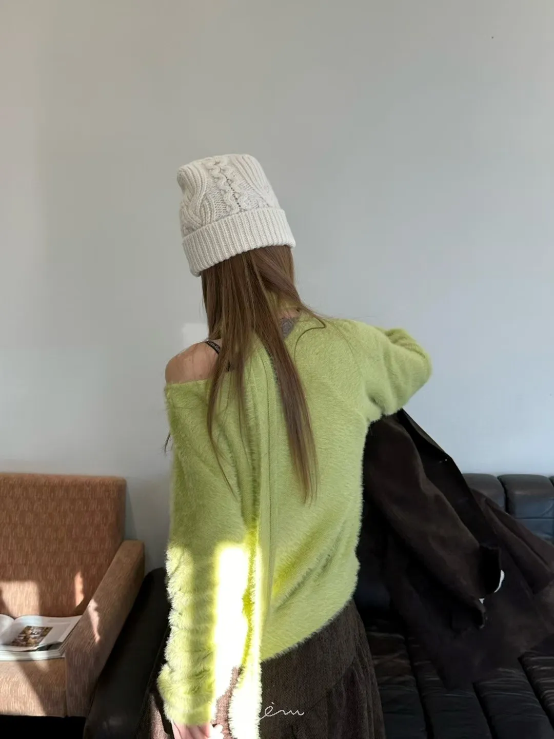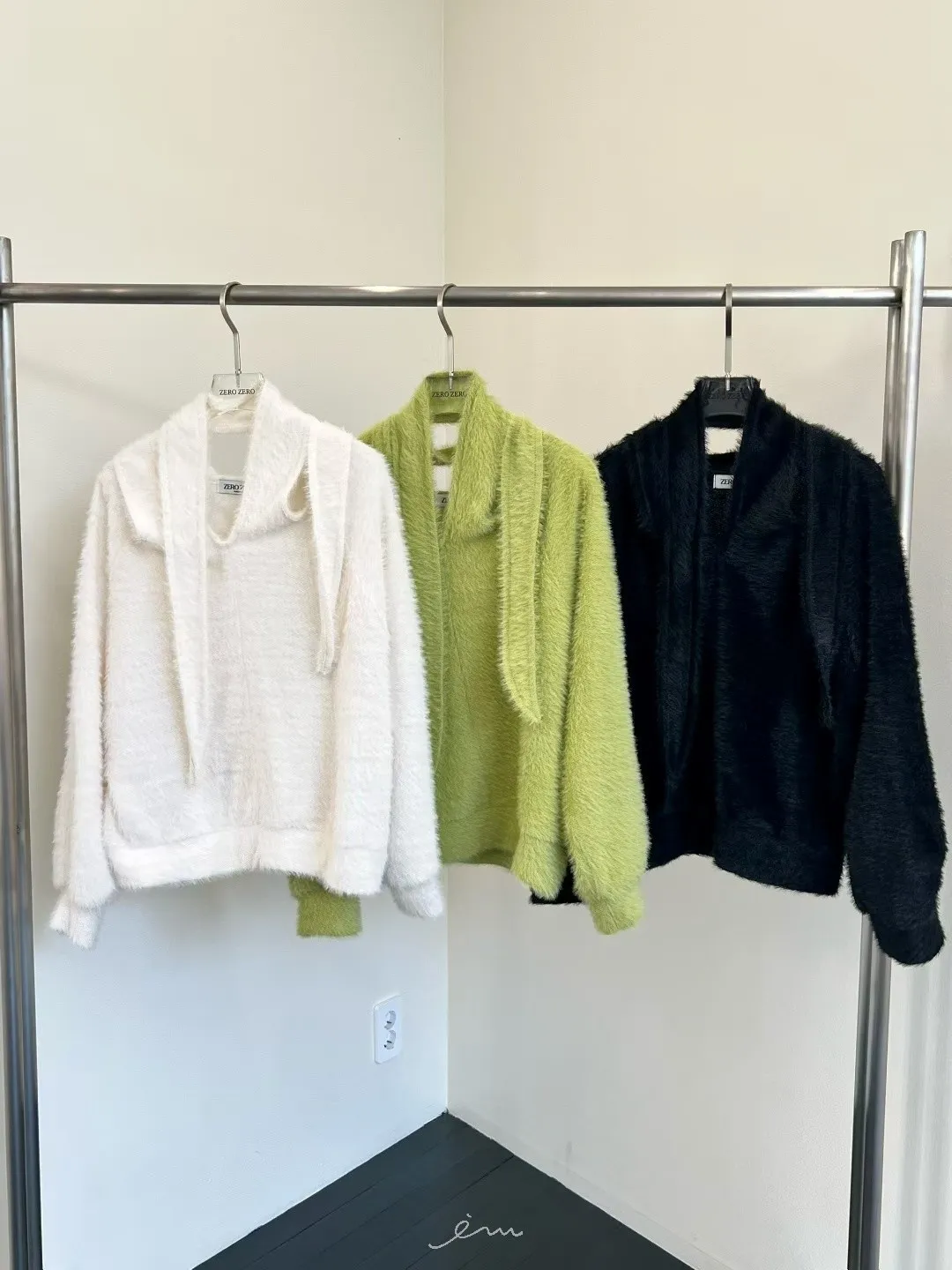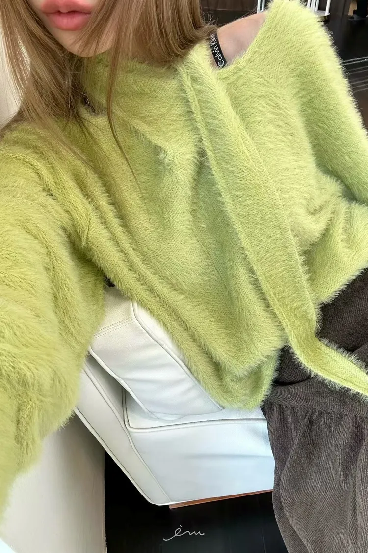 ZERO單邊挖肩圍巾安哥拉毛毛衣