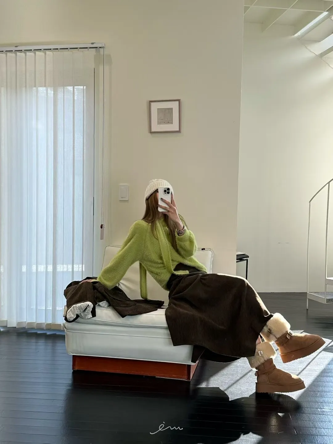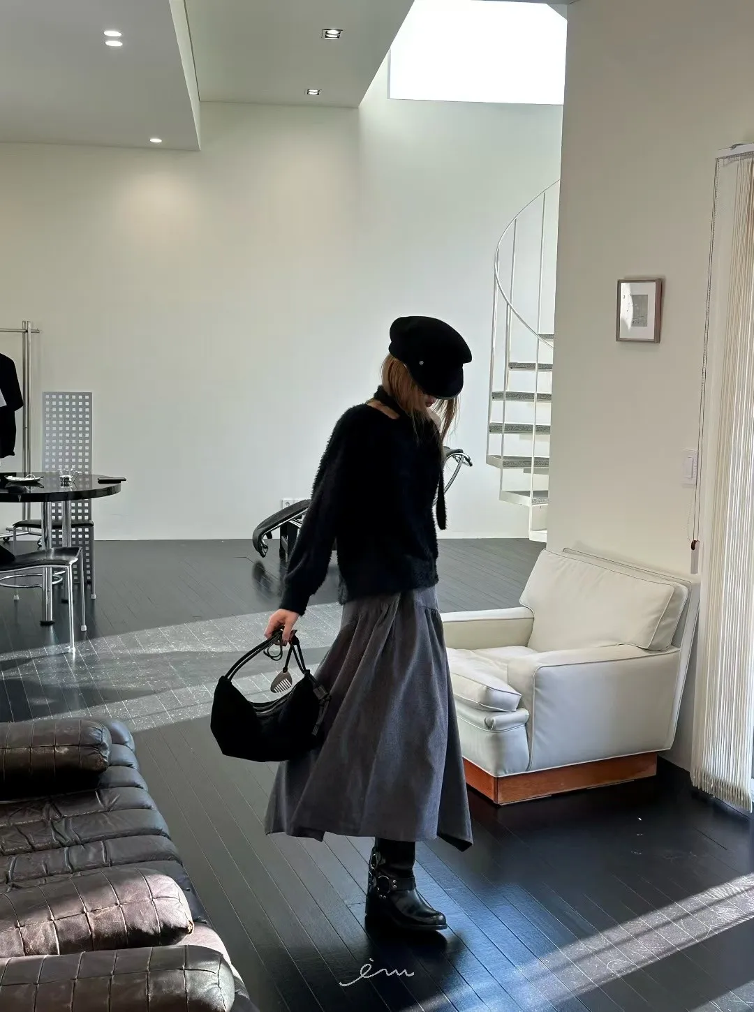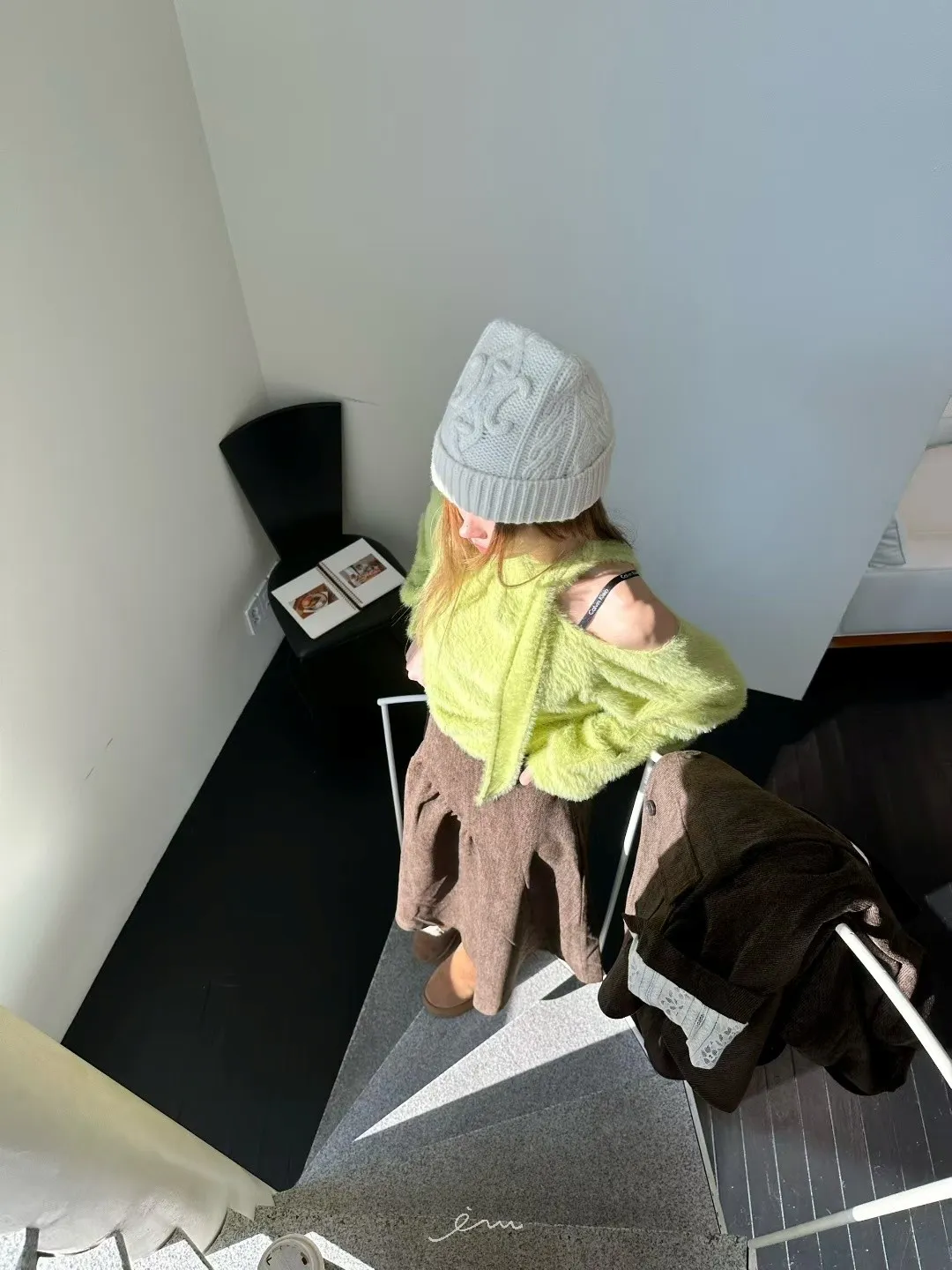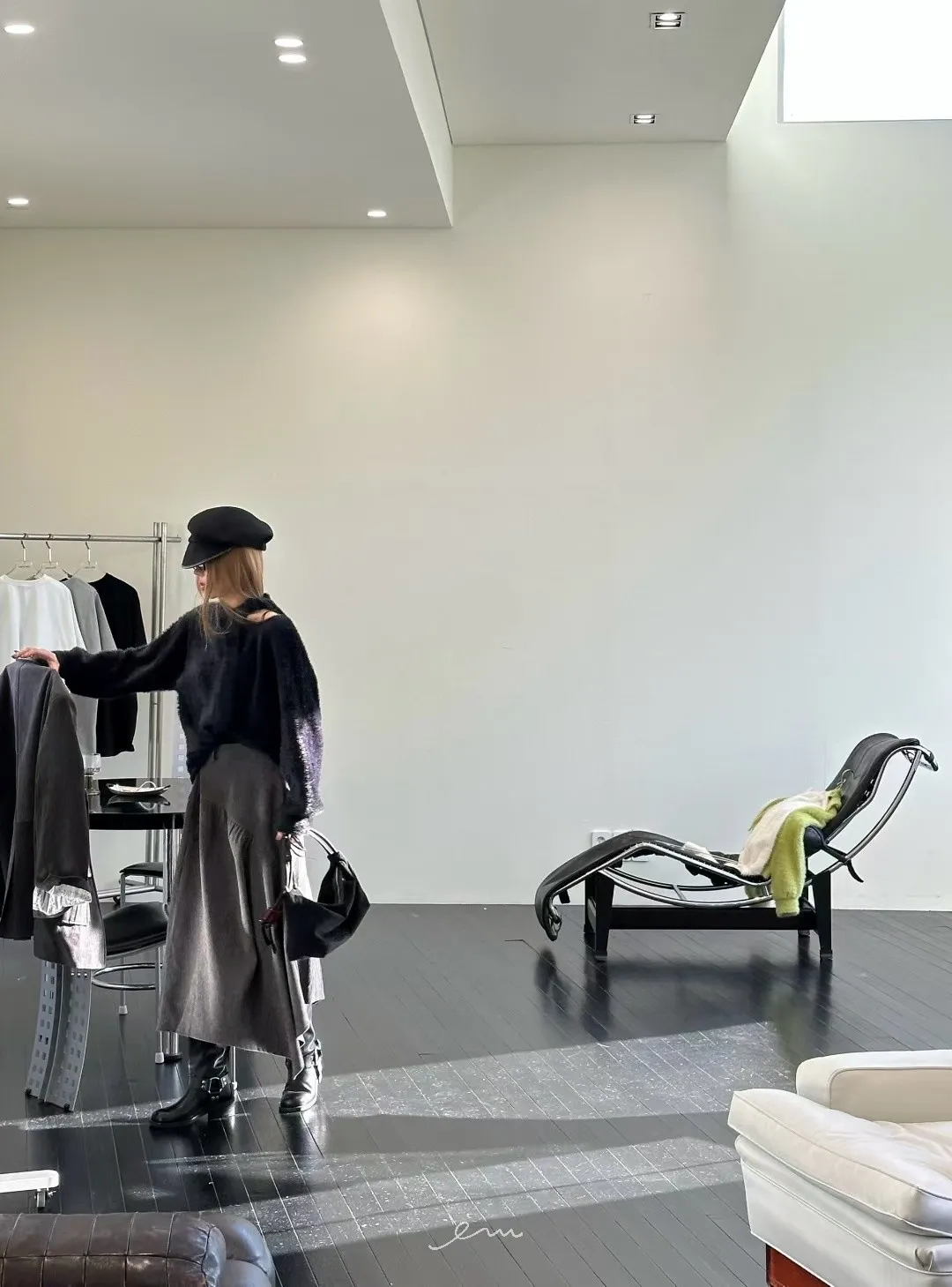 ZERO單邊挖肩圍巾安哥拉毛毛衣