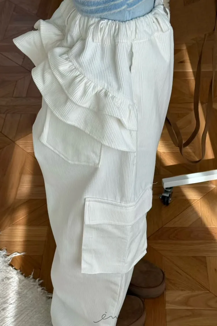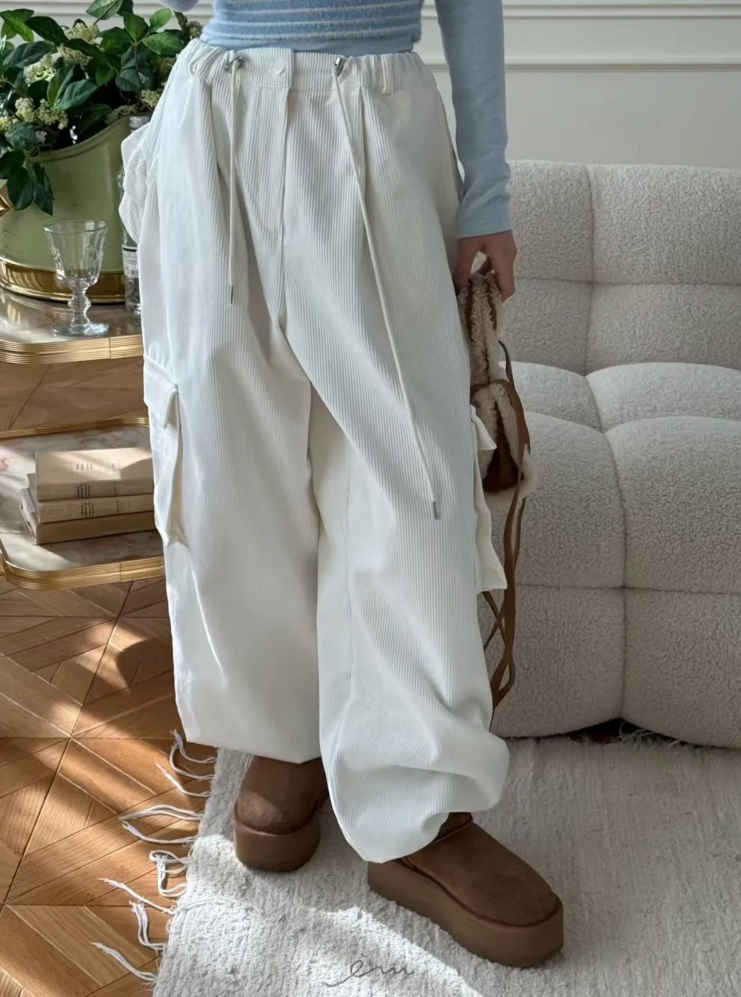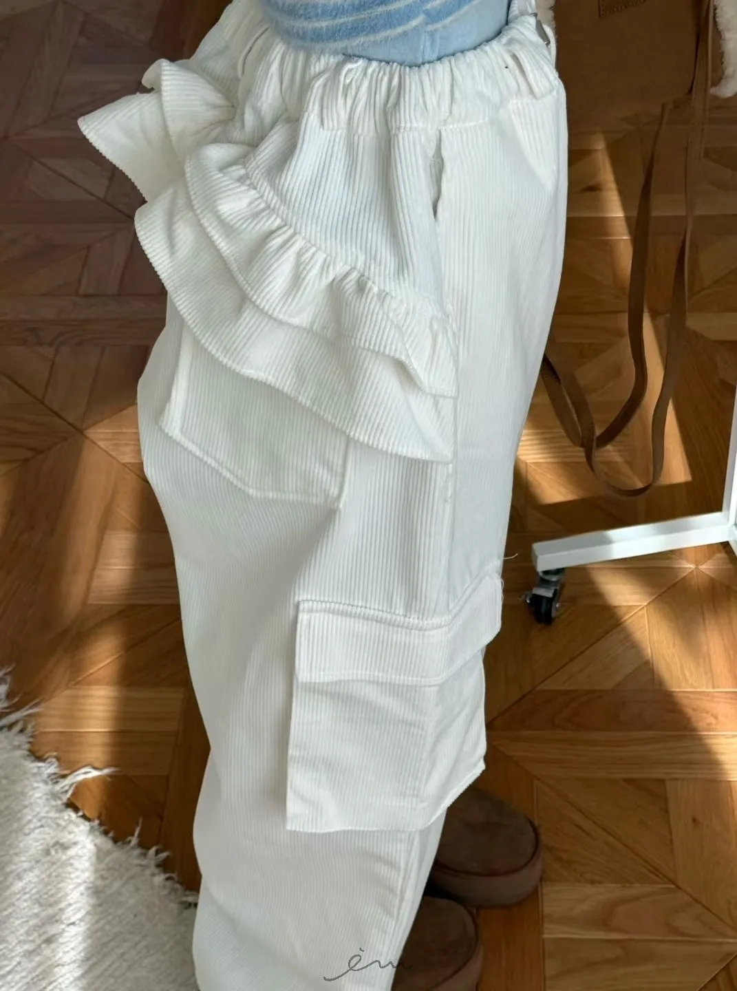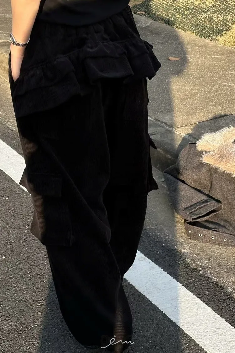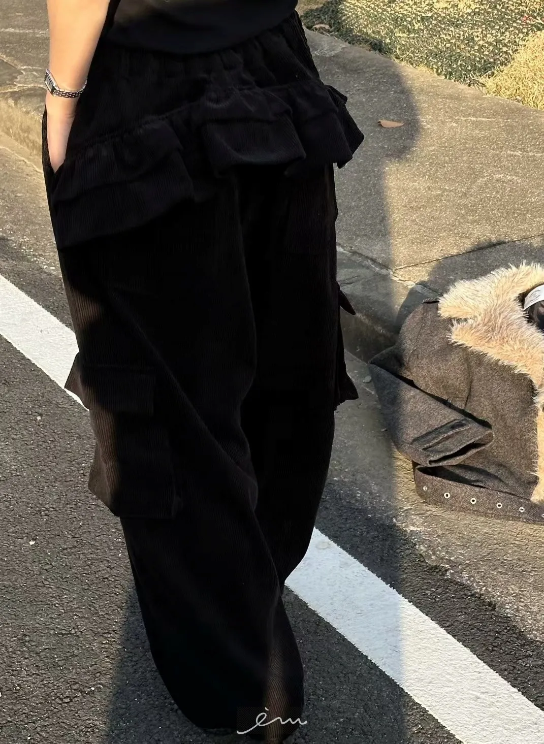 ZERO後荷葉懶人抽燈芯絨工裝褲