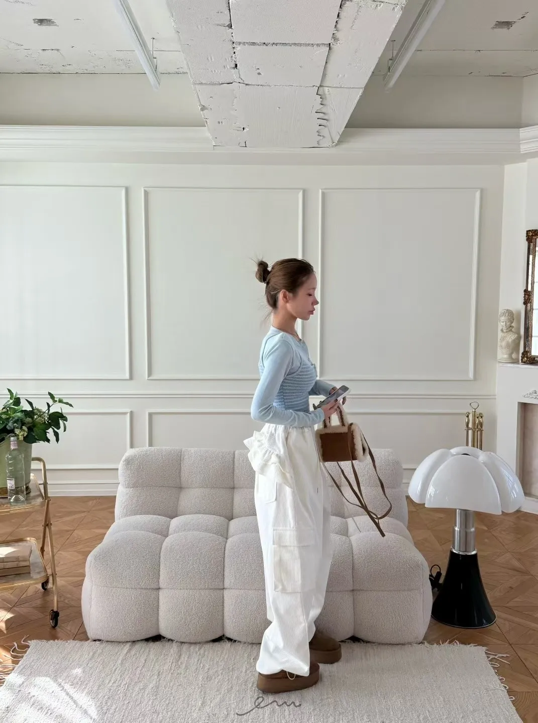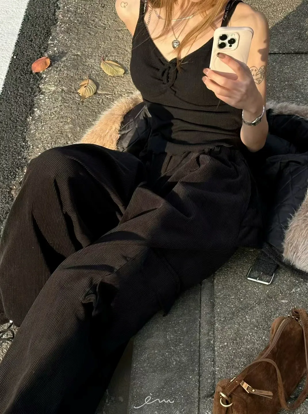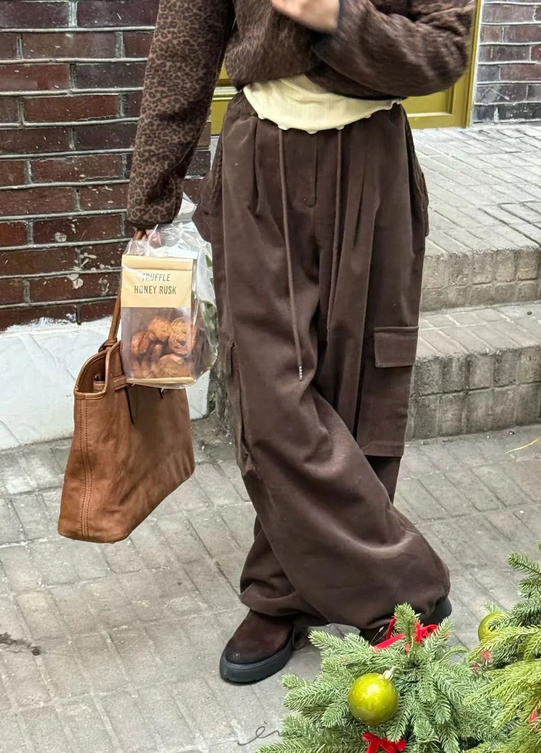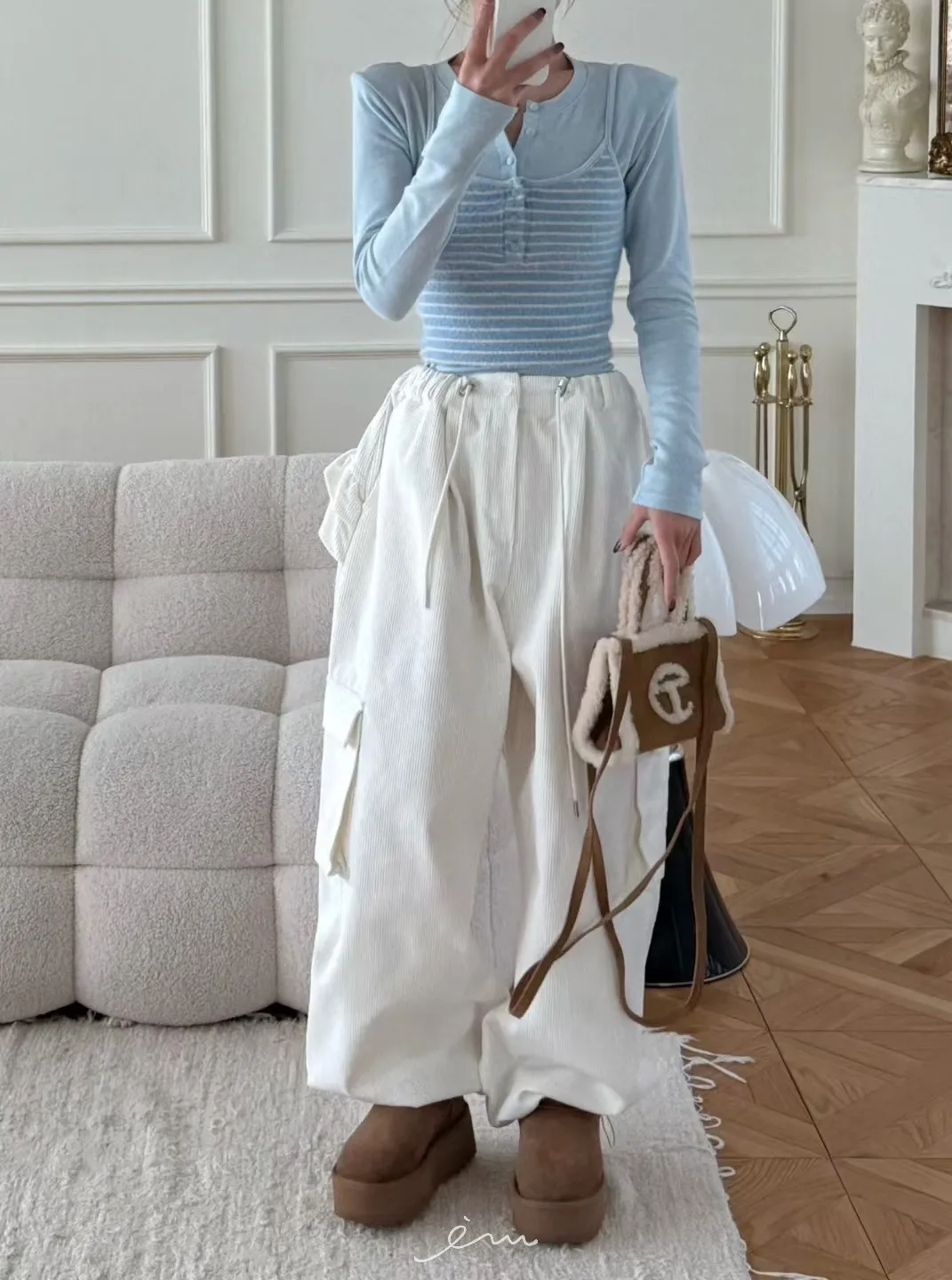 ZERO後荷葉懶人抽燈芯絨工裝褲