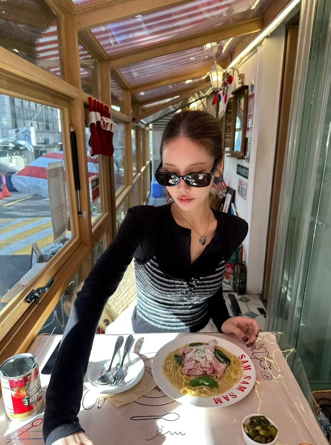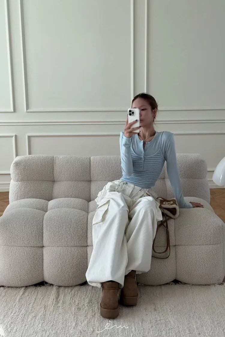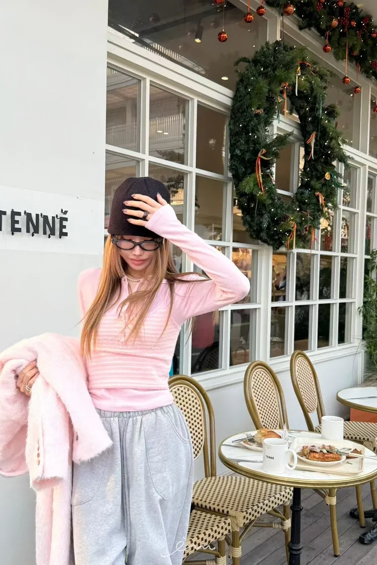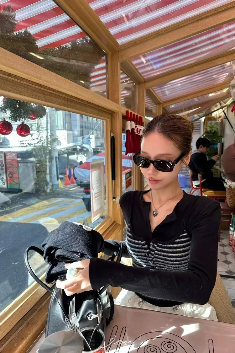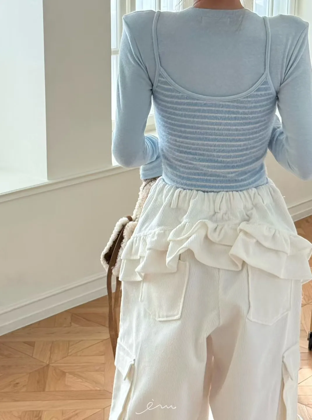 ZERO包釦條紋假兩件衣