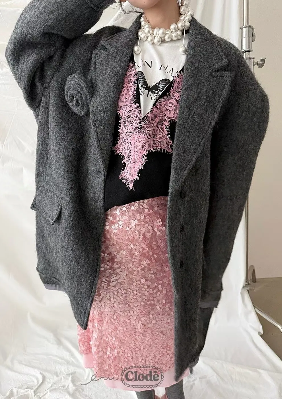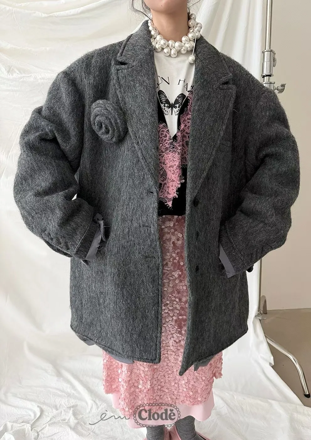 CL羊毛鬚鬚玫瑰外套