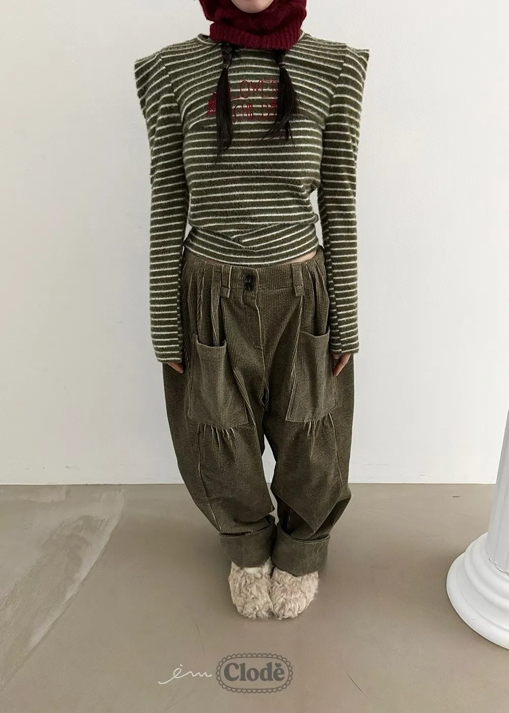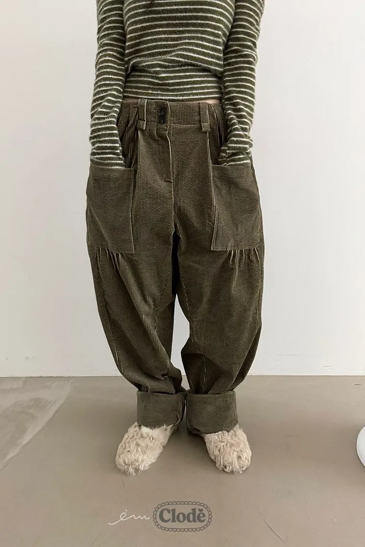 CL燈芯絨立體口袋造型長褲