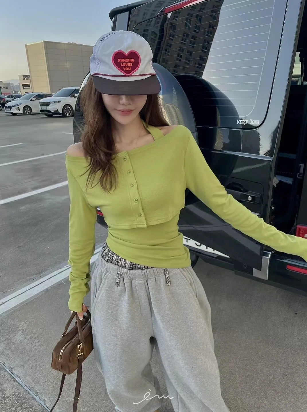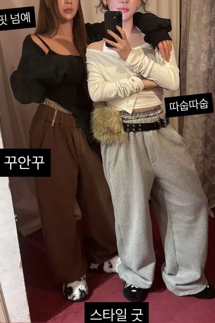 MI格紋雙褲頭拼接寬褲
