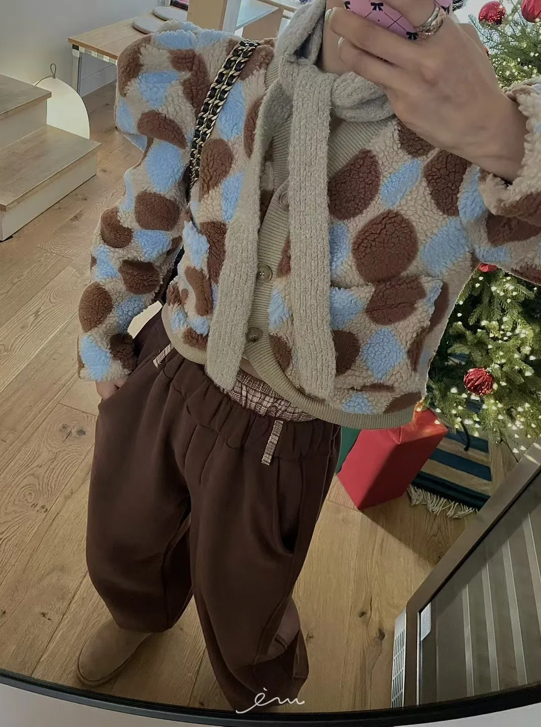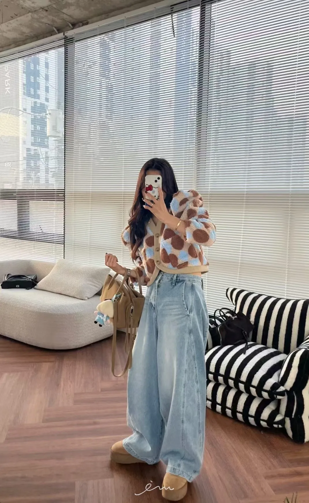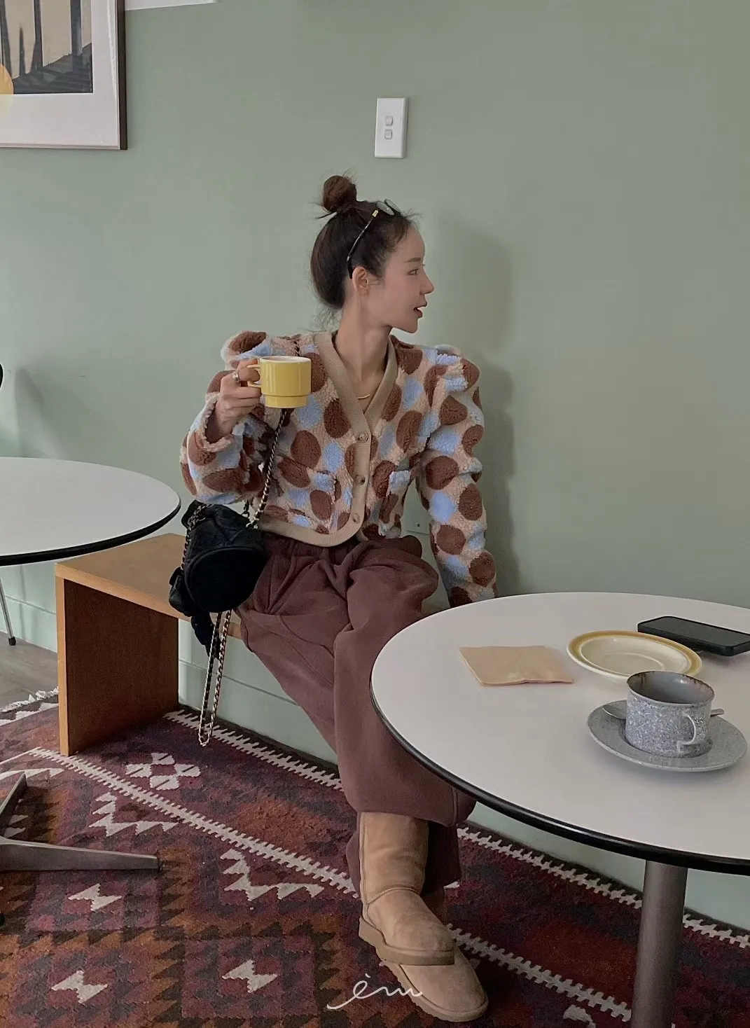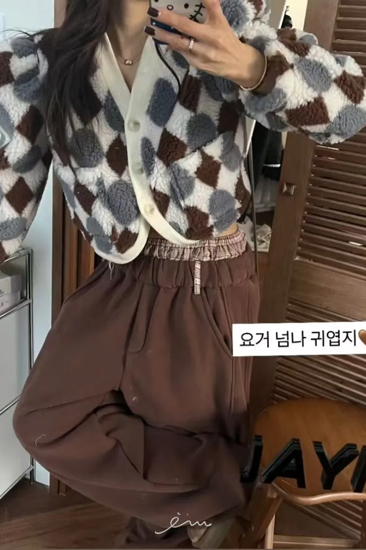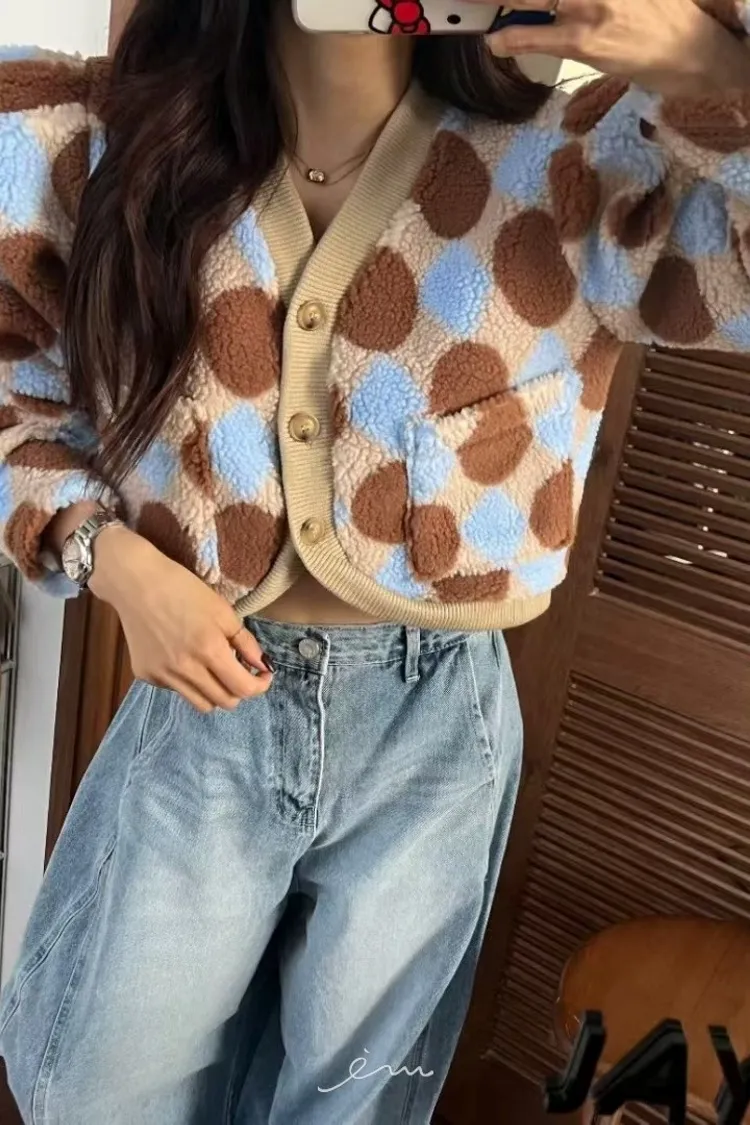 MI拼色格菱紋鈕扣外套